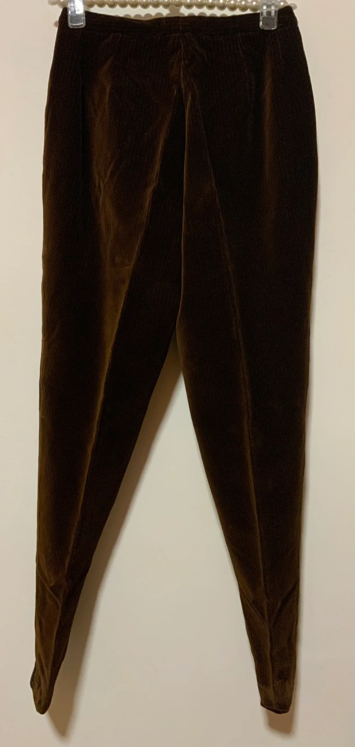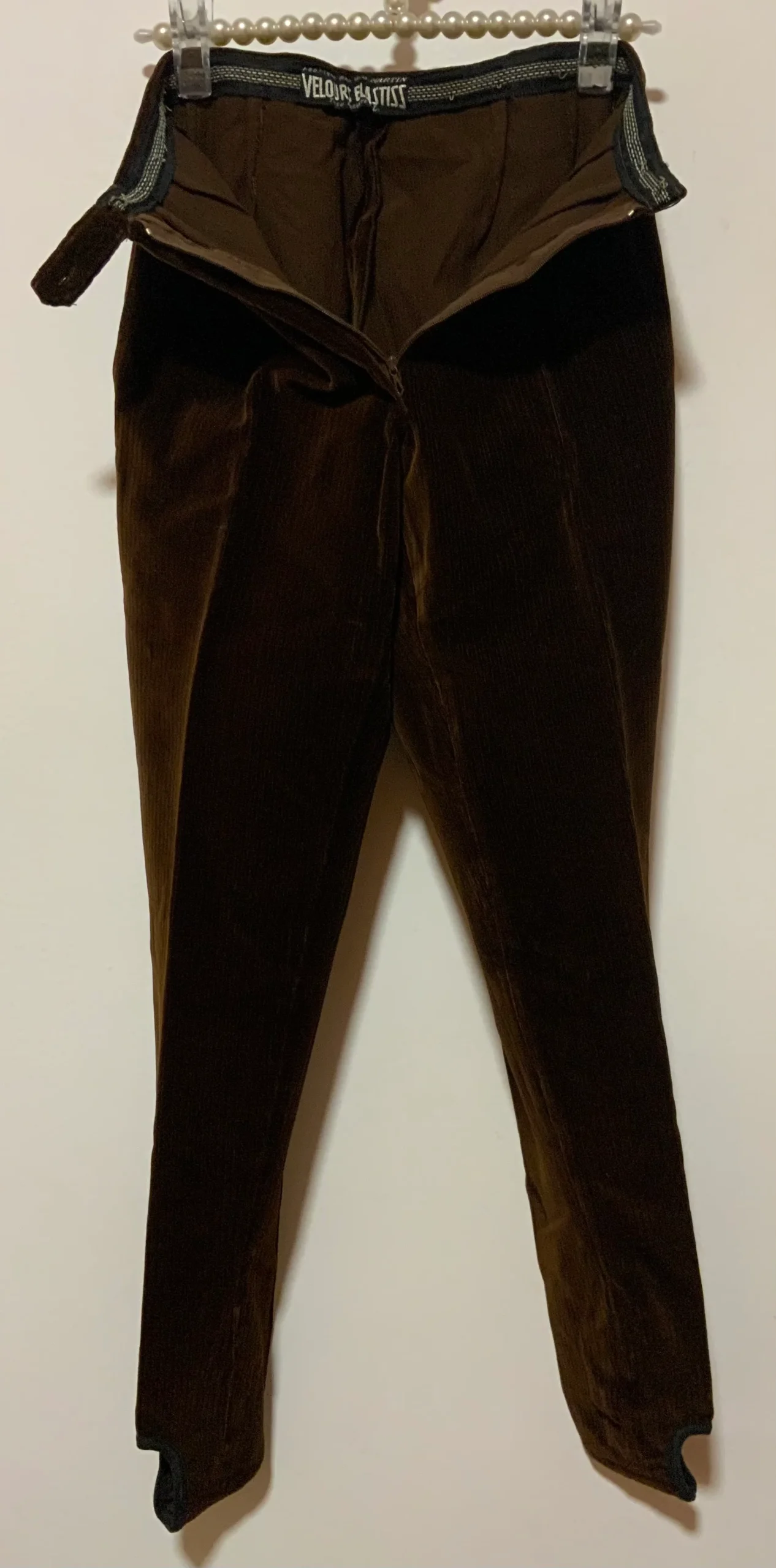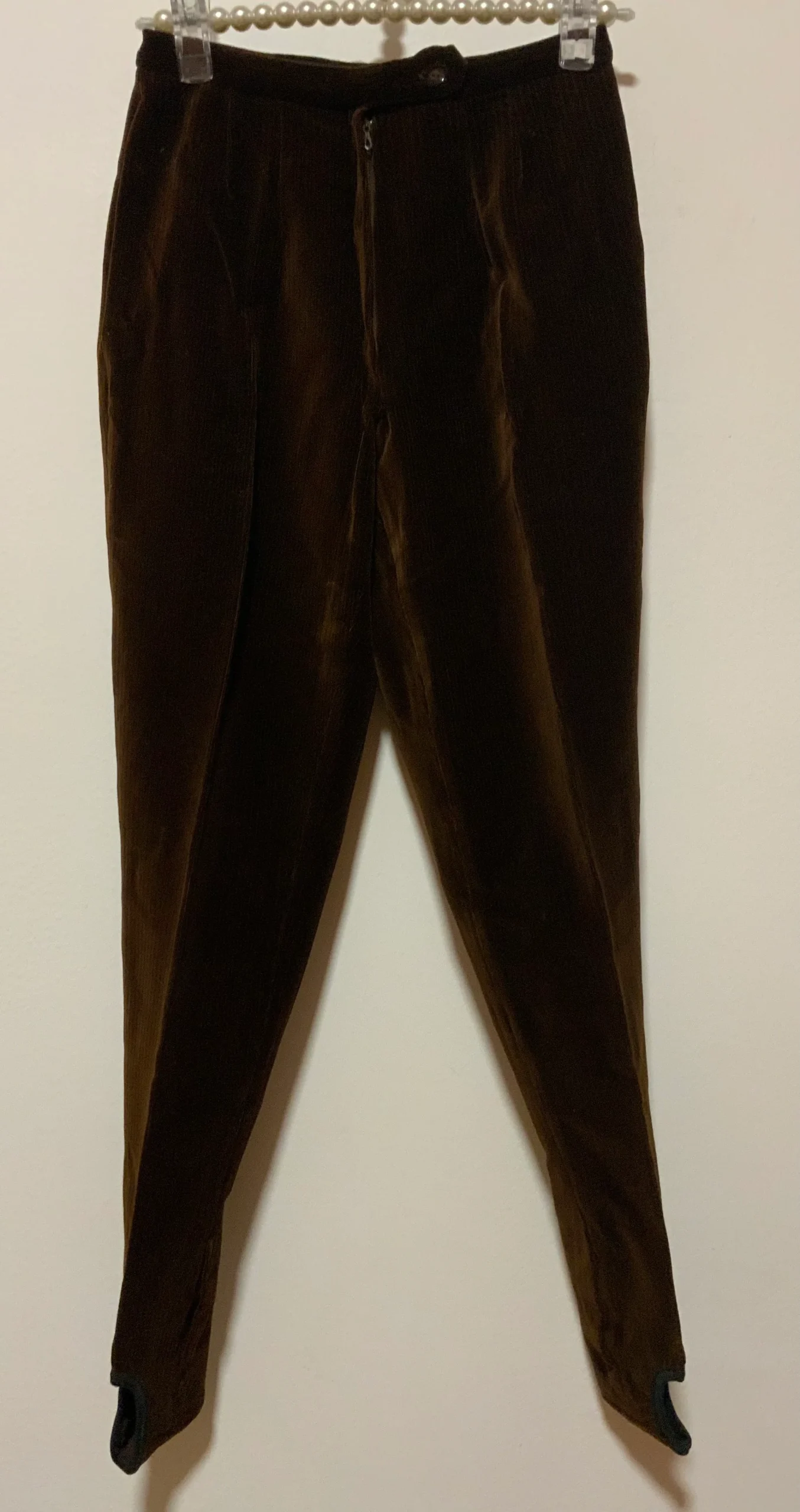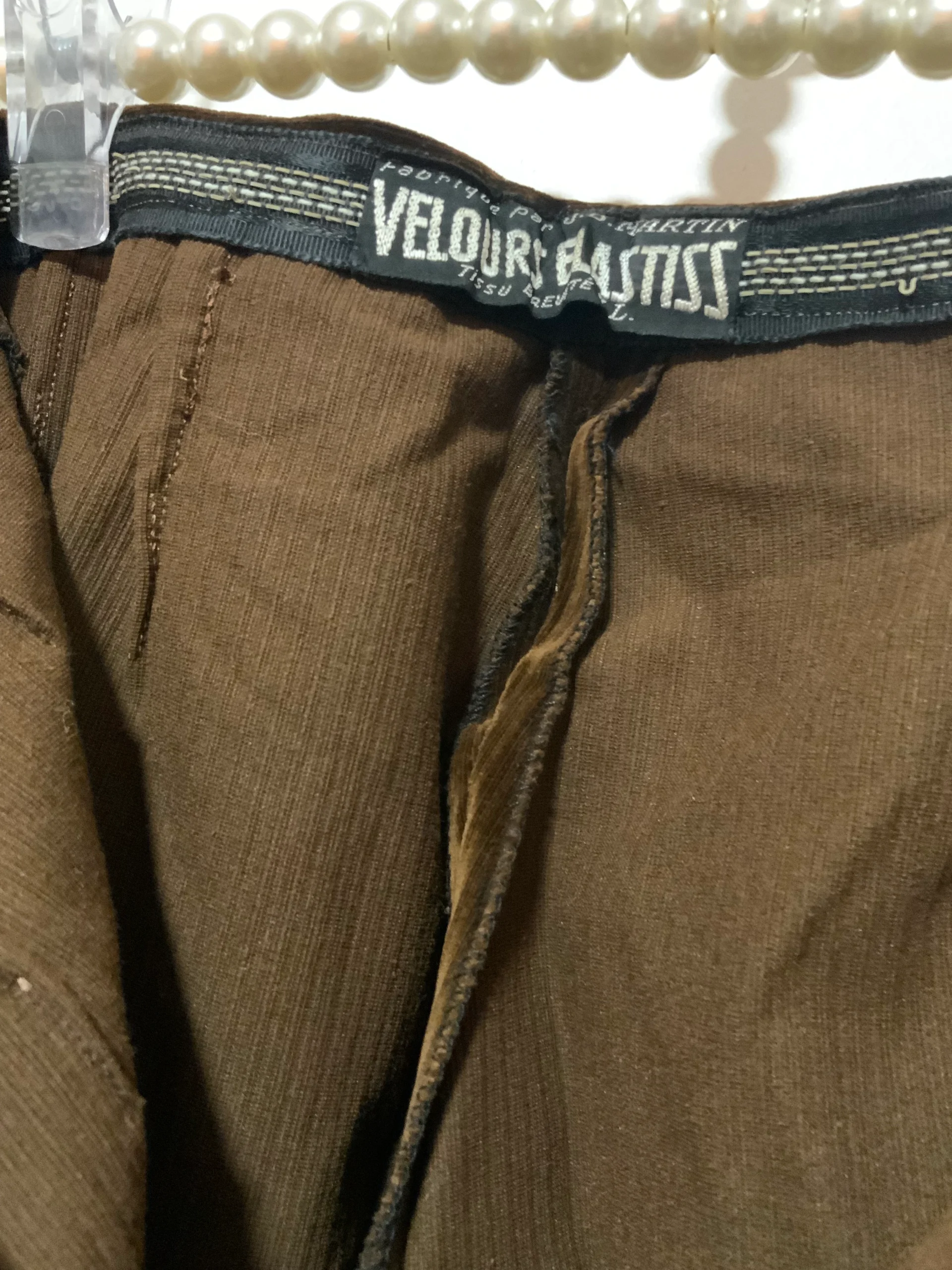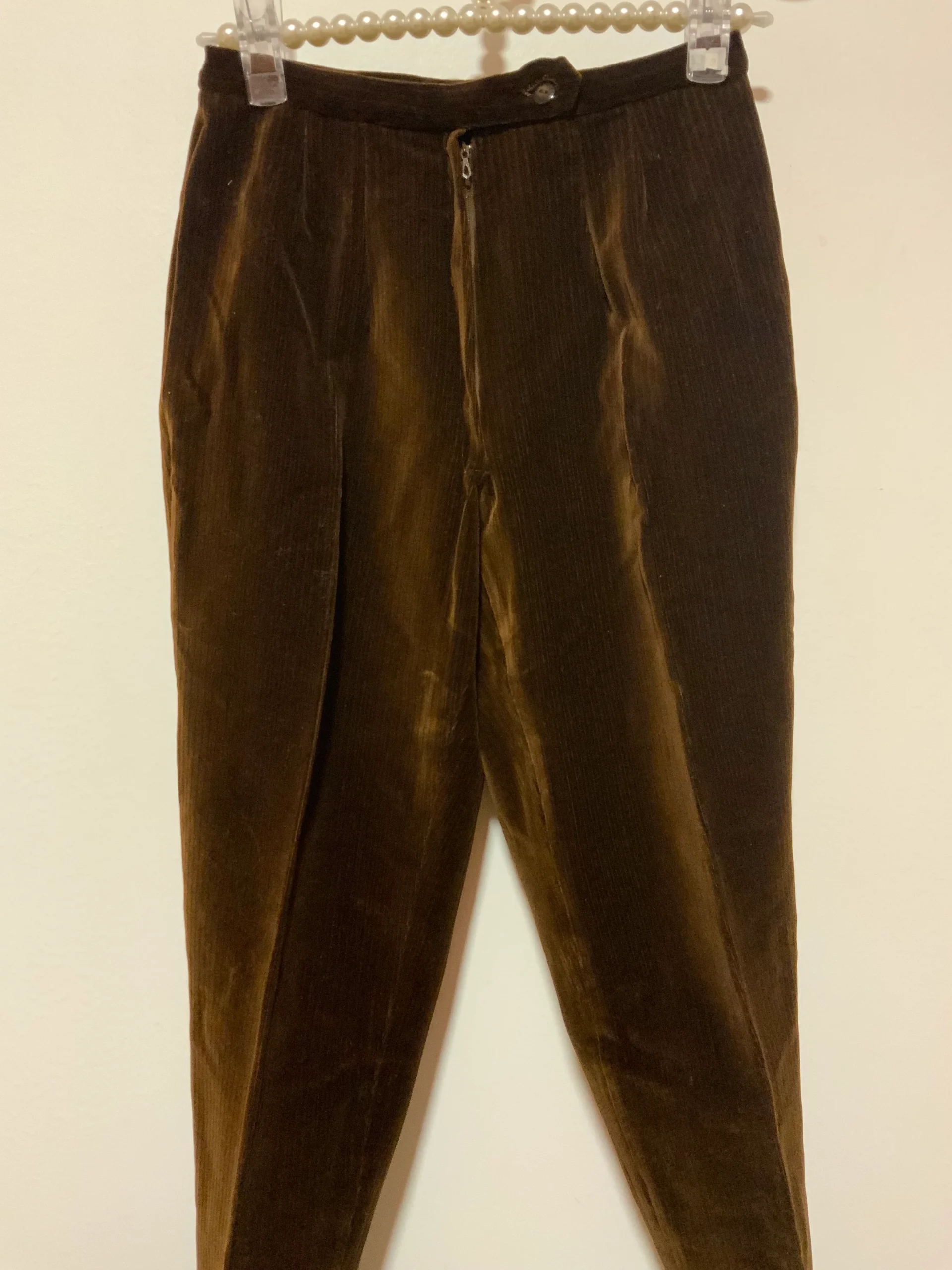 Authentique Fuseau 1970 Velours côtelé Neuf Deadstock jamais porté Marron foncé – Fuseau Talon la 1ere forme de fuseau, plis devant, Taille haute, pas de poche.