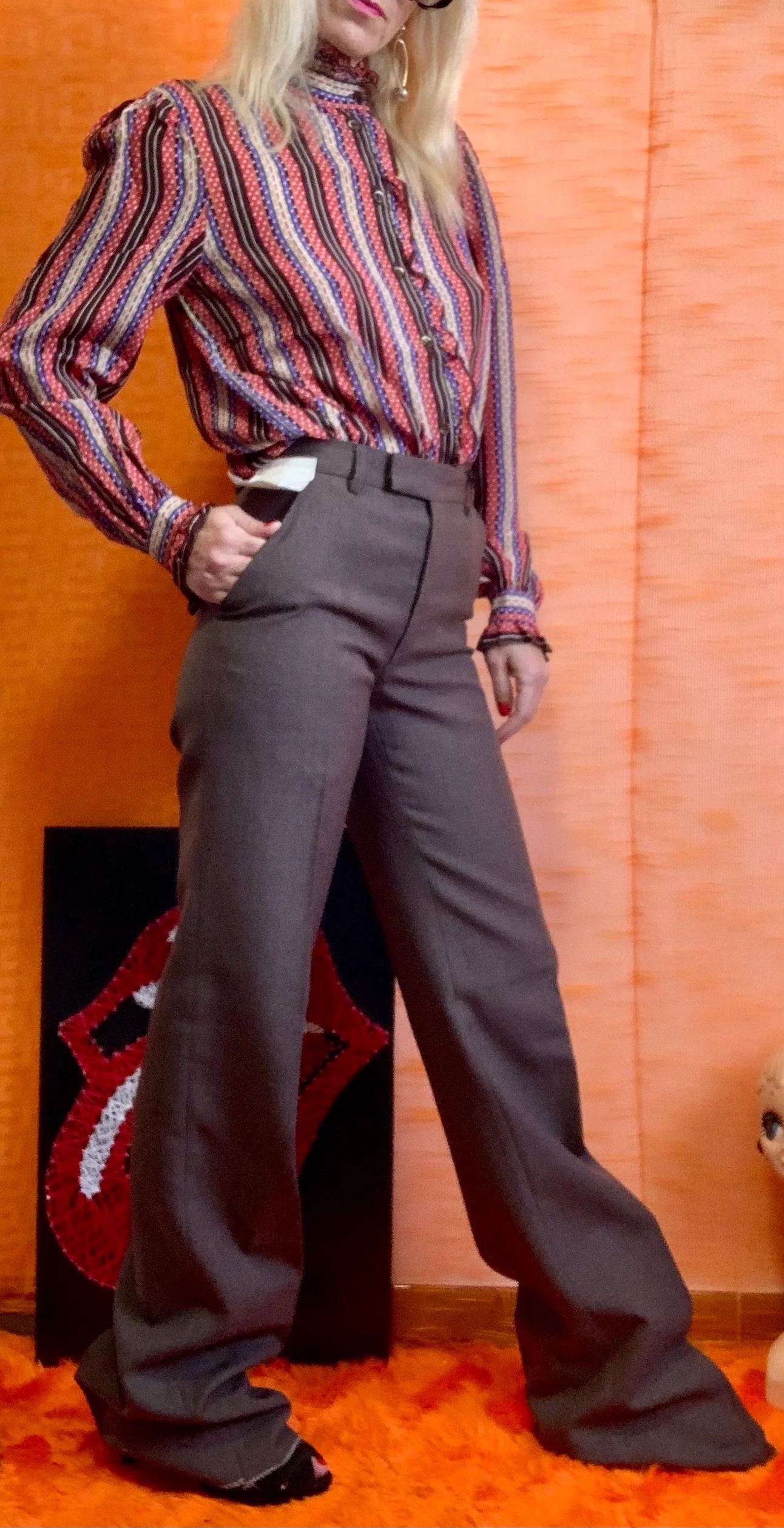 Superbe Pantalon Pattes d’éléphant Authentique 1970 Vintage Marron État Neuf issu d’un stock de magasin seventies.