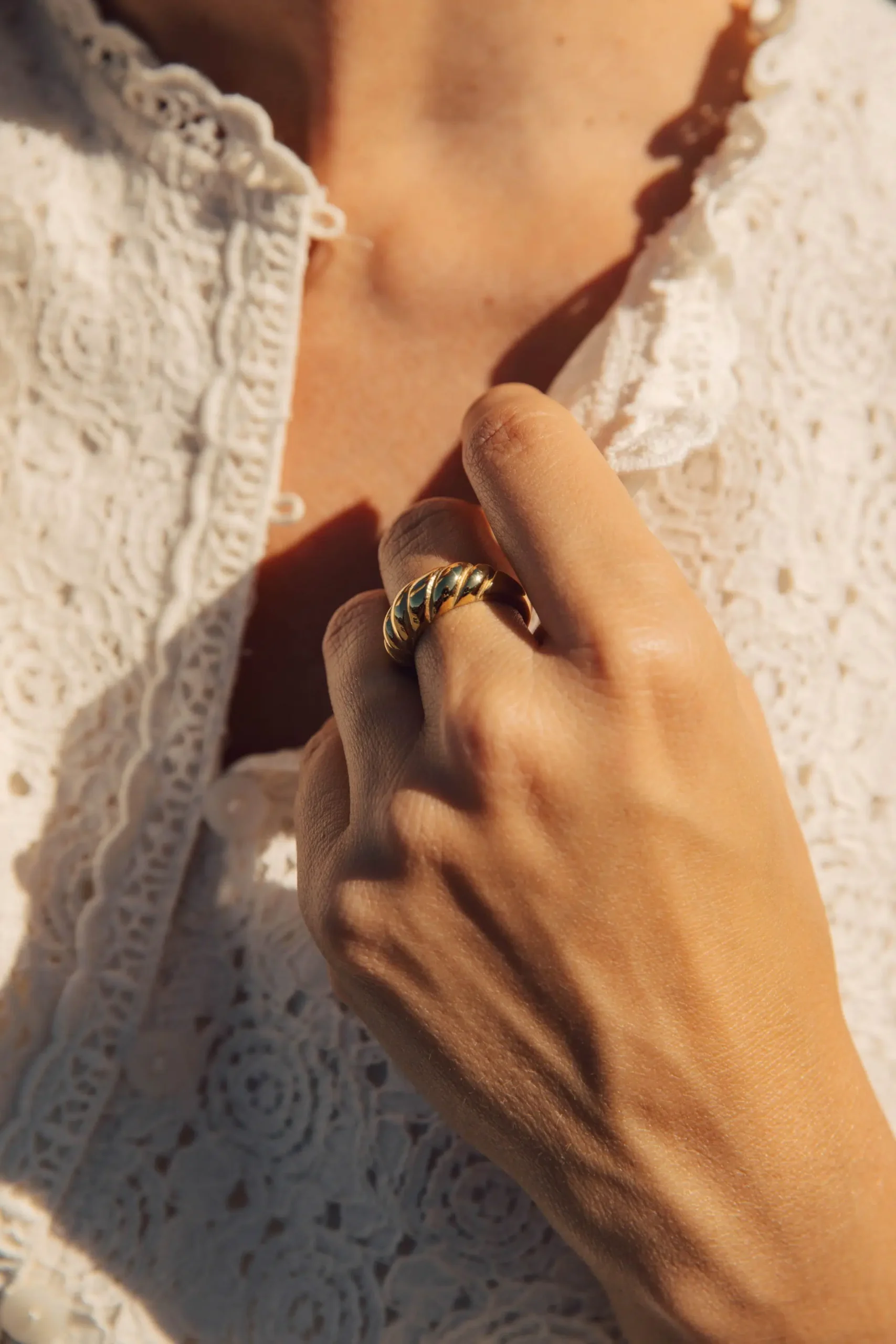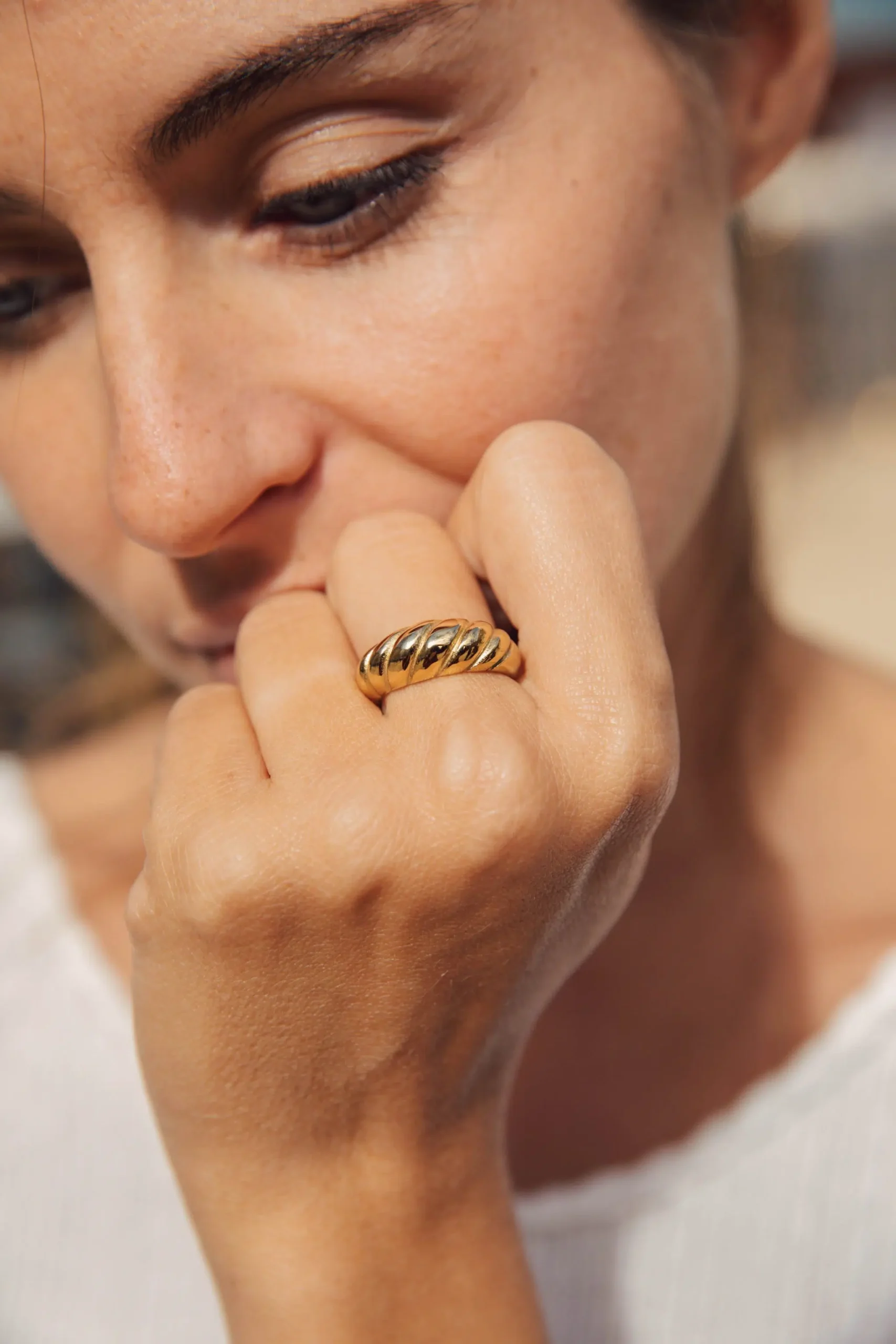 – Bague torsadée – Acier inoxydable – Taille unique – Couleur : dorée