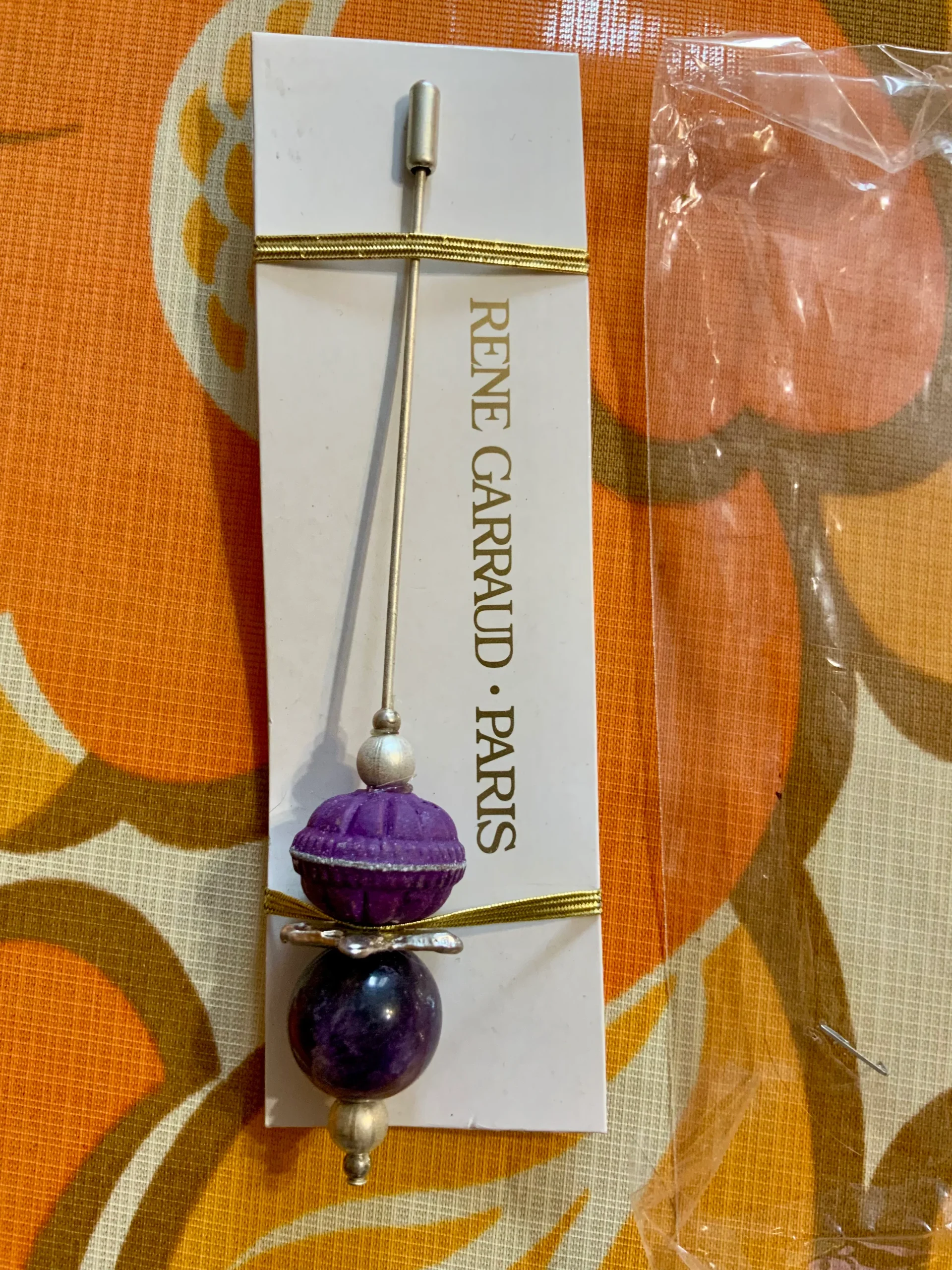 Bijoux Epingle France Paris René Garraud Vintage perle de verre Neuf dans son emballage.