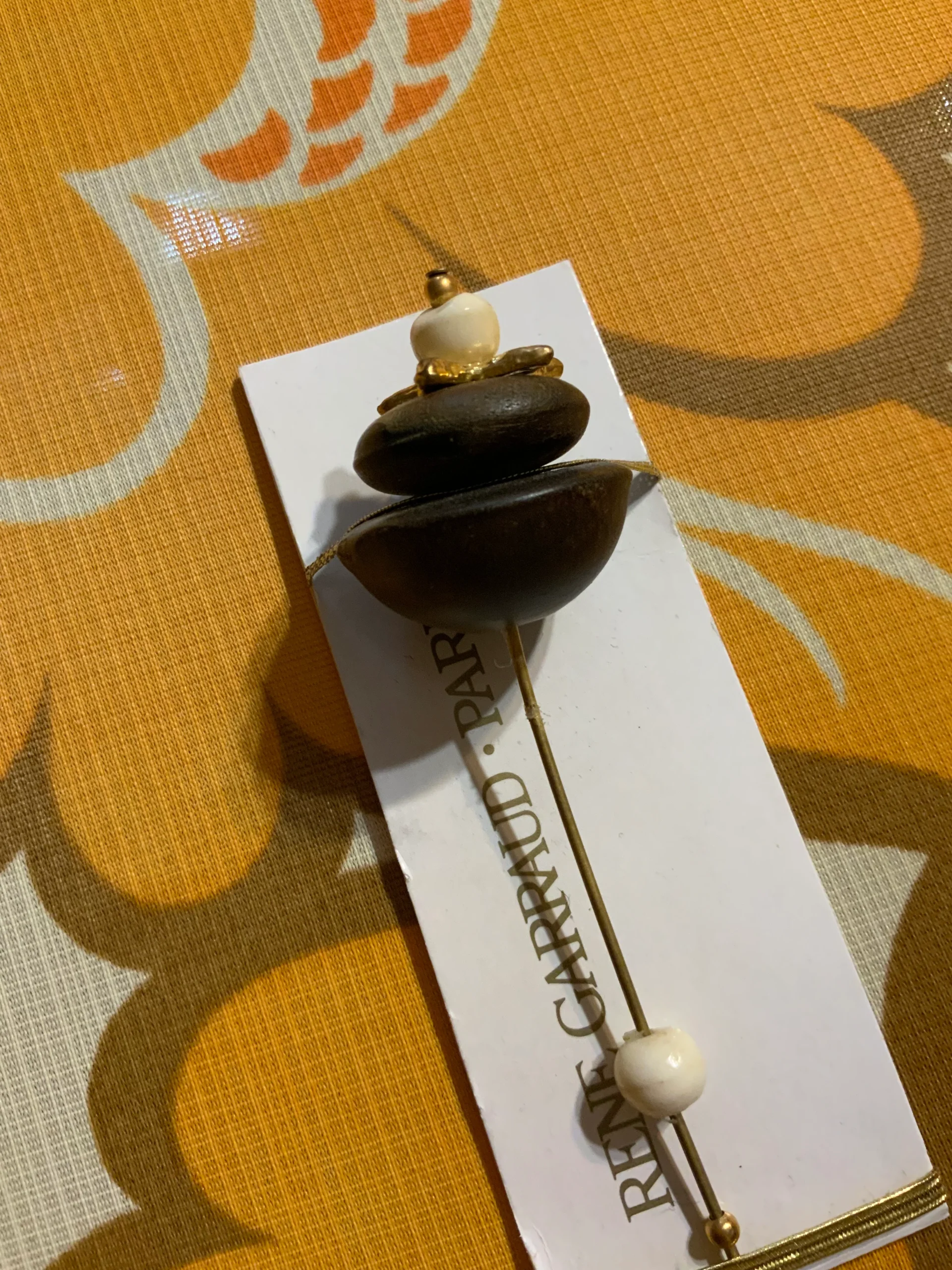 Bijoux Epingle France Paris René Garraud Vintage Métal et bois Neuf Sur son emballage.