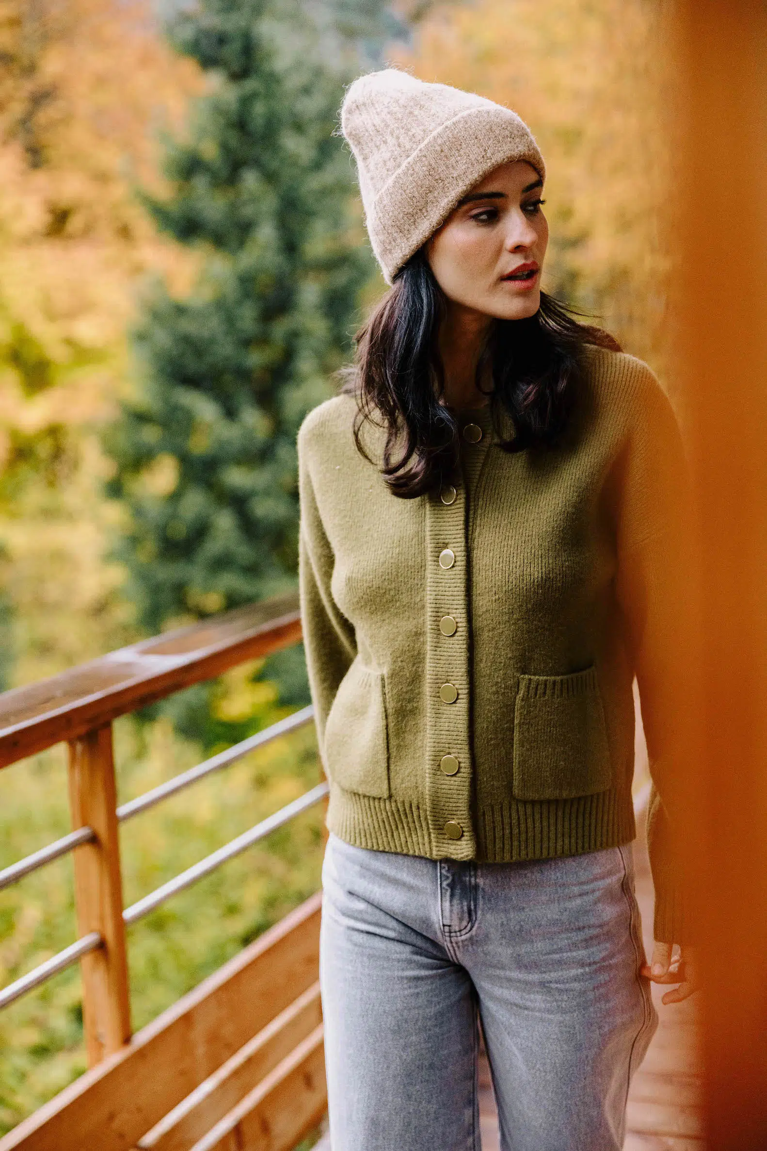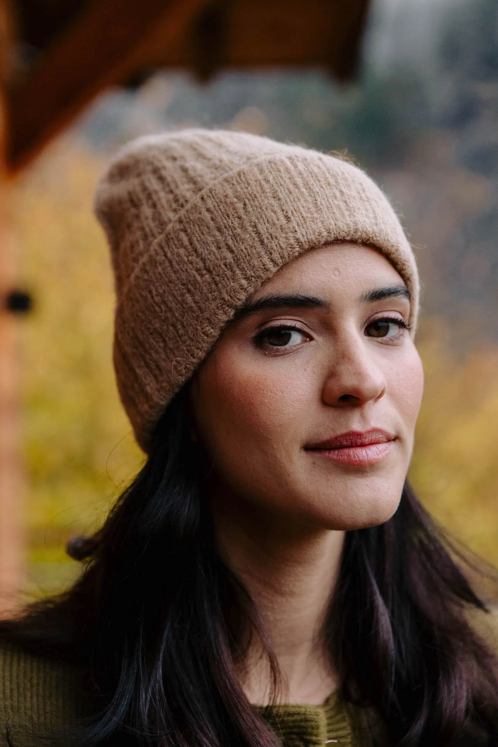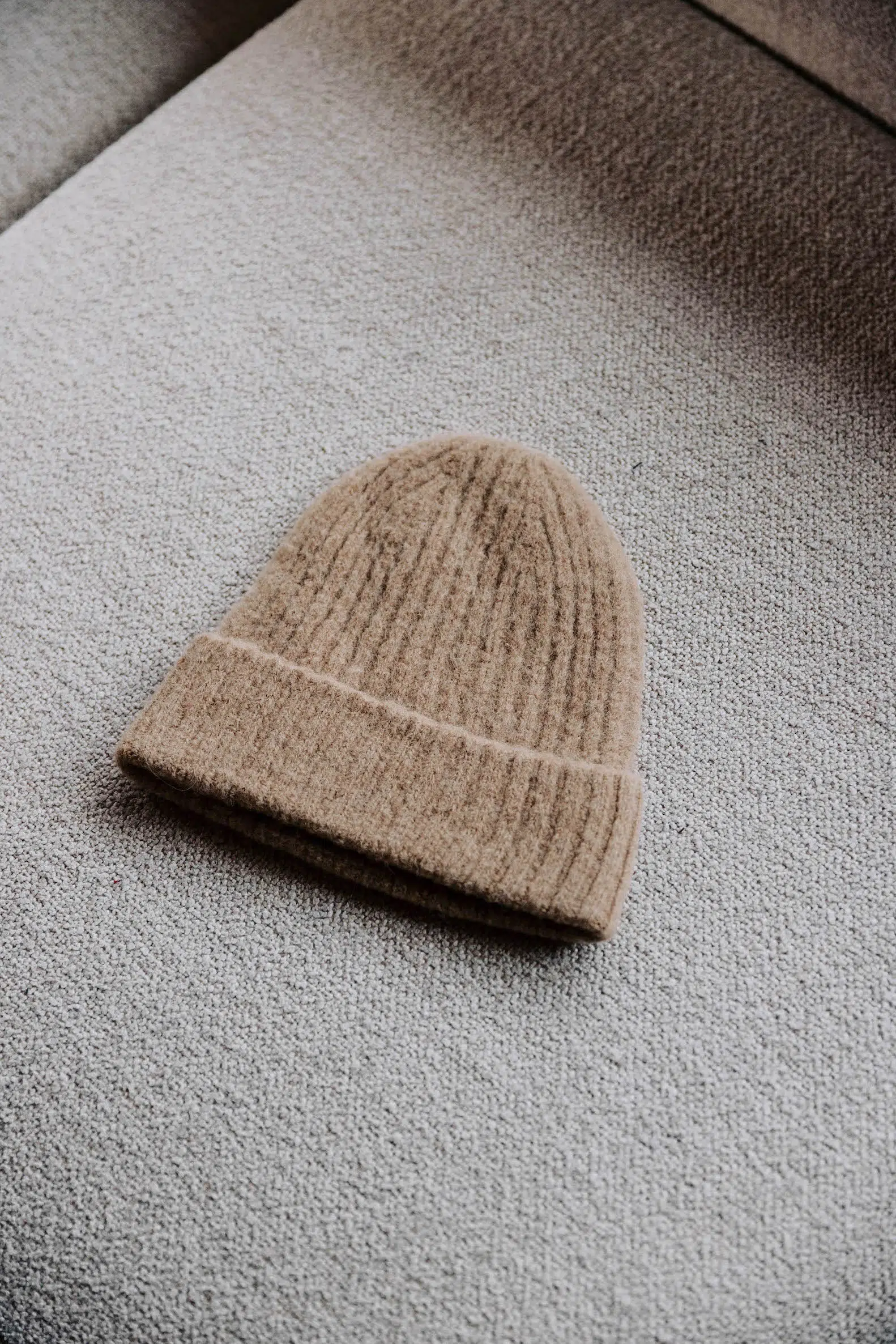 – Bonnet en maille douce – Fabriqué en Italie – Maille côtelée – Taille unique – Couleur : camel