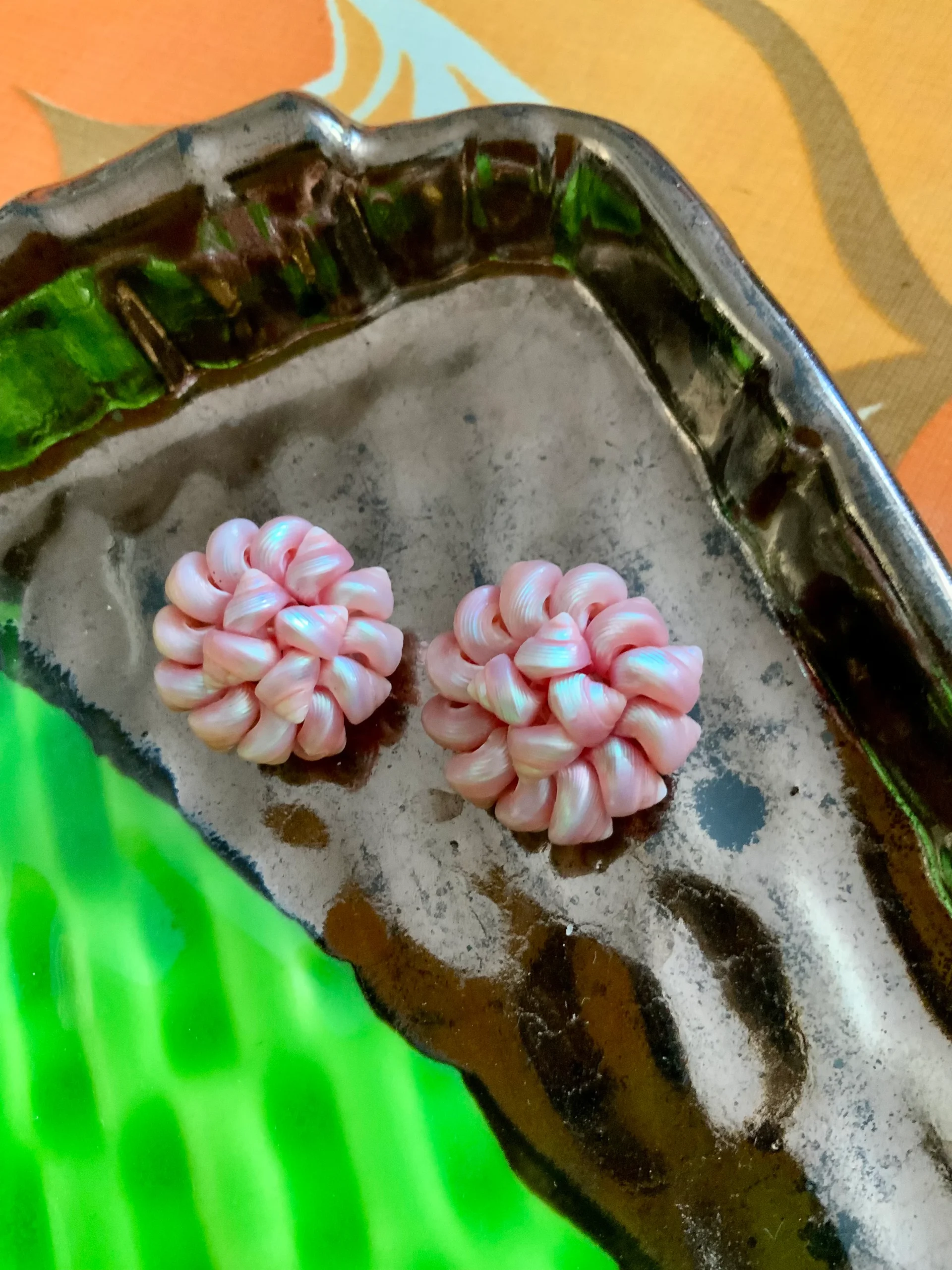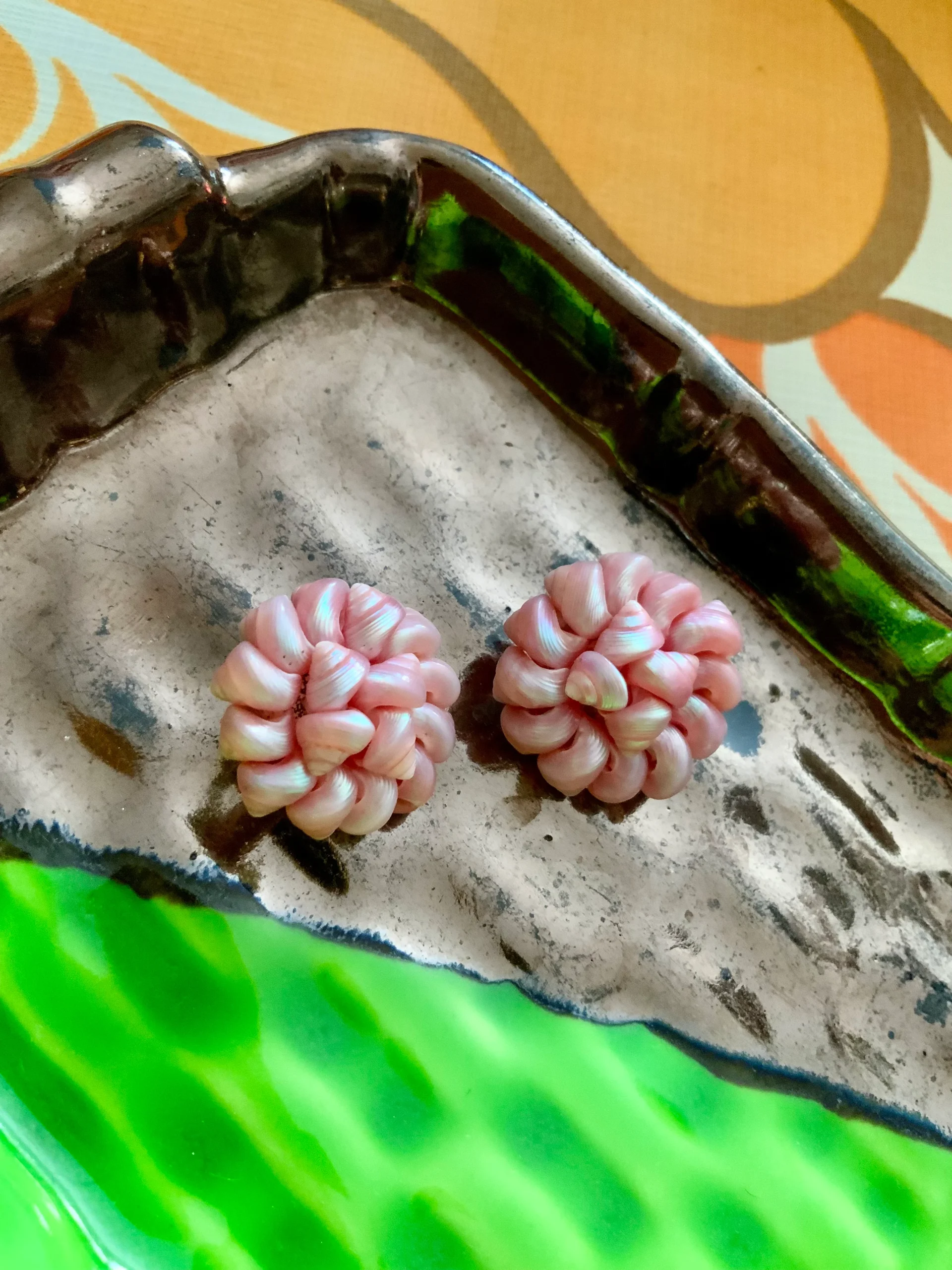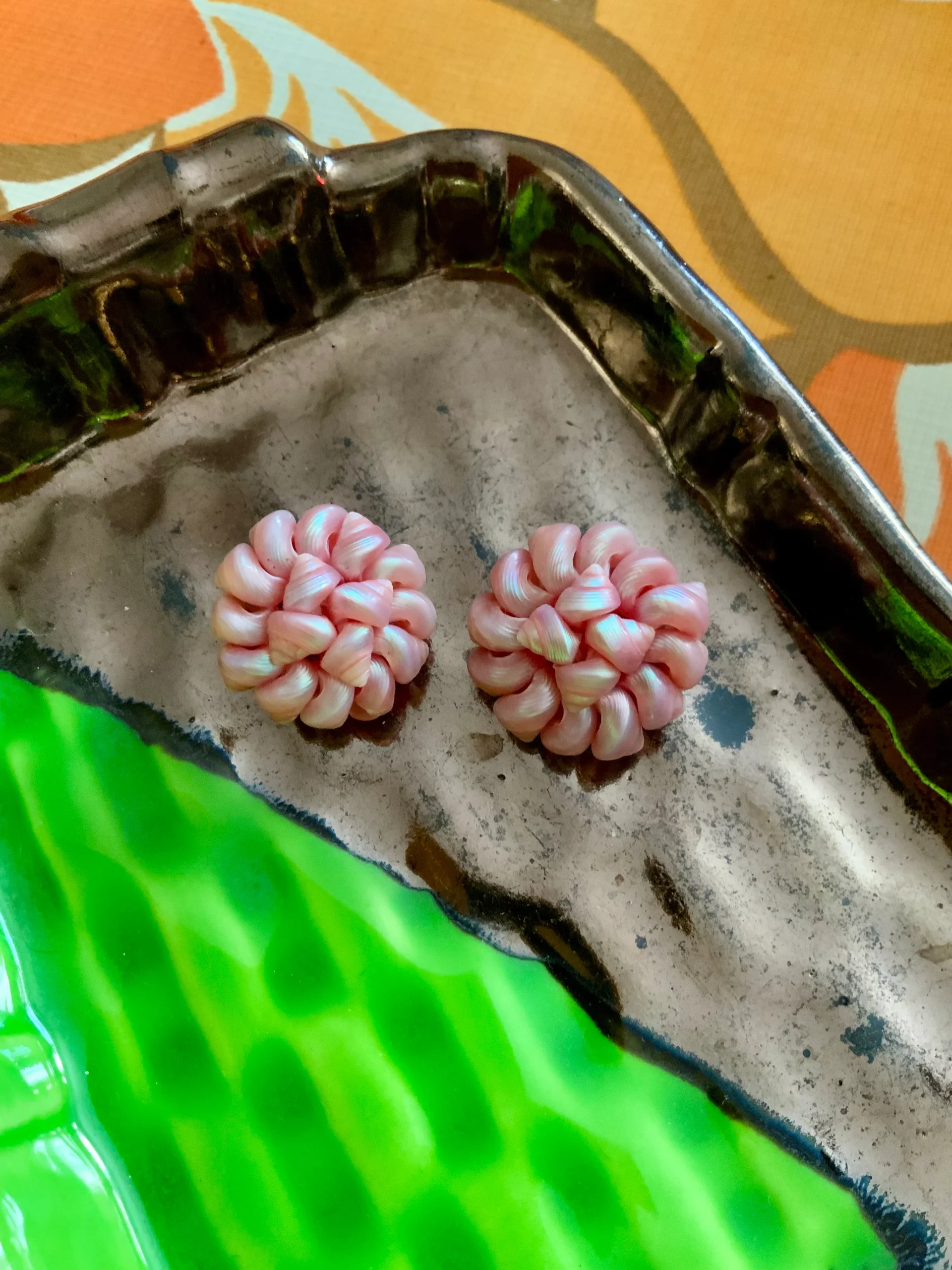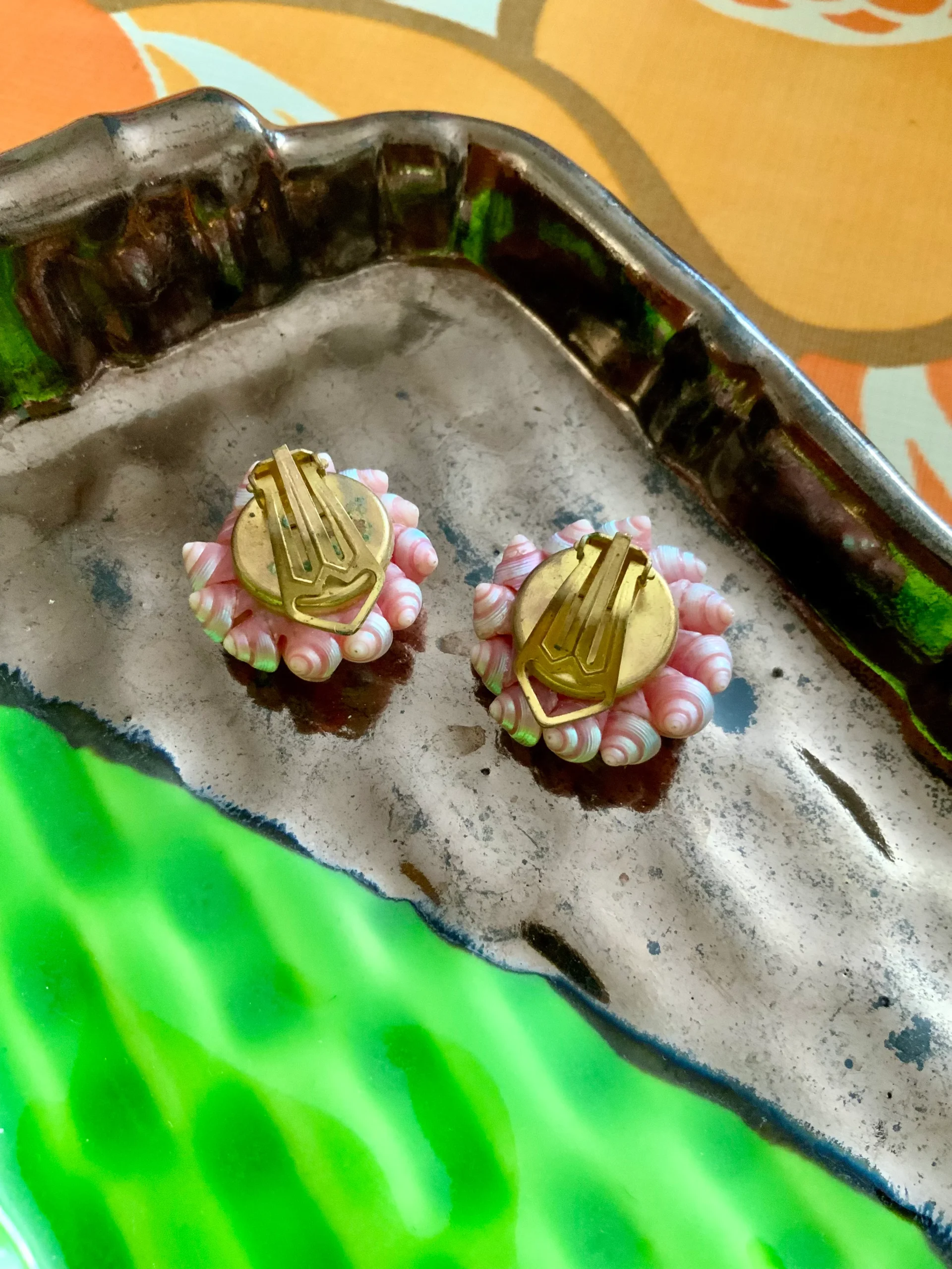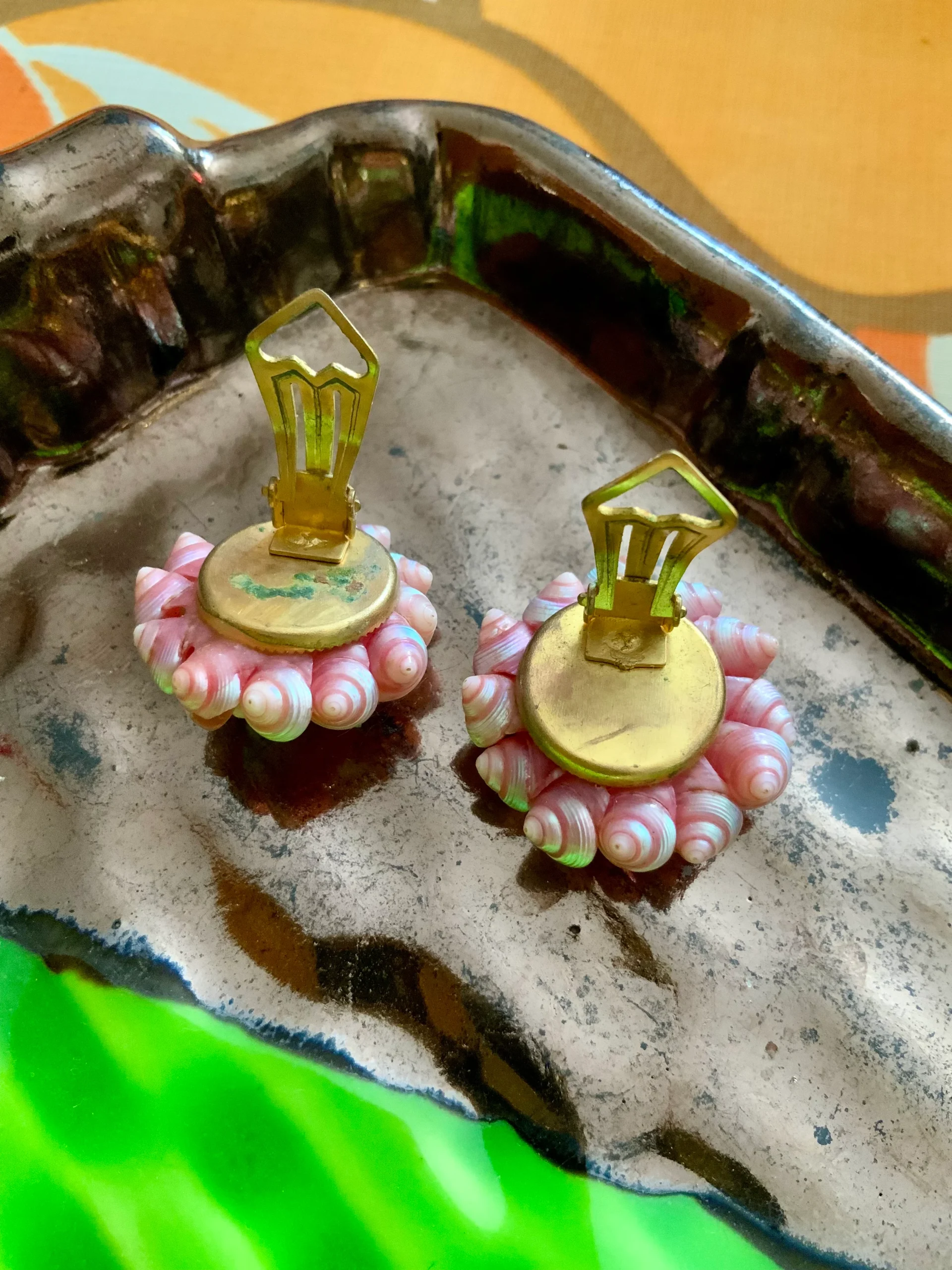 Superbes et rares Boucles d oreilles très anciennes faites main coquillages roses Vintage et métal doré,Modèle rare.