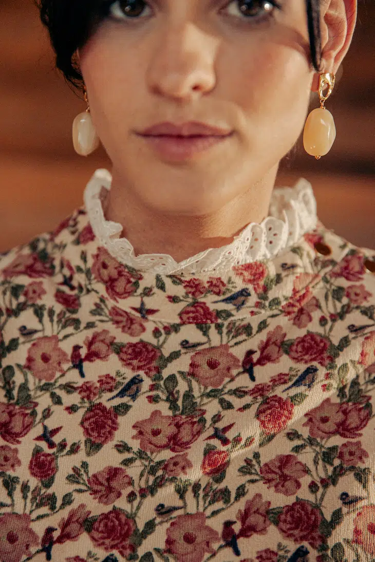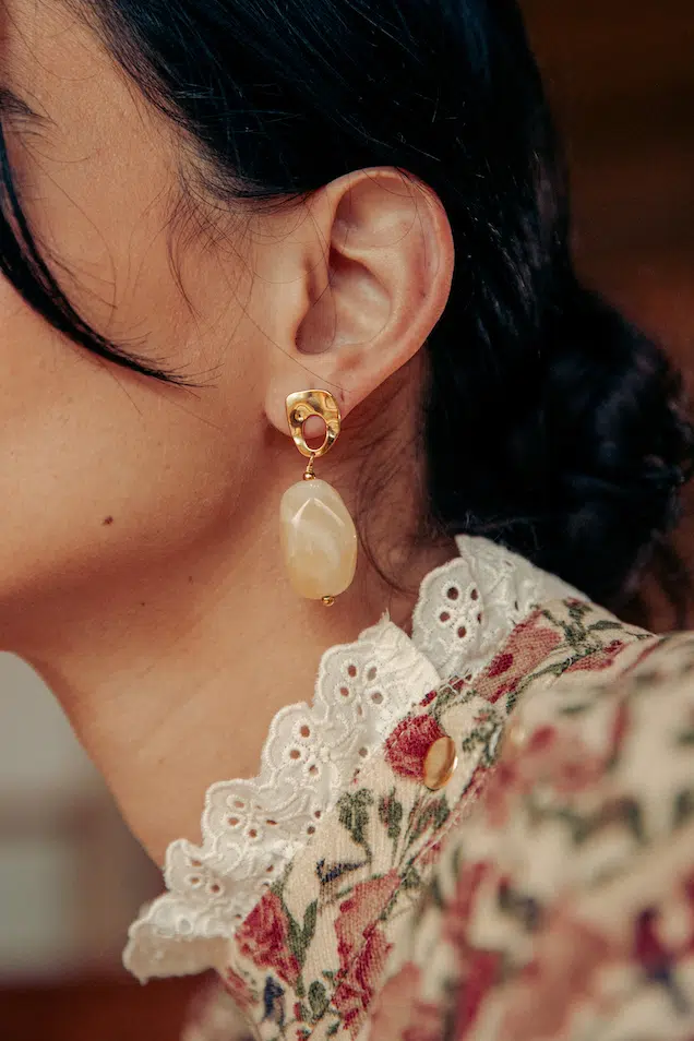 – Boucles d’oreilles pendantes – Perles asymétriques marbrées – Acier inoxydable – Fermoir pour oreilles percées – Couleur : doré et crème
