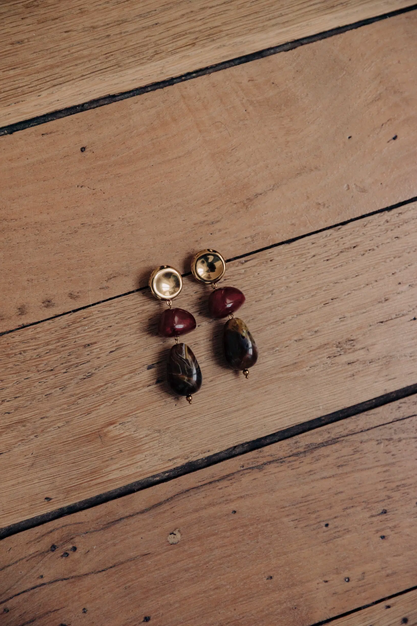 – Boucles d’oreilles pendantes – Attache en forme ronde – Perles gouttes marbrées – Acier inoxydable – Fermoir pour oreilles percées – Couleur : ambre-marron