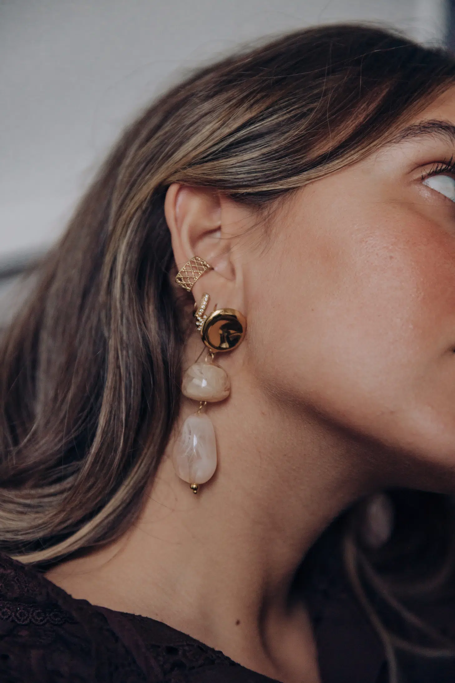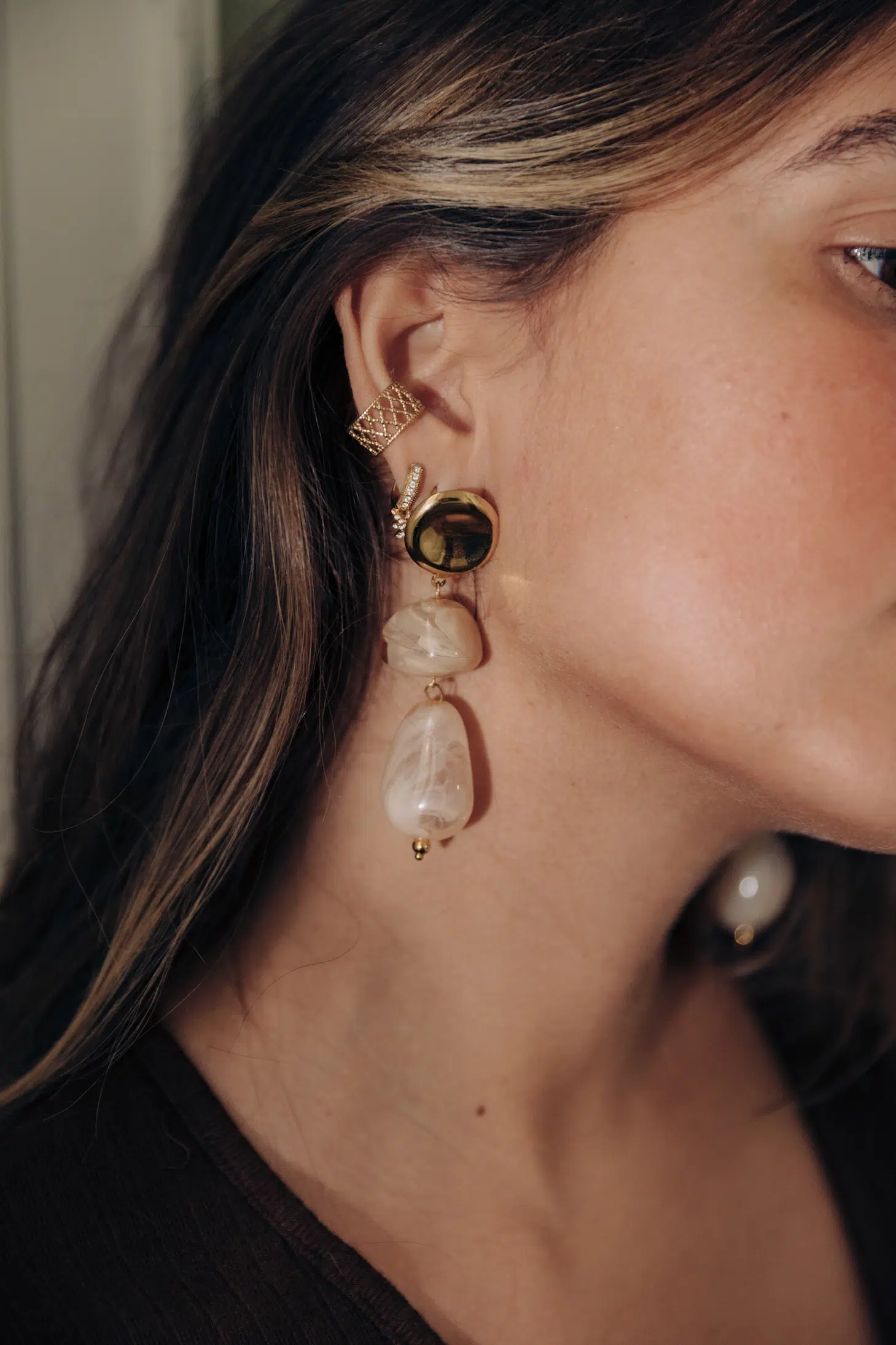 – Boucles d’oreilles pendantes – Attache en forme ronde – Perles gouttes marbrées – Acier inoxydable – Fermoir pour oreilles percées – Couleur : beige rosé