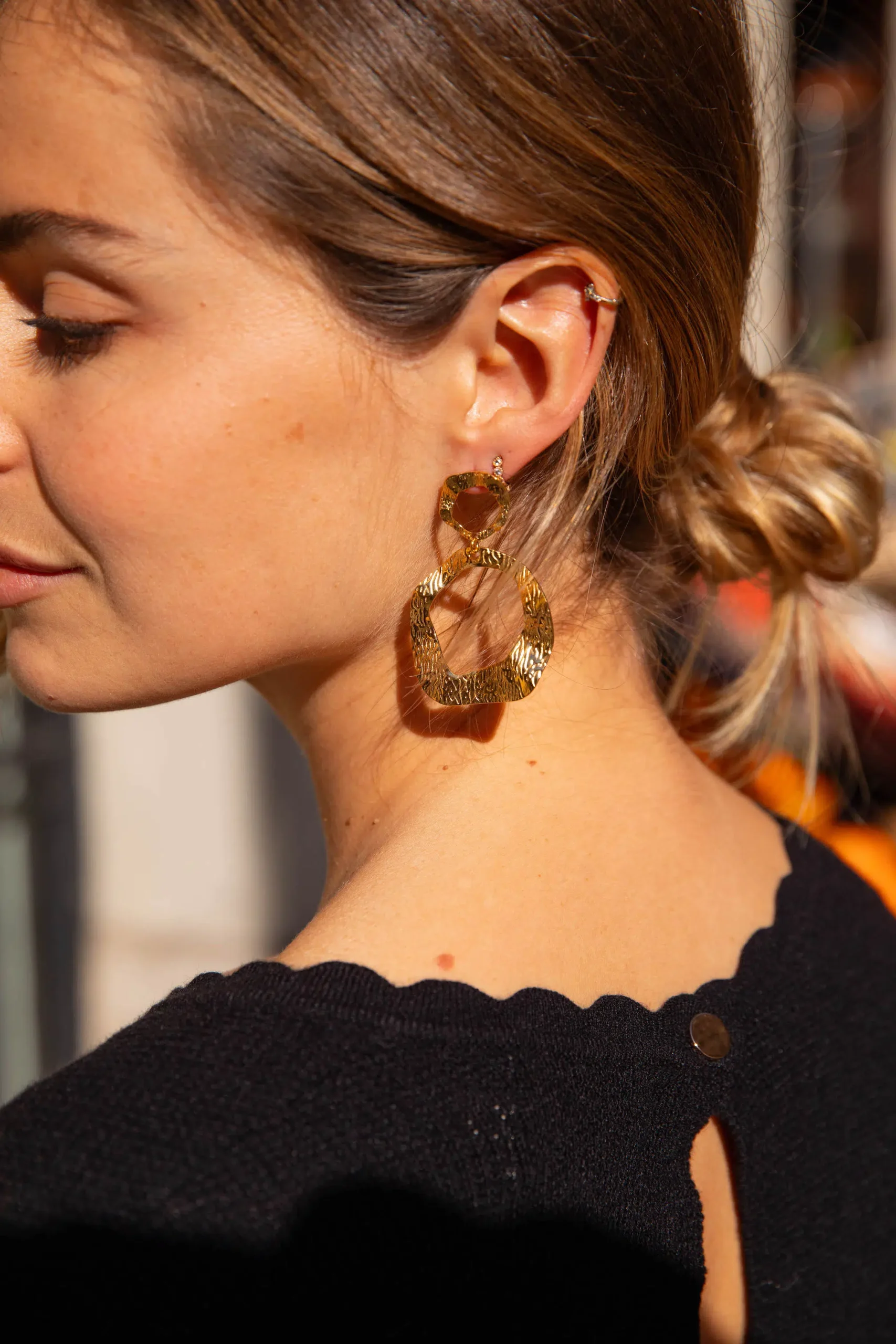 – Boucles d’oreilles créoles – Effet martelé – Pour oreilles percées – Dorées – Acier inoxydable