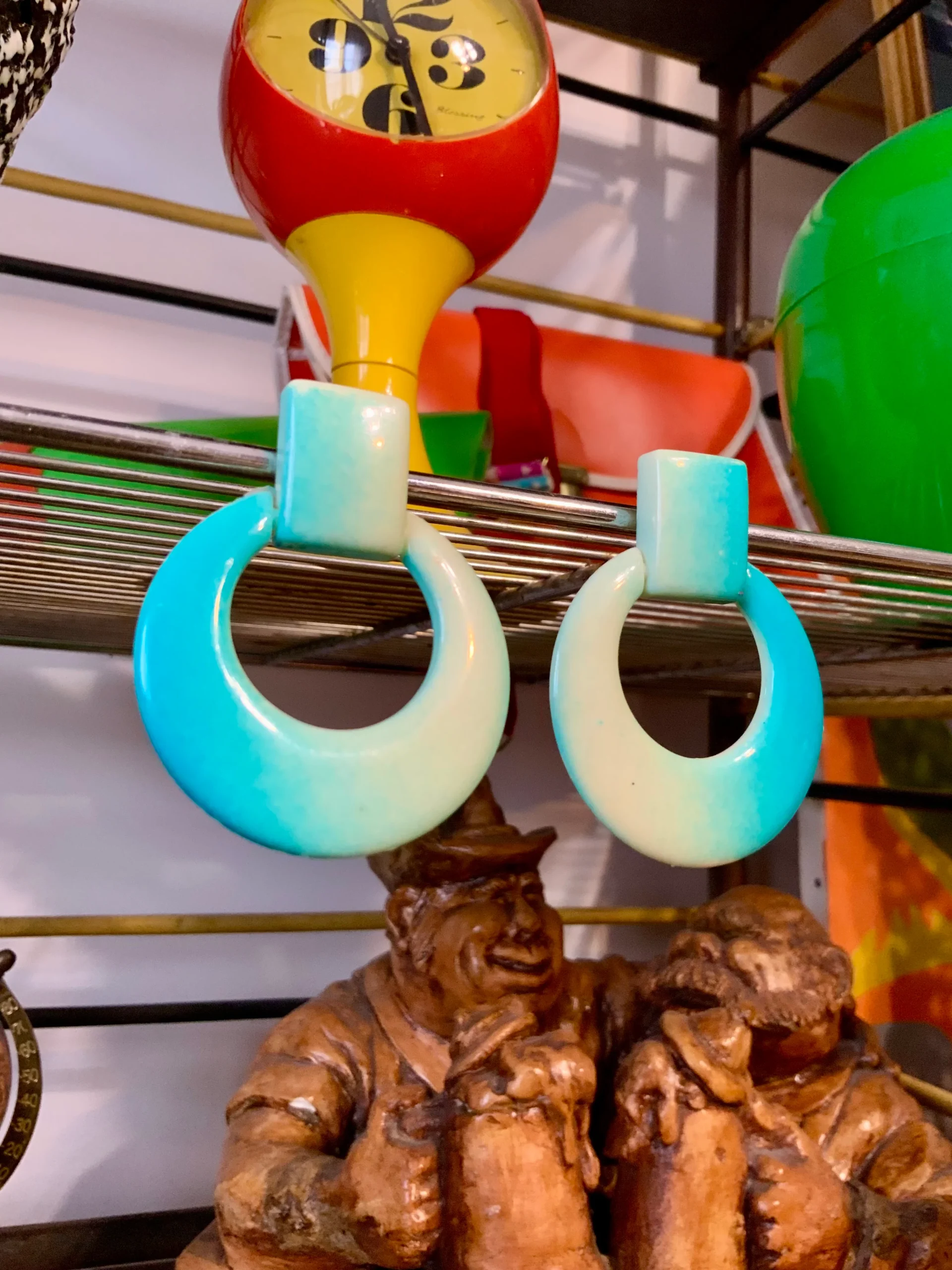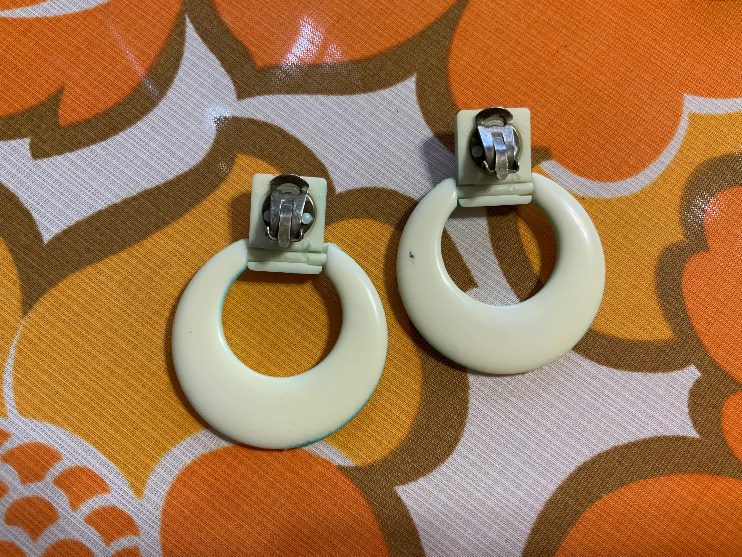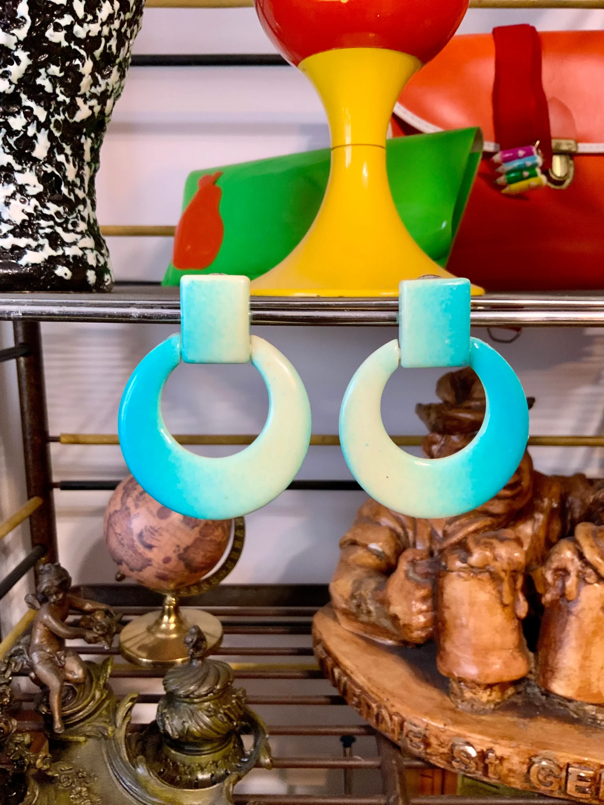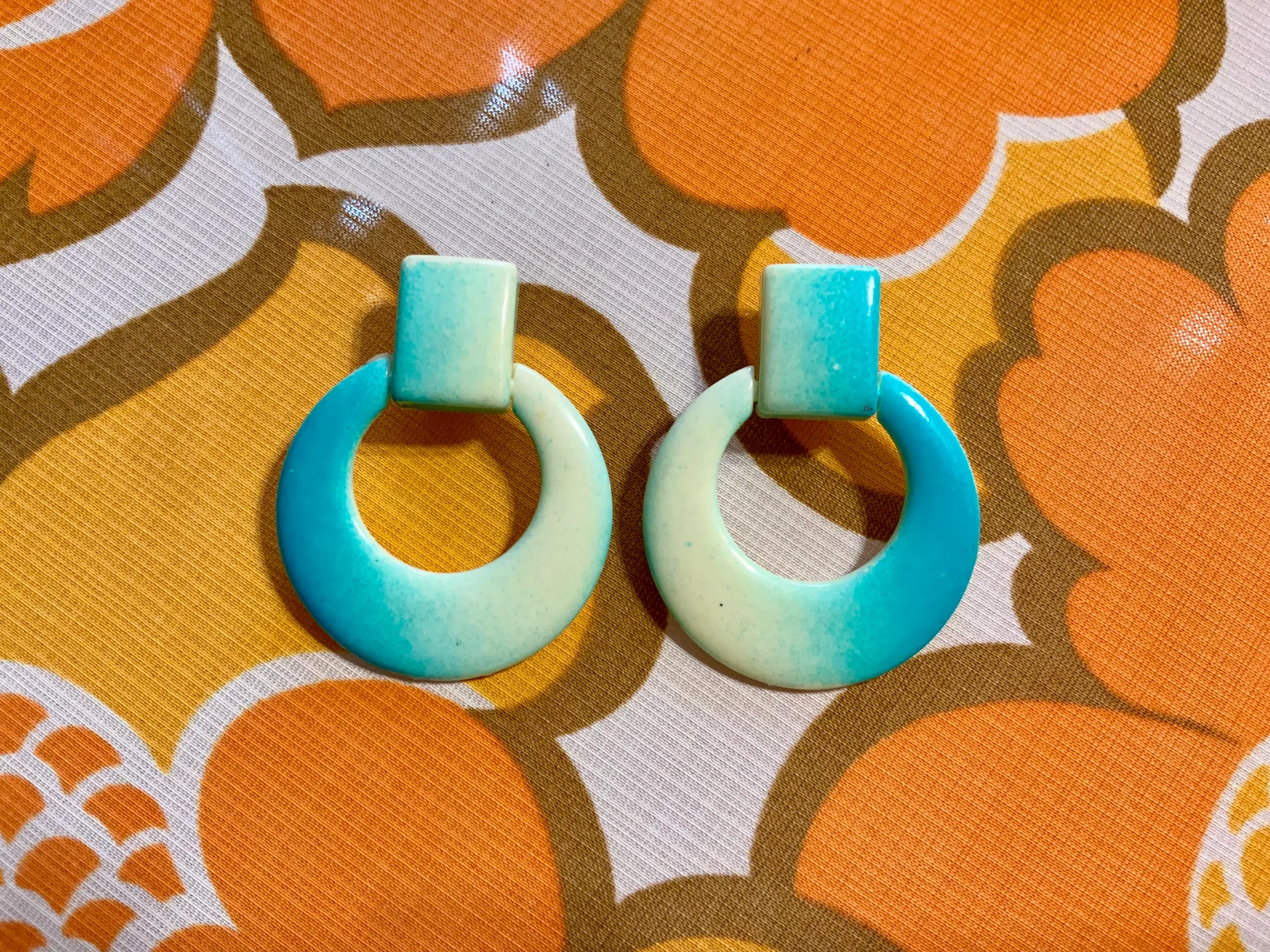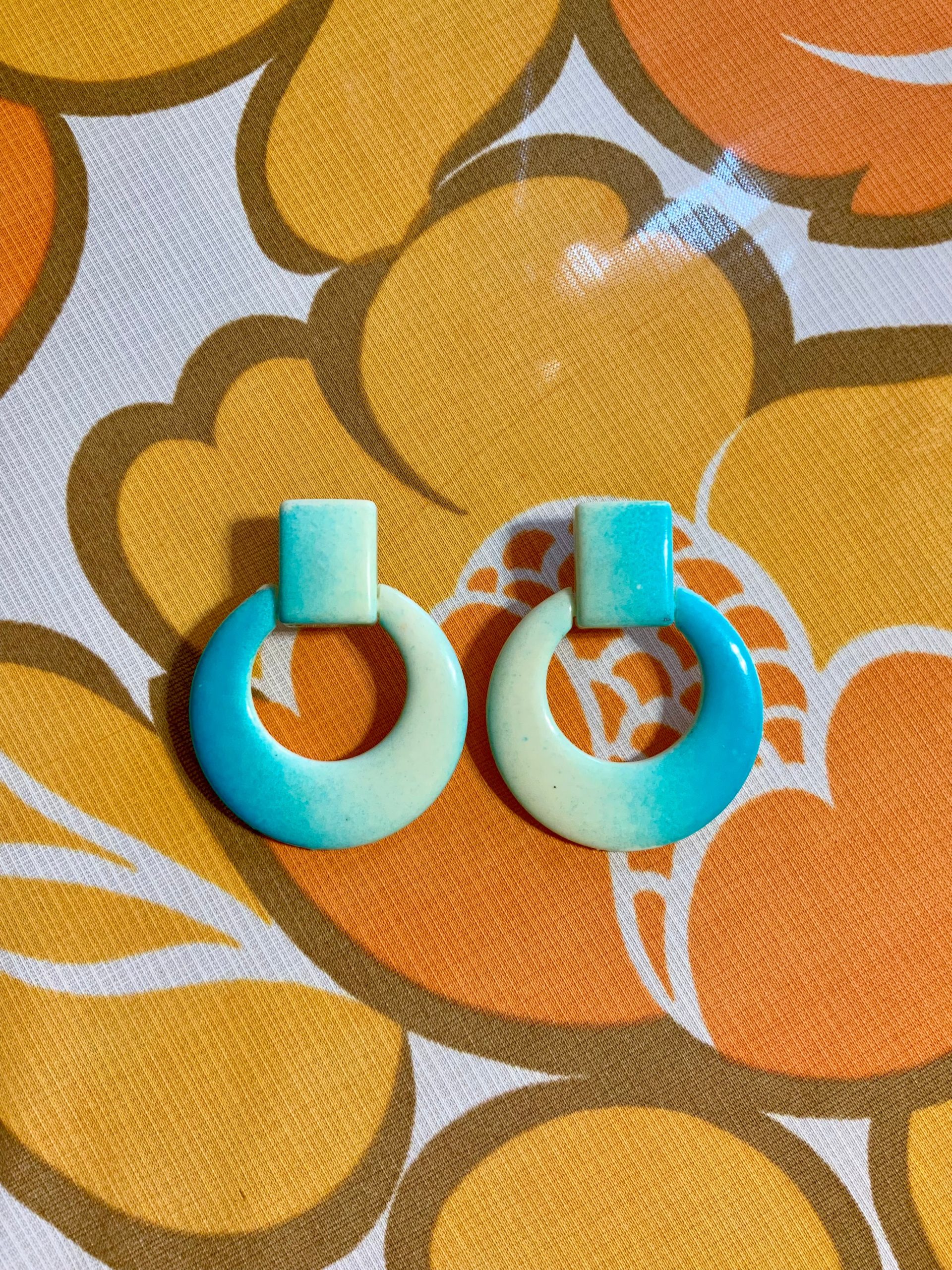 Ravissantes boucles d’oreilles 1980 métal et plastique bleu blanc.