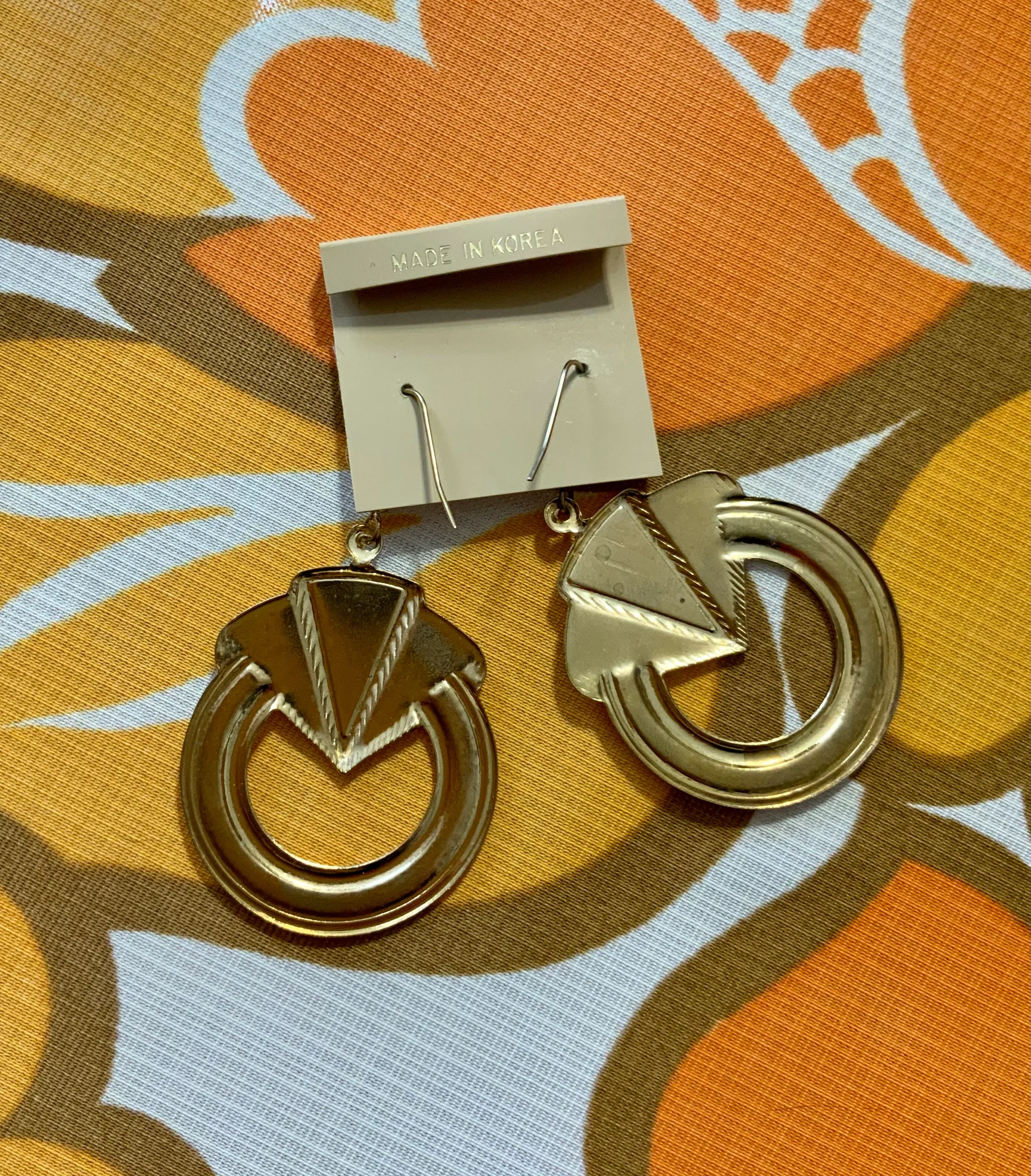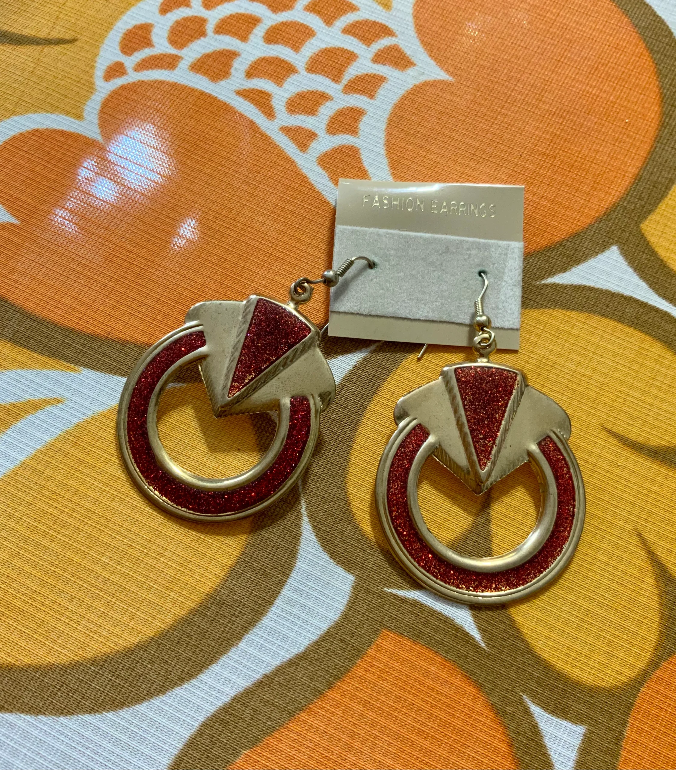 Boucles d’oreilles Vintage 1990 Métal doré et paillettes rouges – Créoles