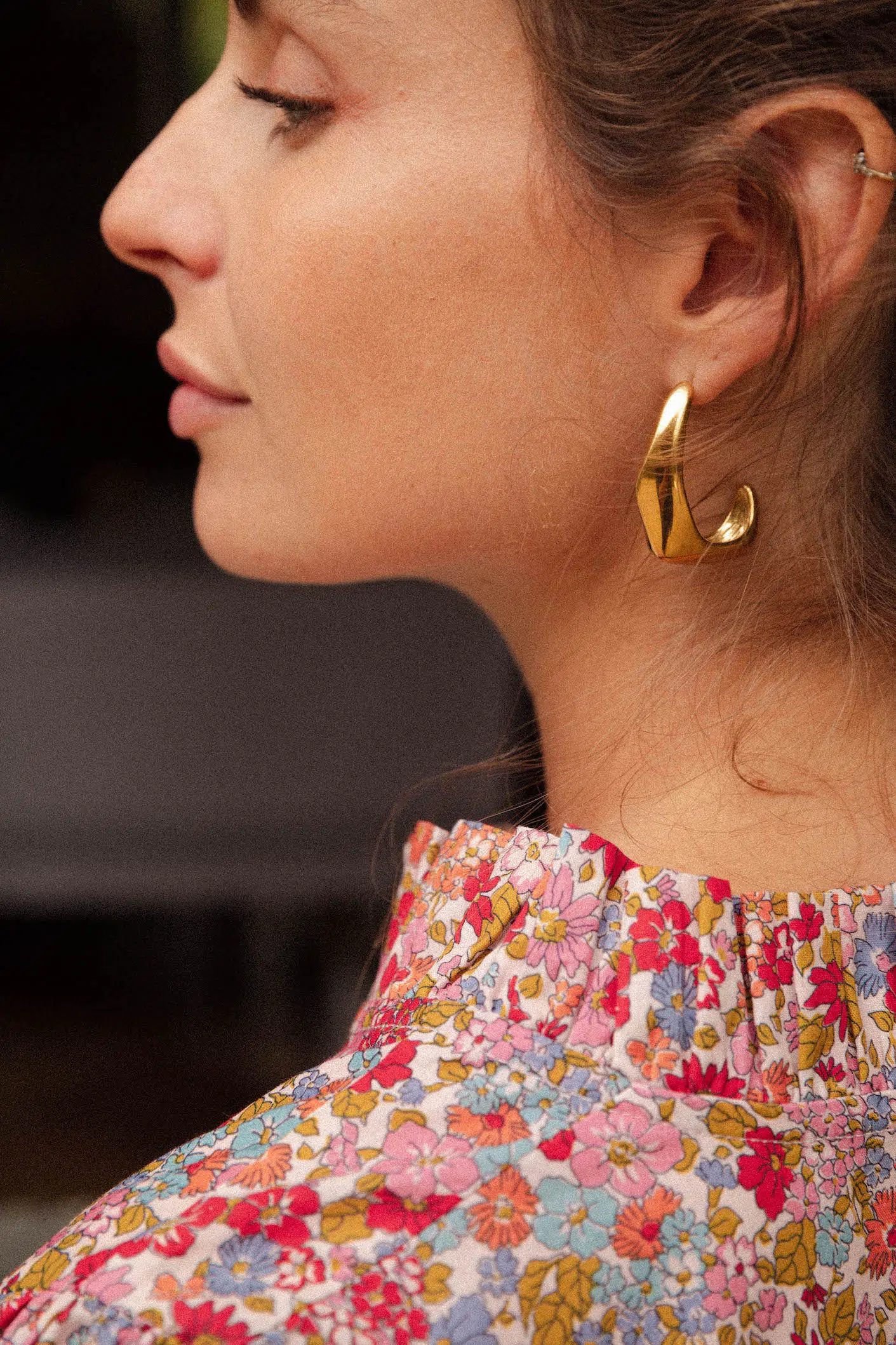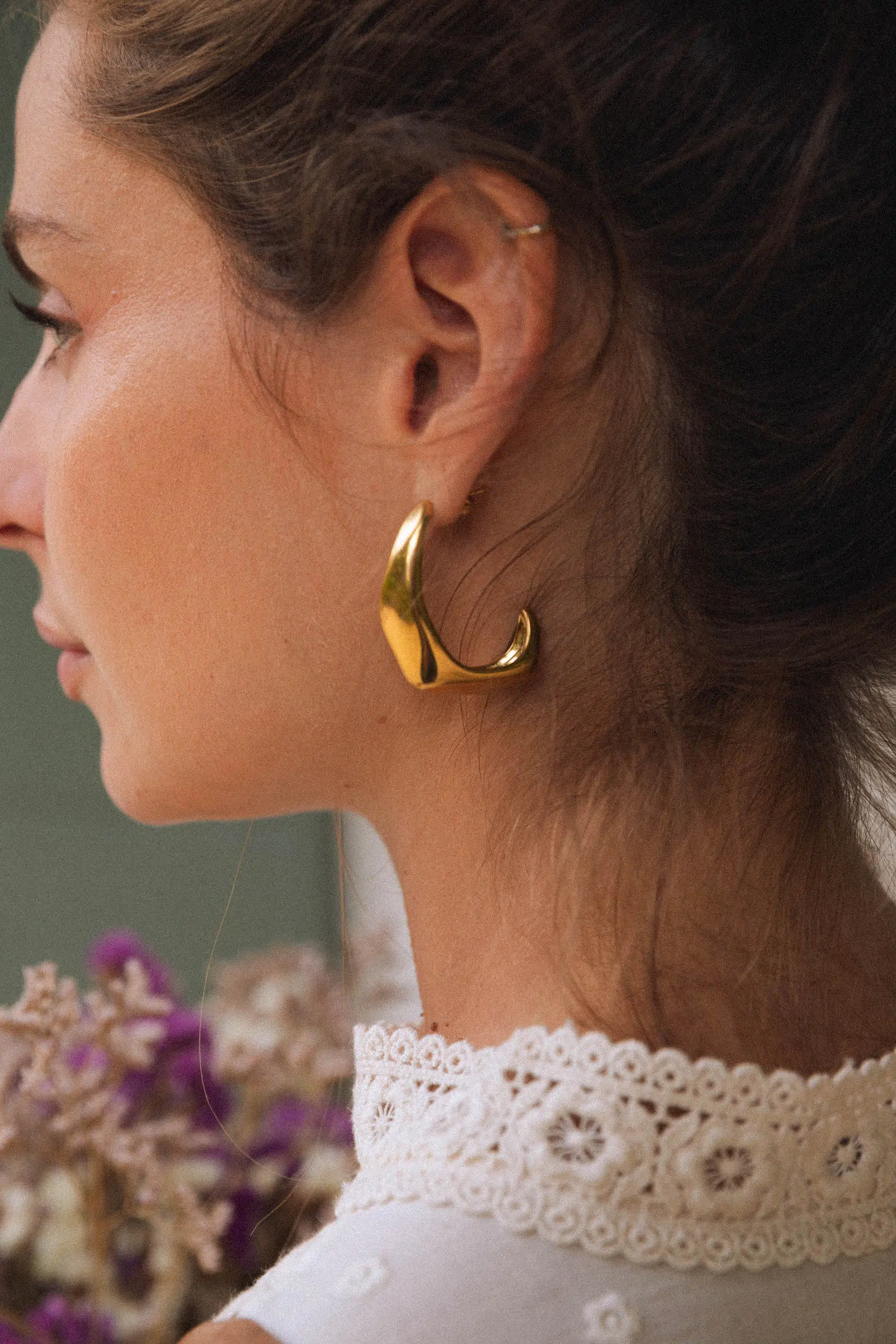 – Créoles au design sculptural – Acier inoxydable – Fermoir sécurisé pour oreilles percées – Couleur: doré