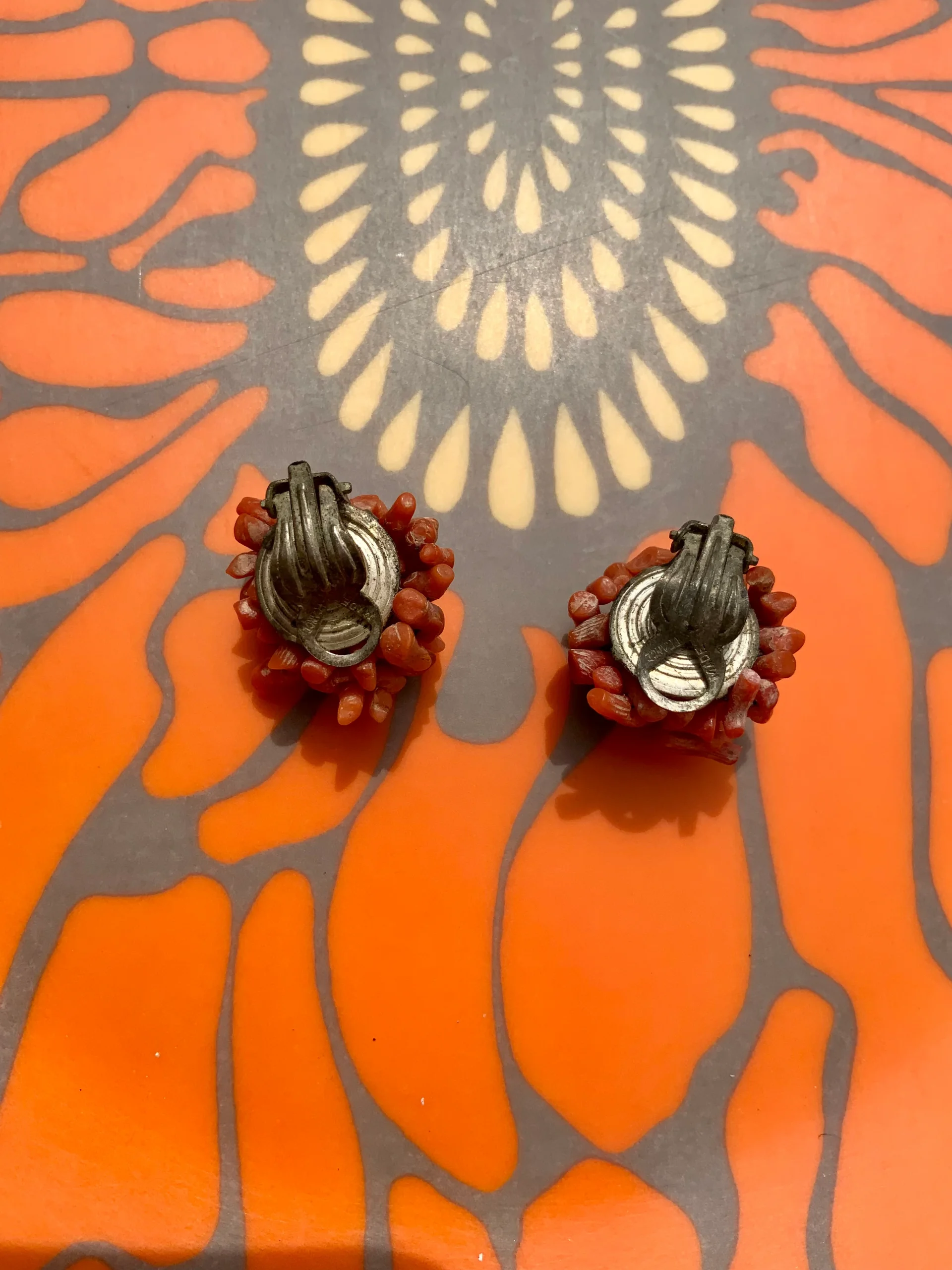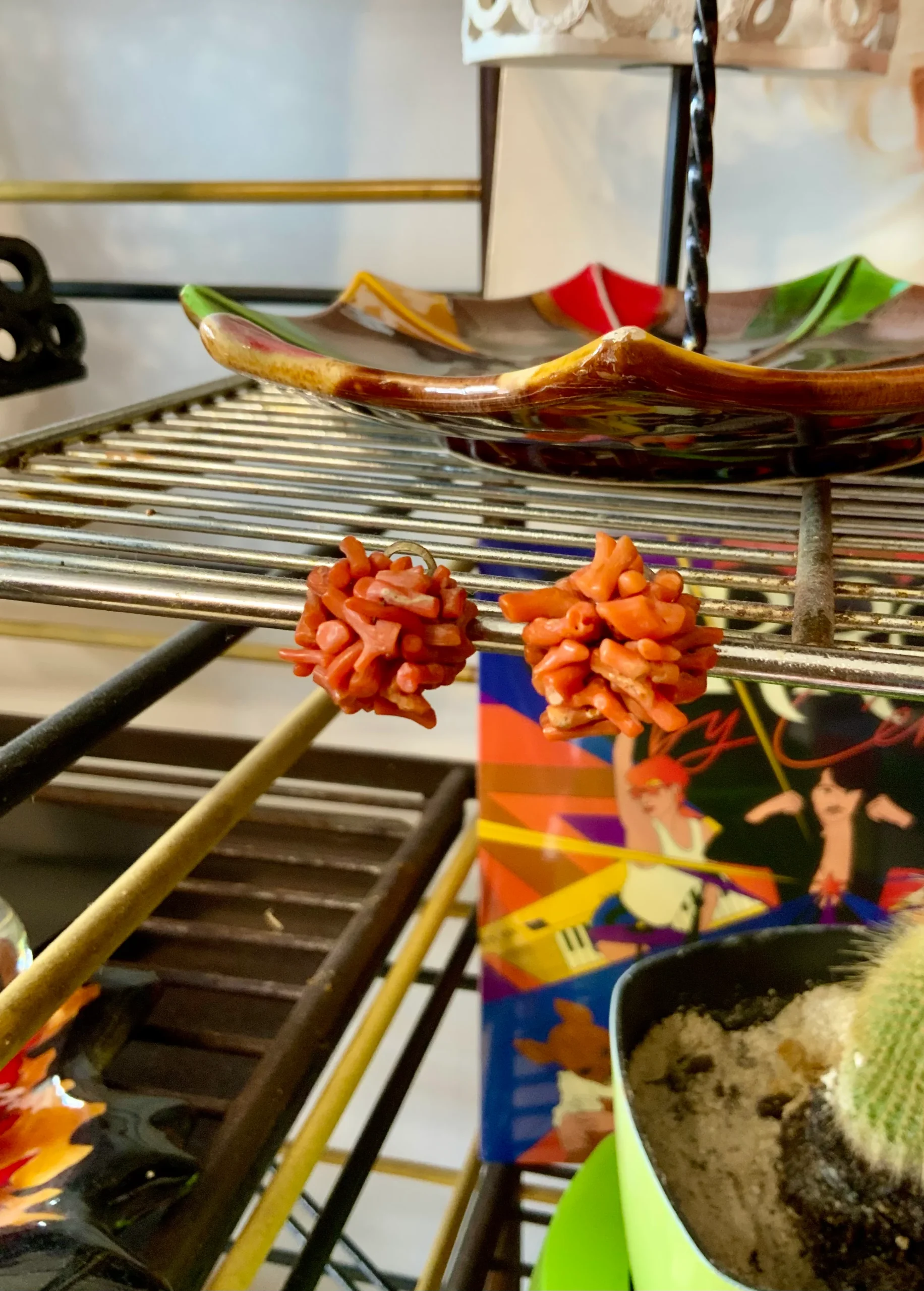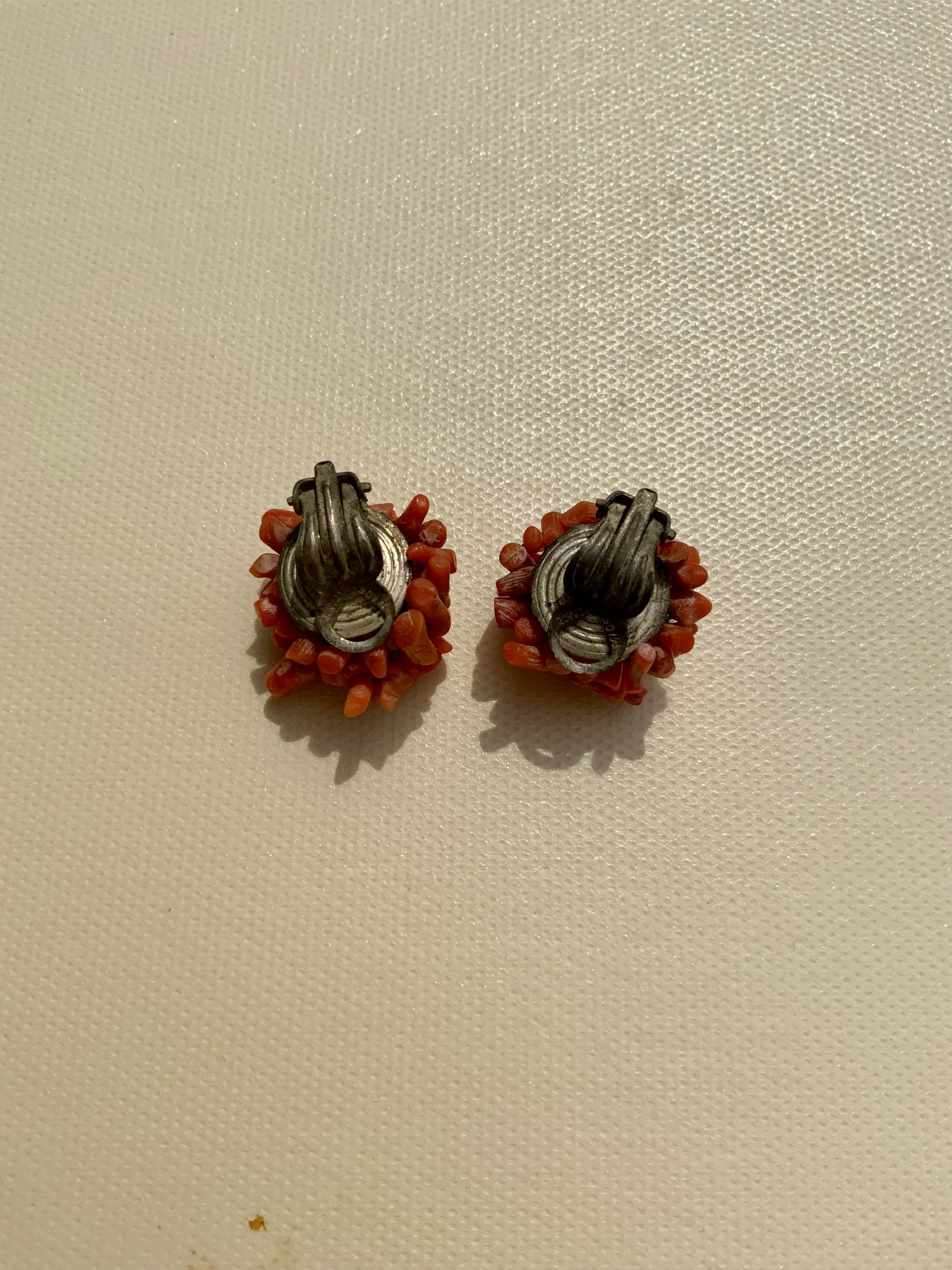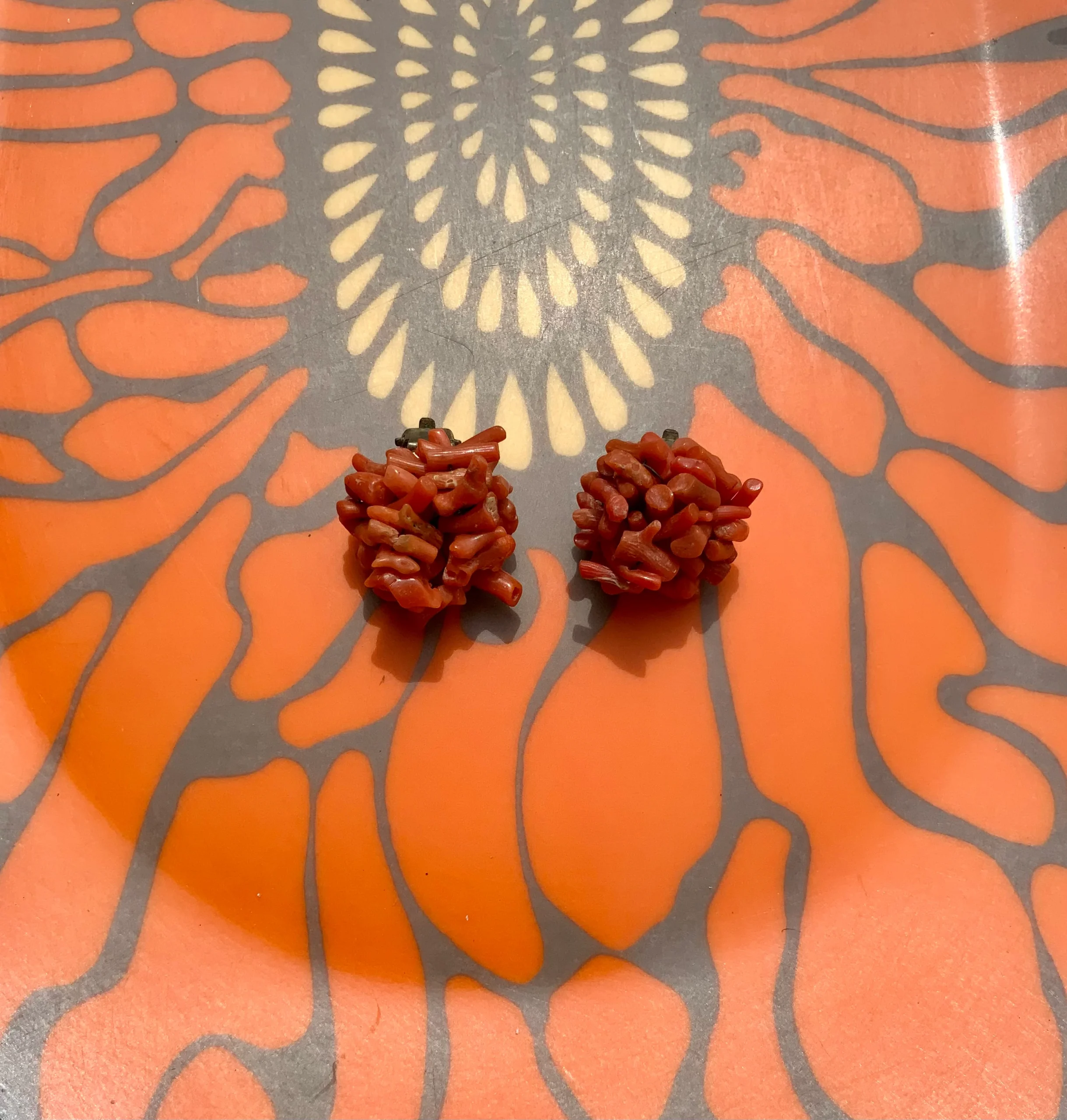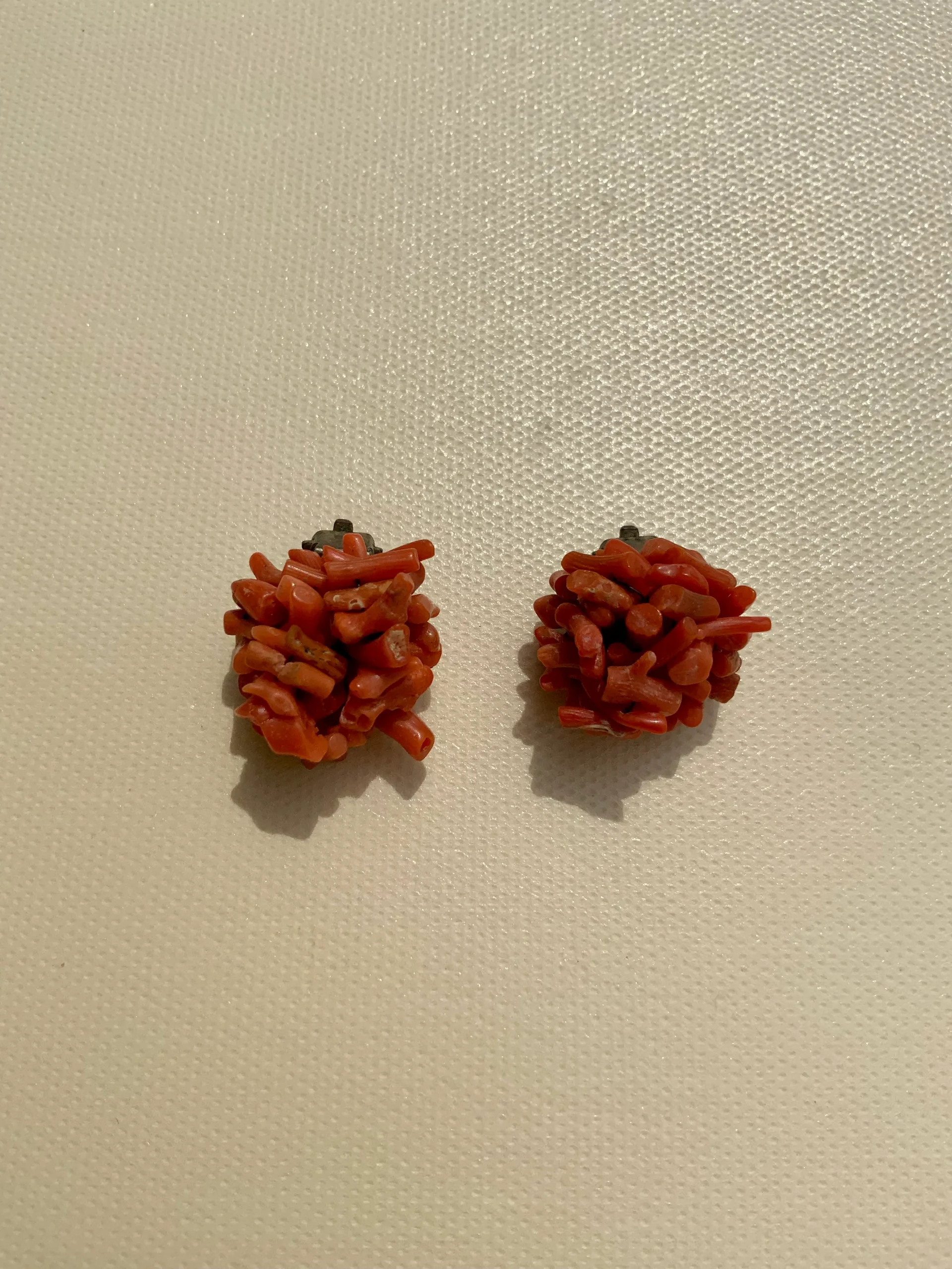 Boucles d’oreilles magnifiques écailles de corail rouge ancienne antique vintage chic