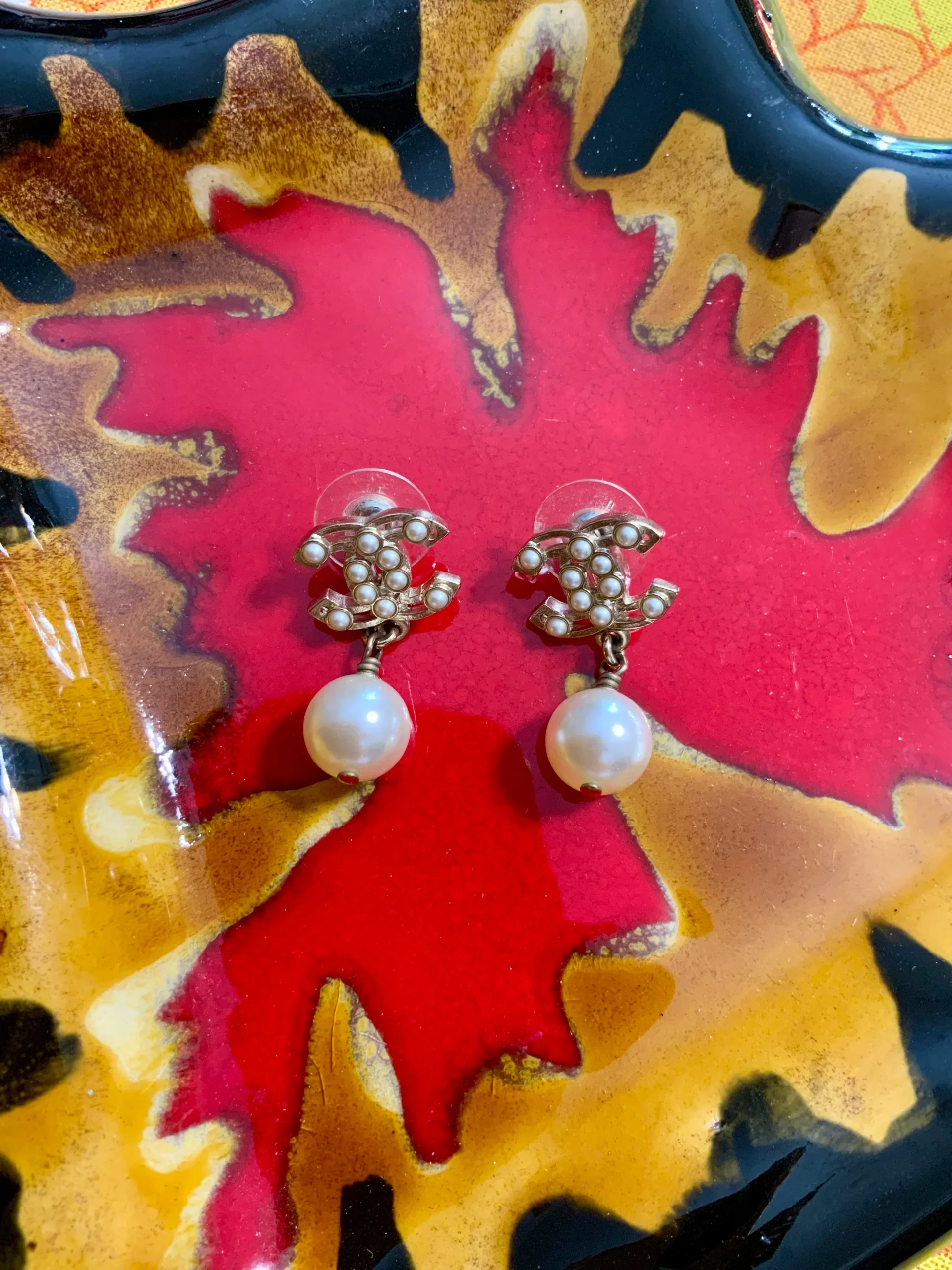 Excellent état – Signature au dos et certificat d’authenticité qui sera envoyé avec la commande (vestiaire collective )- Métal plaqué or et perles.