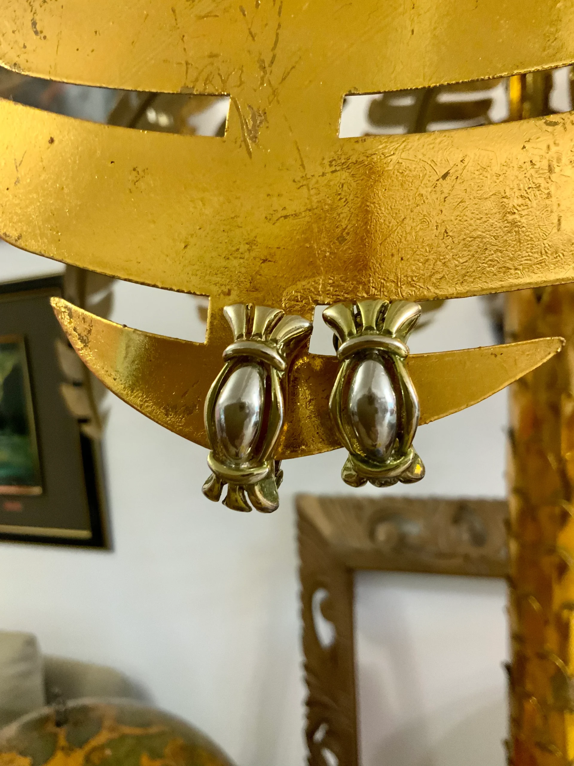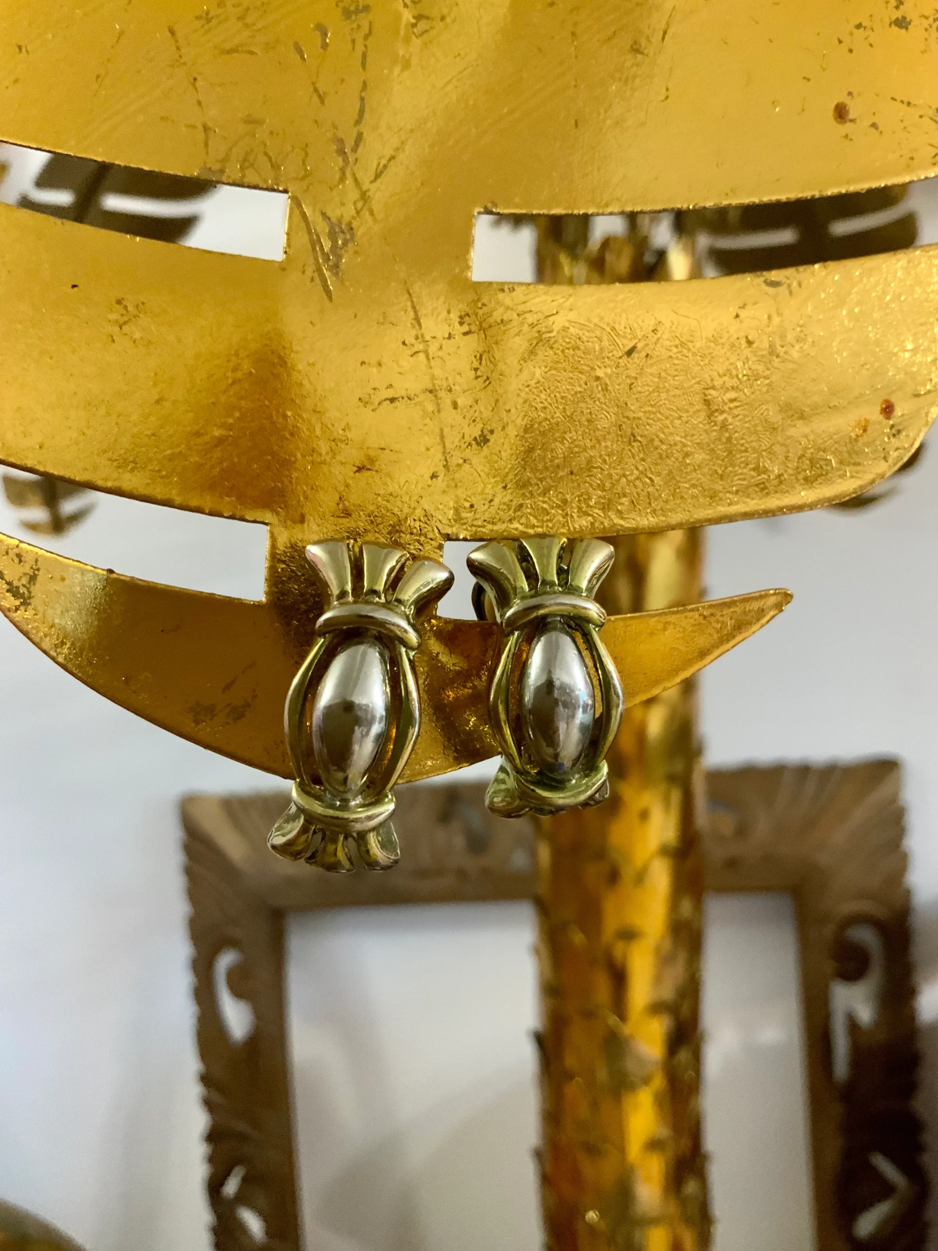 Très belles boucles d’oreilles Vintage 1980 Métal doré et reflets nacrés devant – Grande qualité Très solides et épaisses –