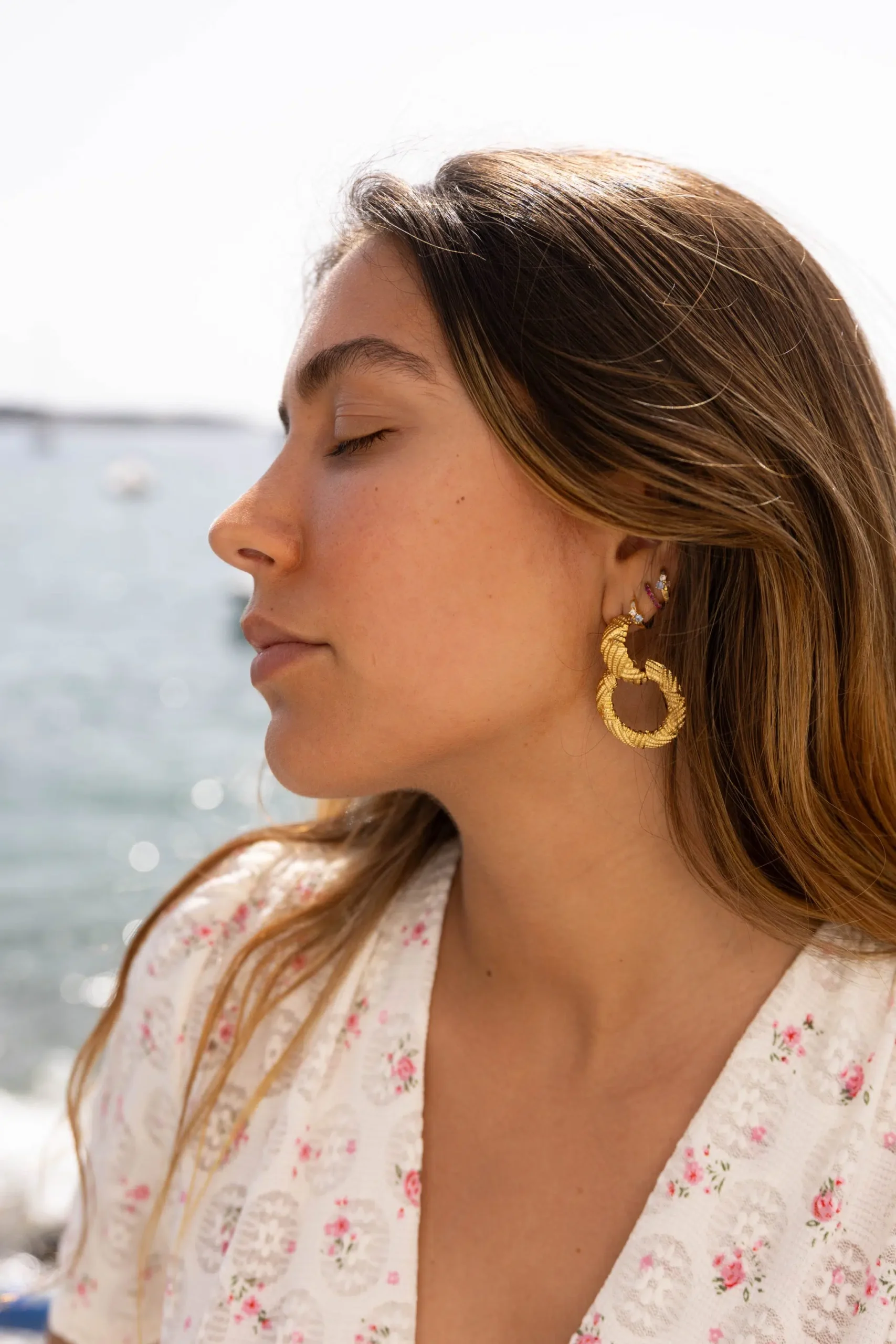 – Boucles d’oreilles pendantes – Décors en relief – Acier inoxydable – Pour oreilles percées – Couleur: doré