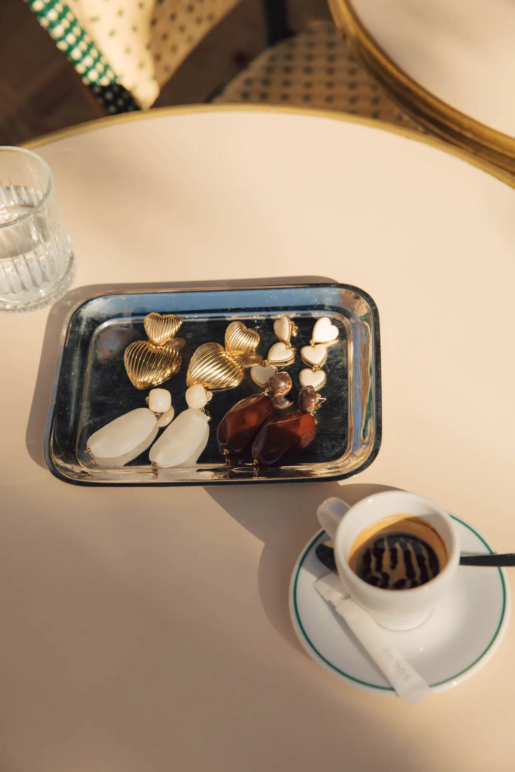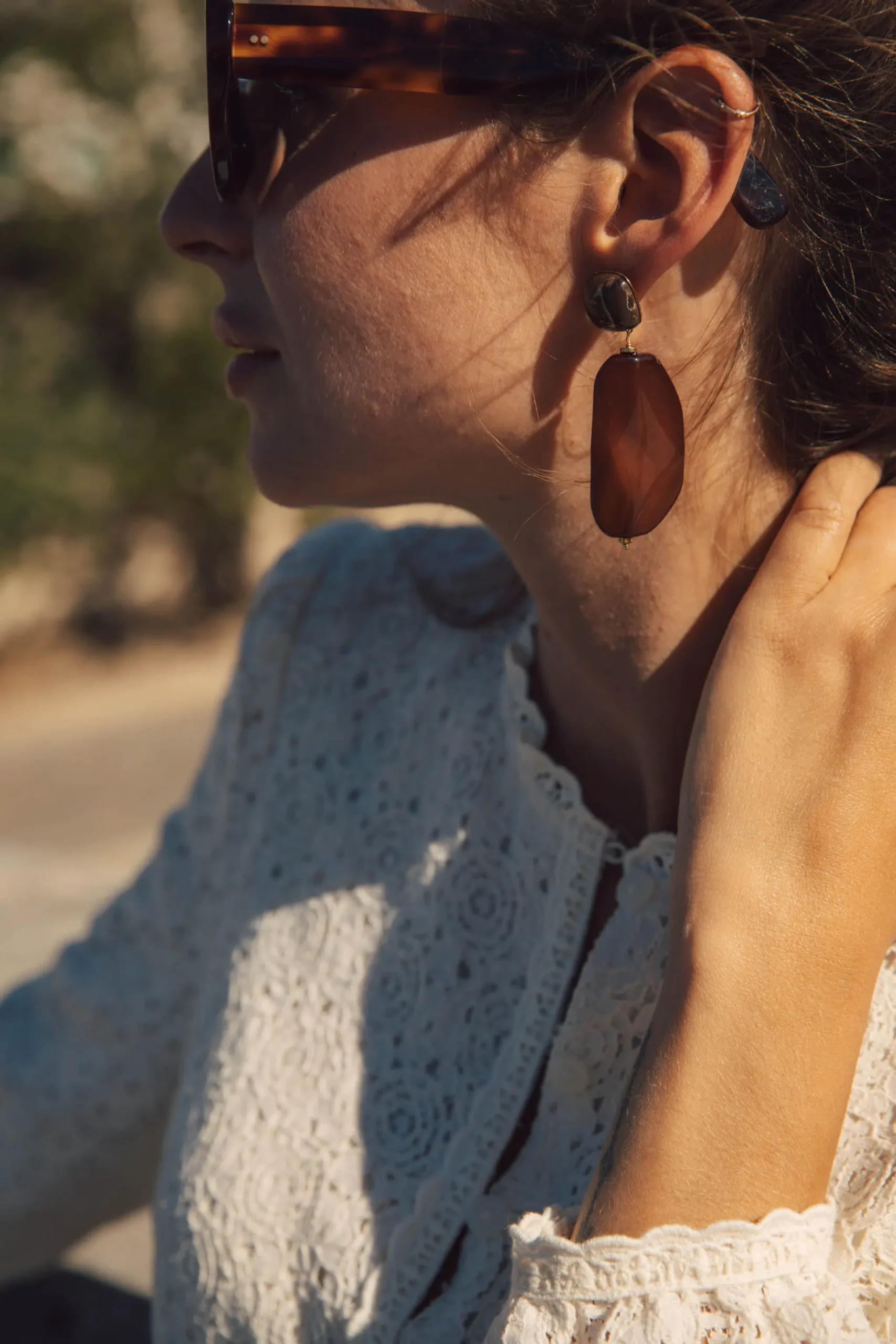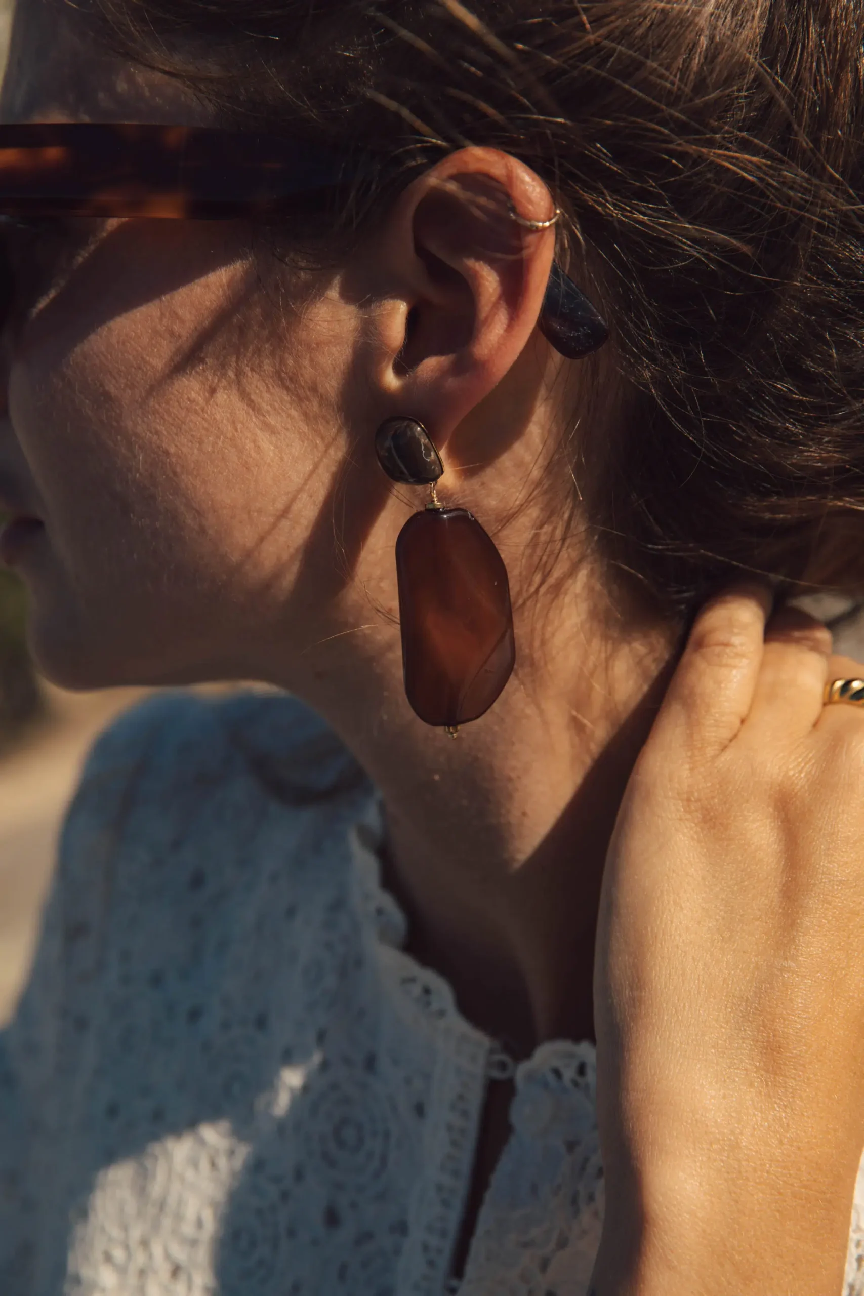 – Boucles d’oreilles pendantes – Acier inoxydable – Fermoir pour oreilles percées – Couleur : doré et marron ambré