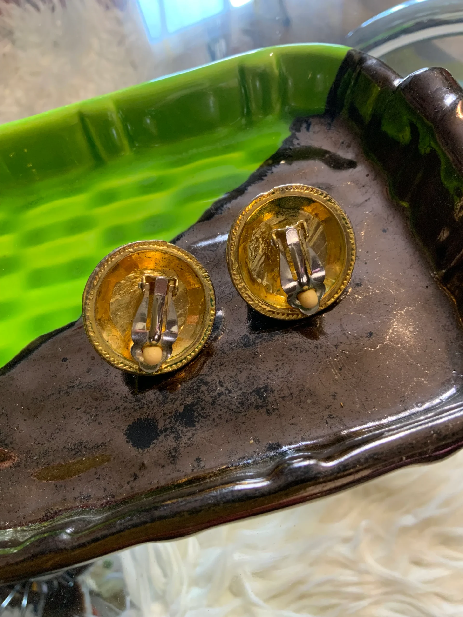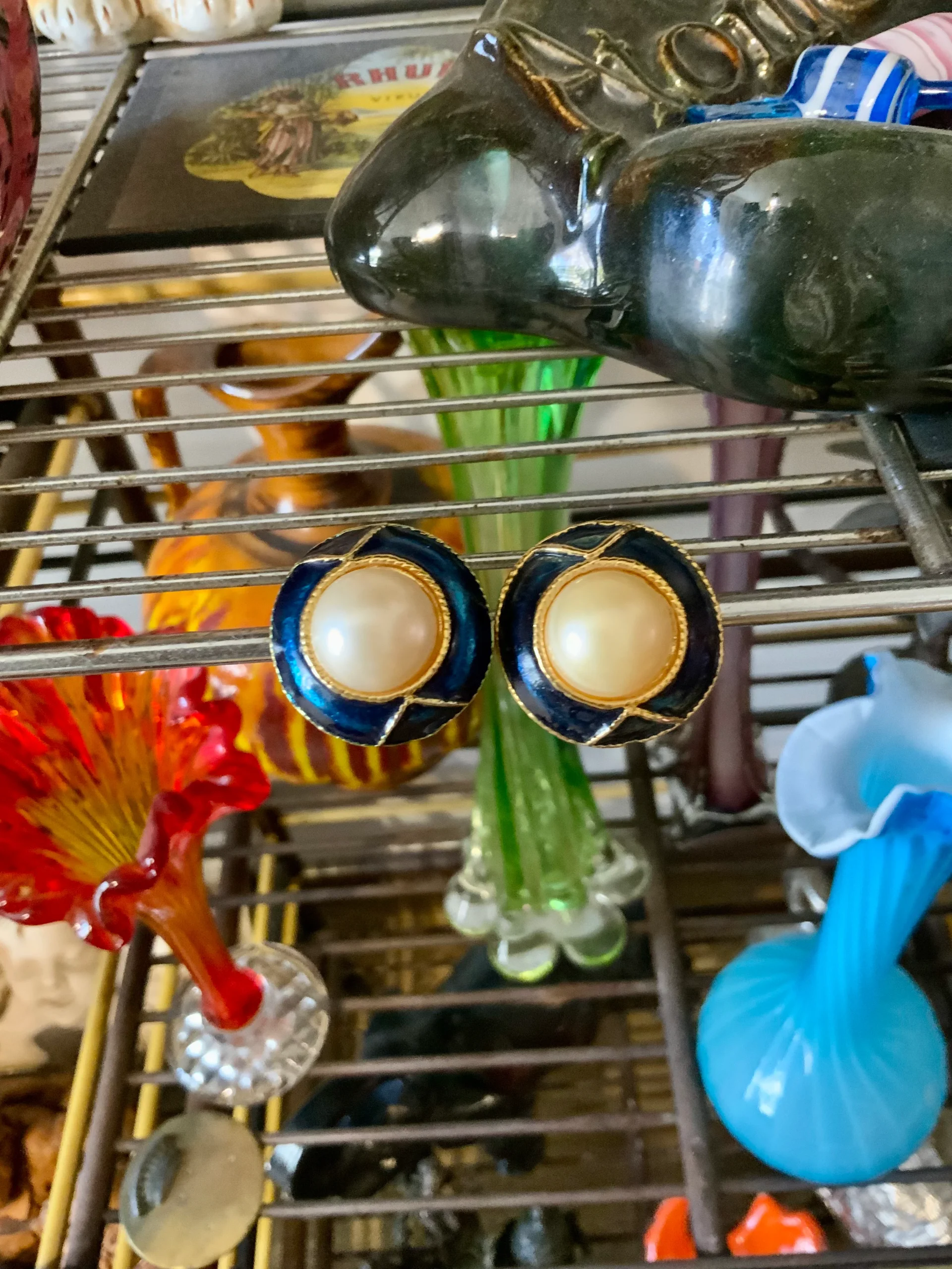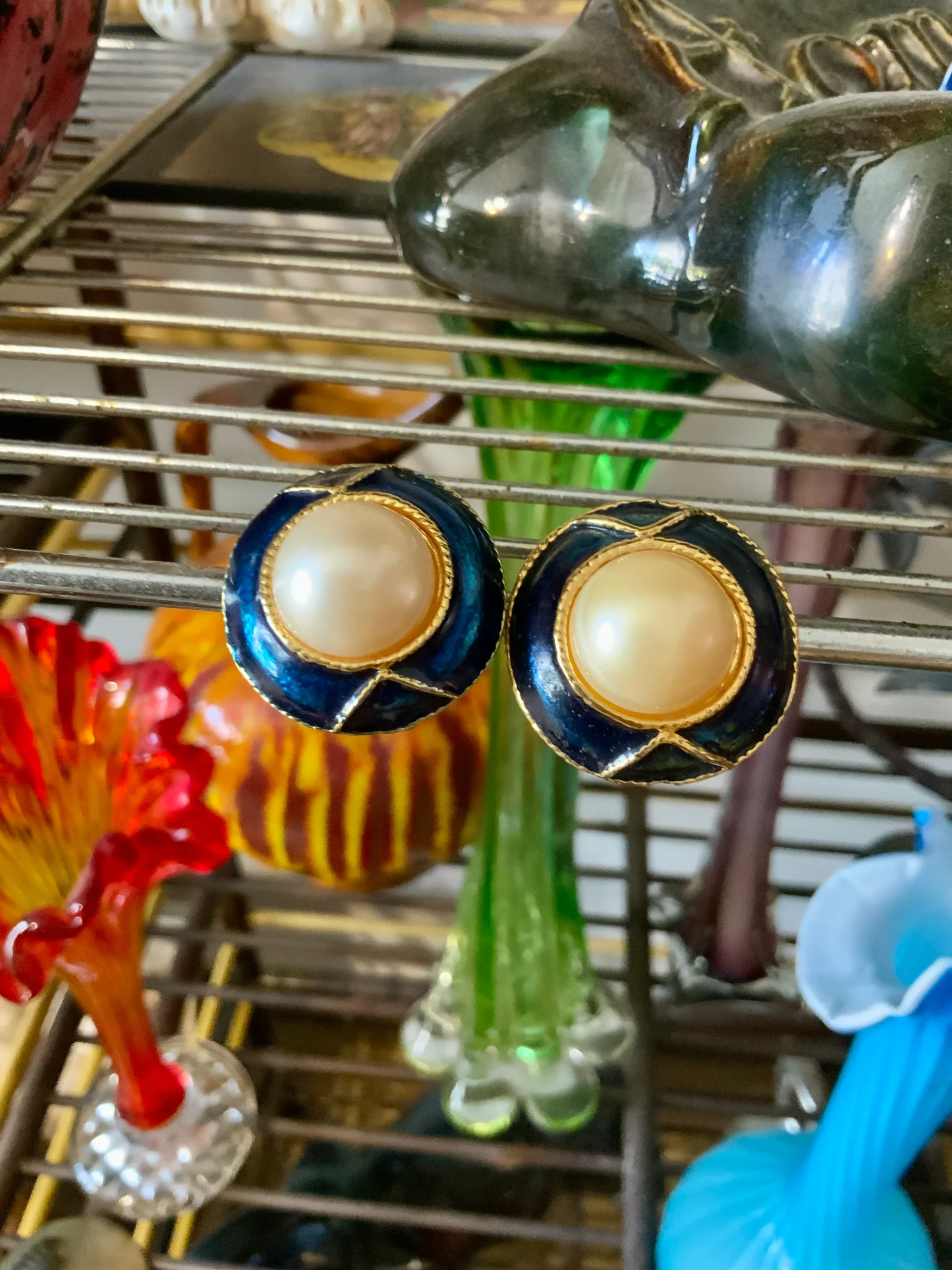 Boucles d’oreilles Vintage Métal perles émail 1980
