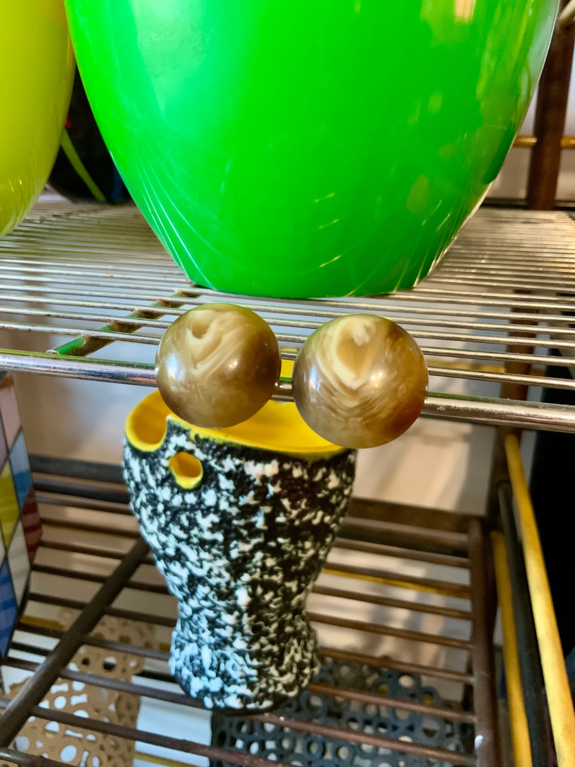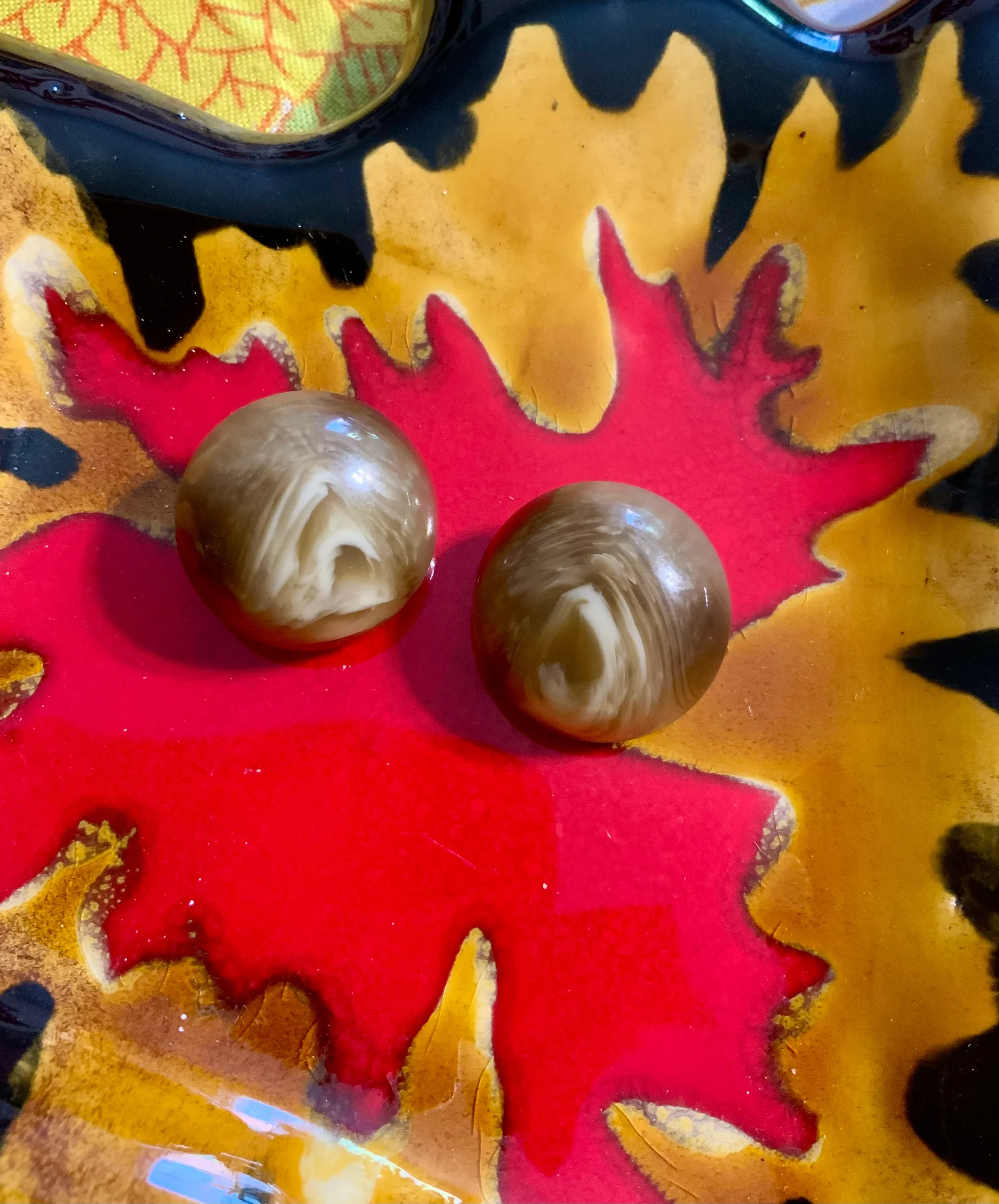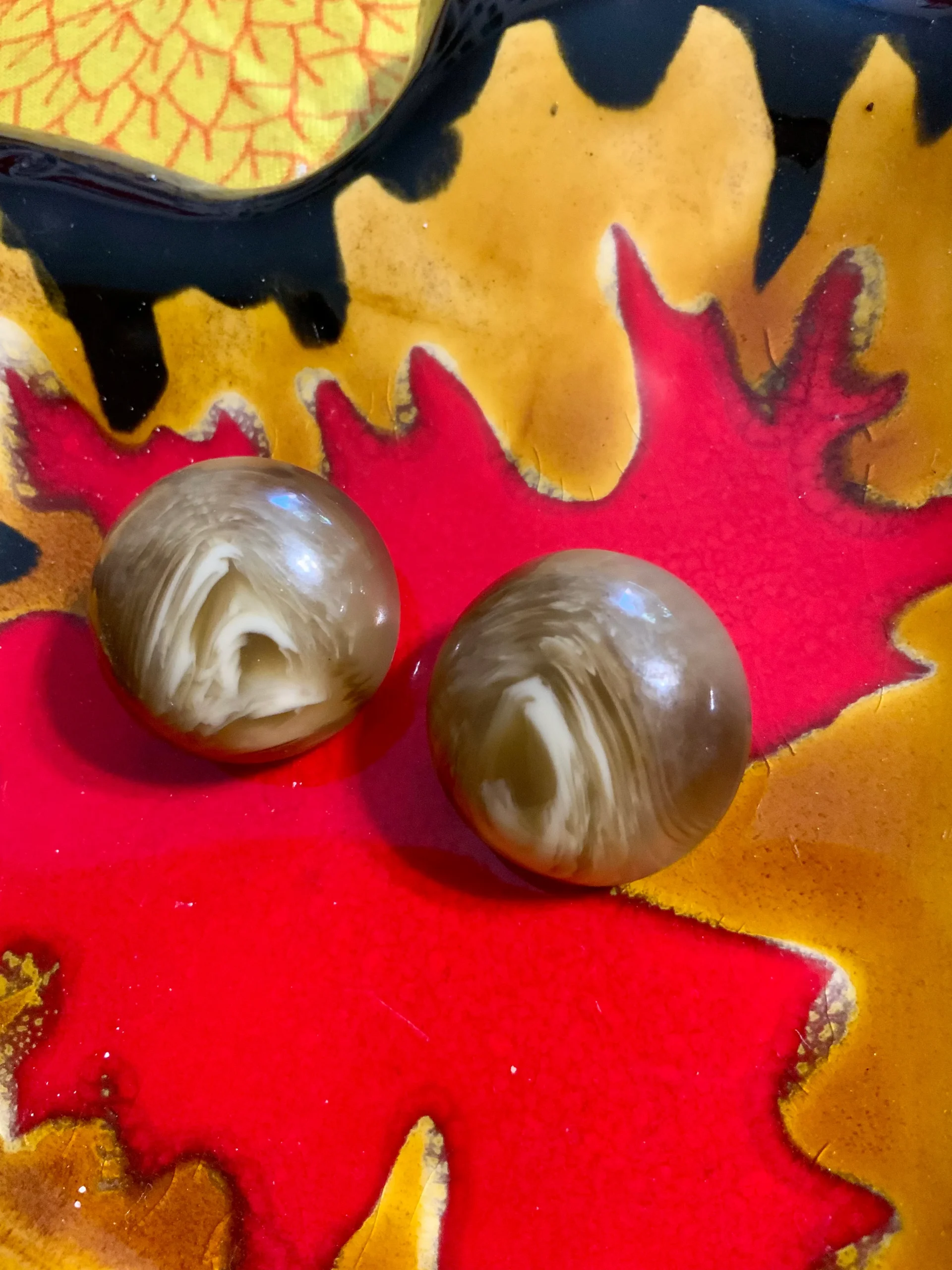 Très jolies boucles d’oreilles anciennes Boules volume Marron effets.