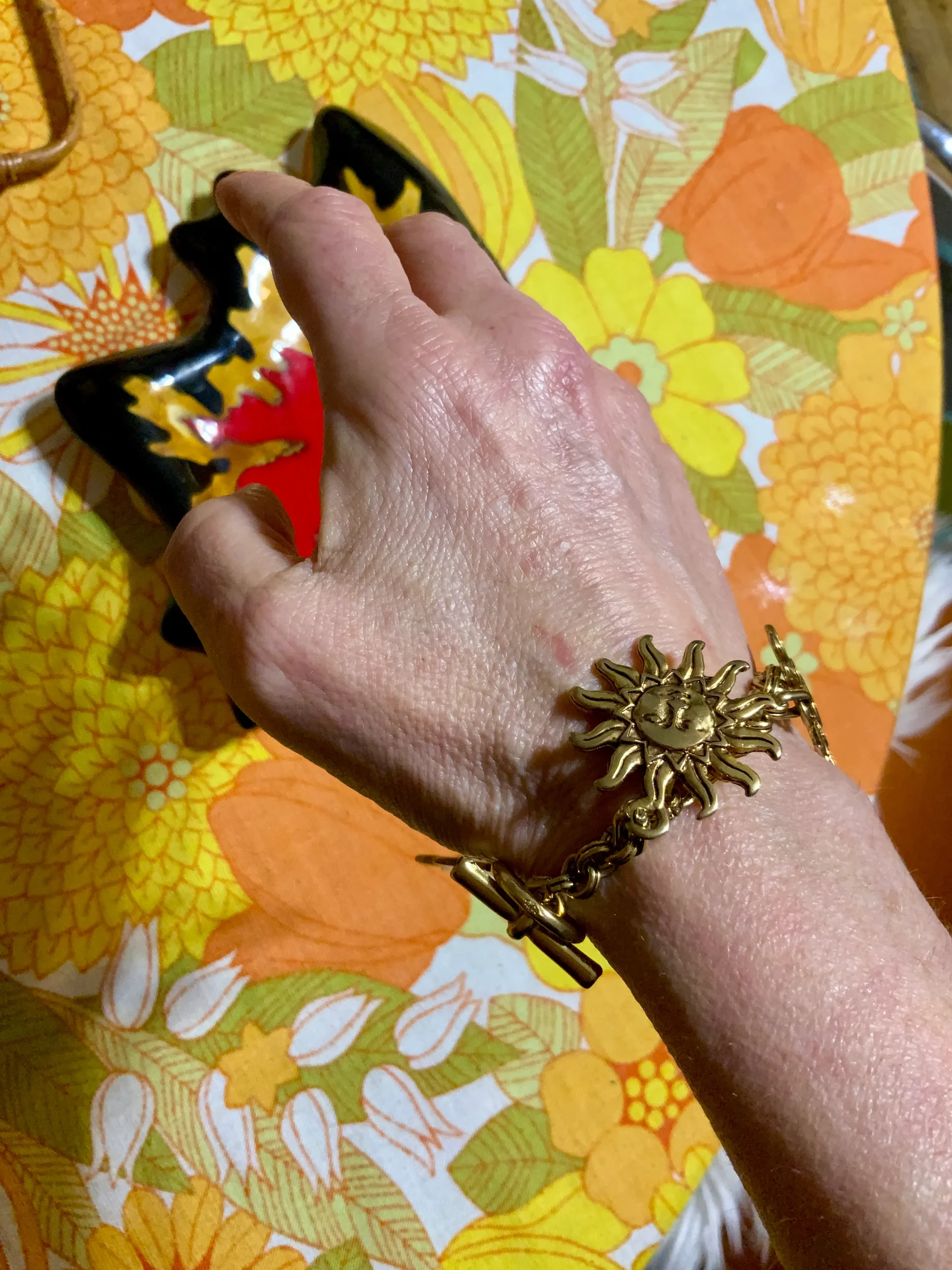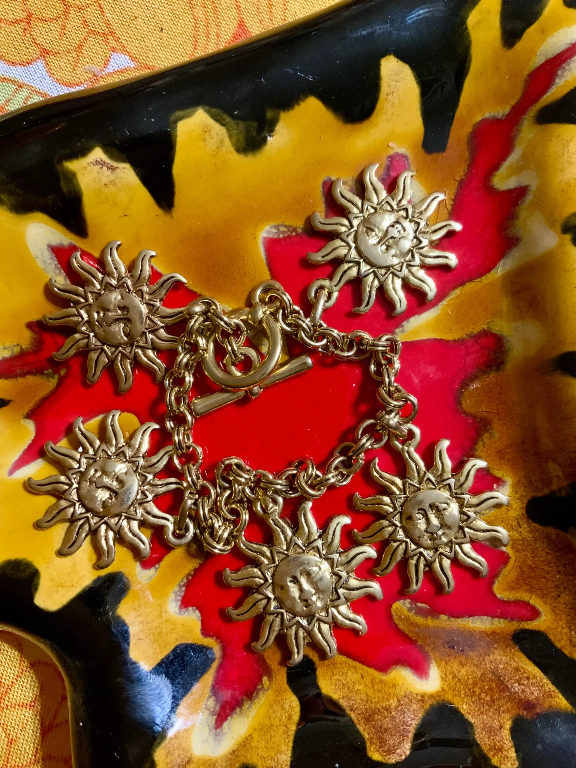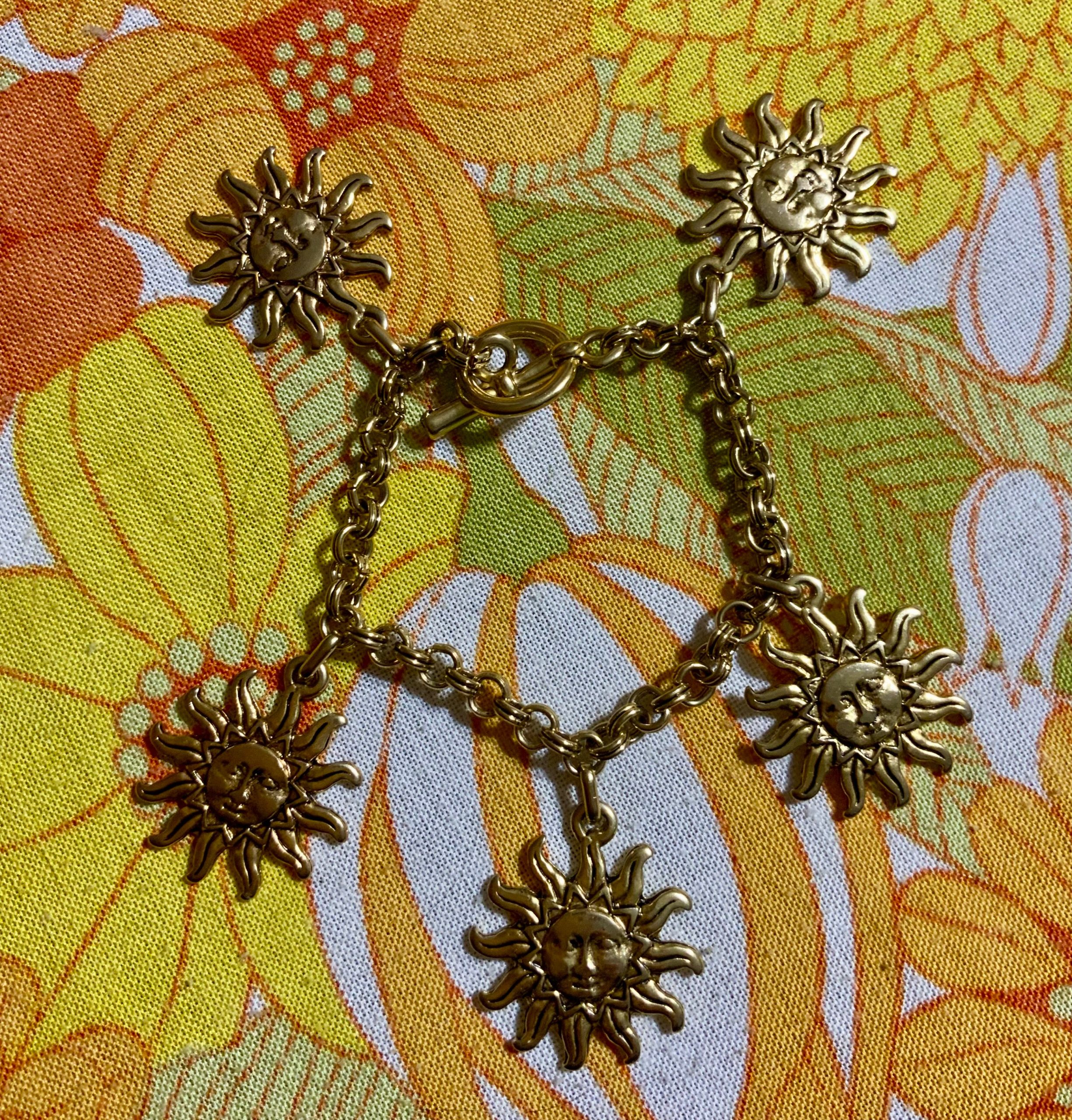 Le Bracelet pendeloques Vintage 1990 Métal doré Formes Soleils –