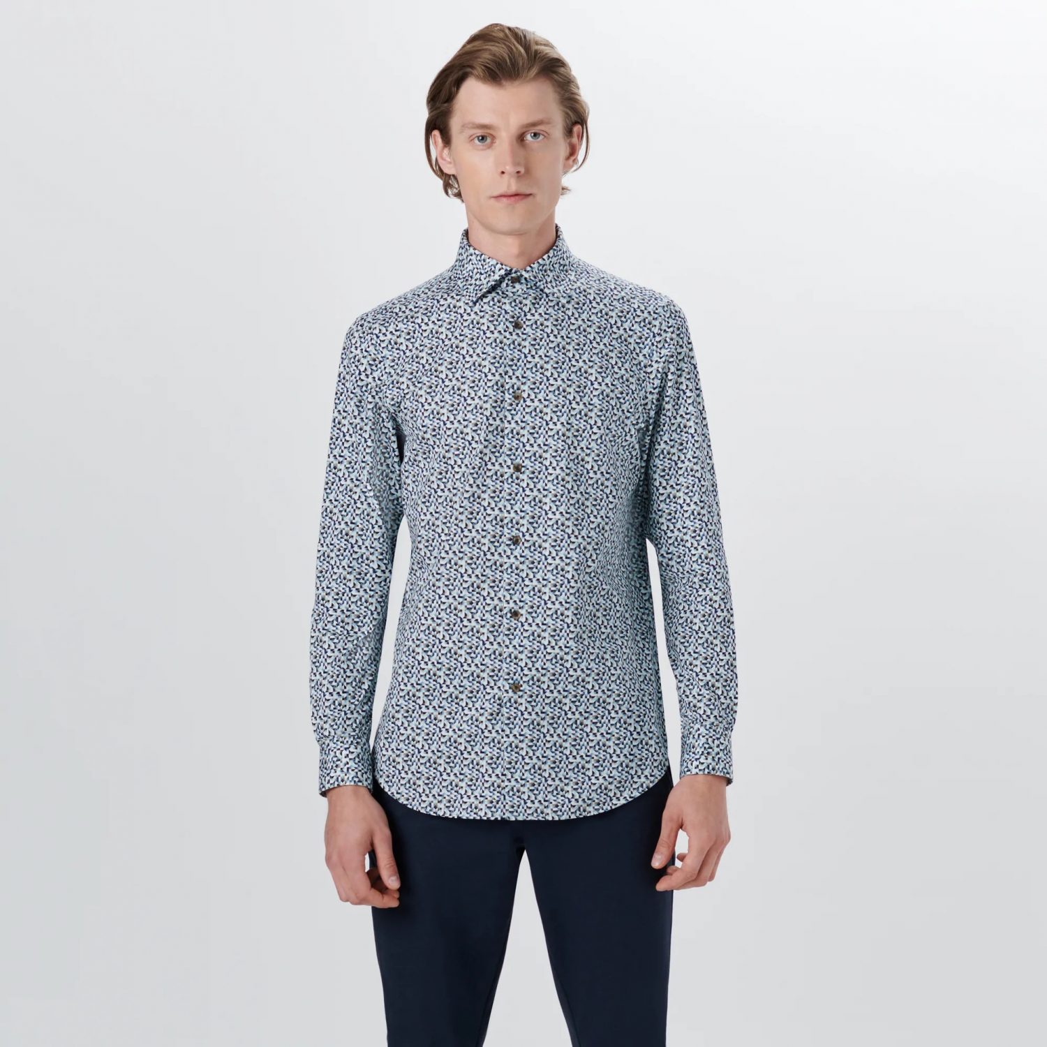 BUGATCHI: Chemise en tricot élastique Teal Geo