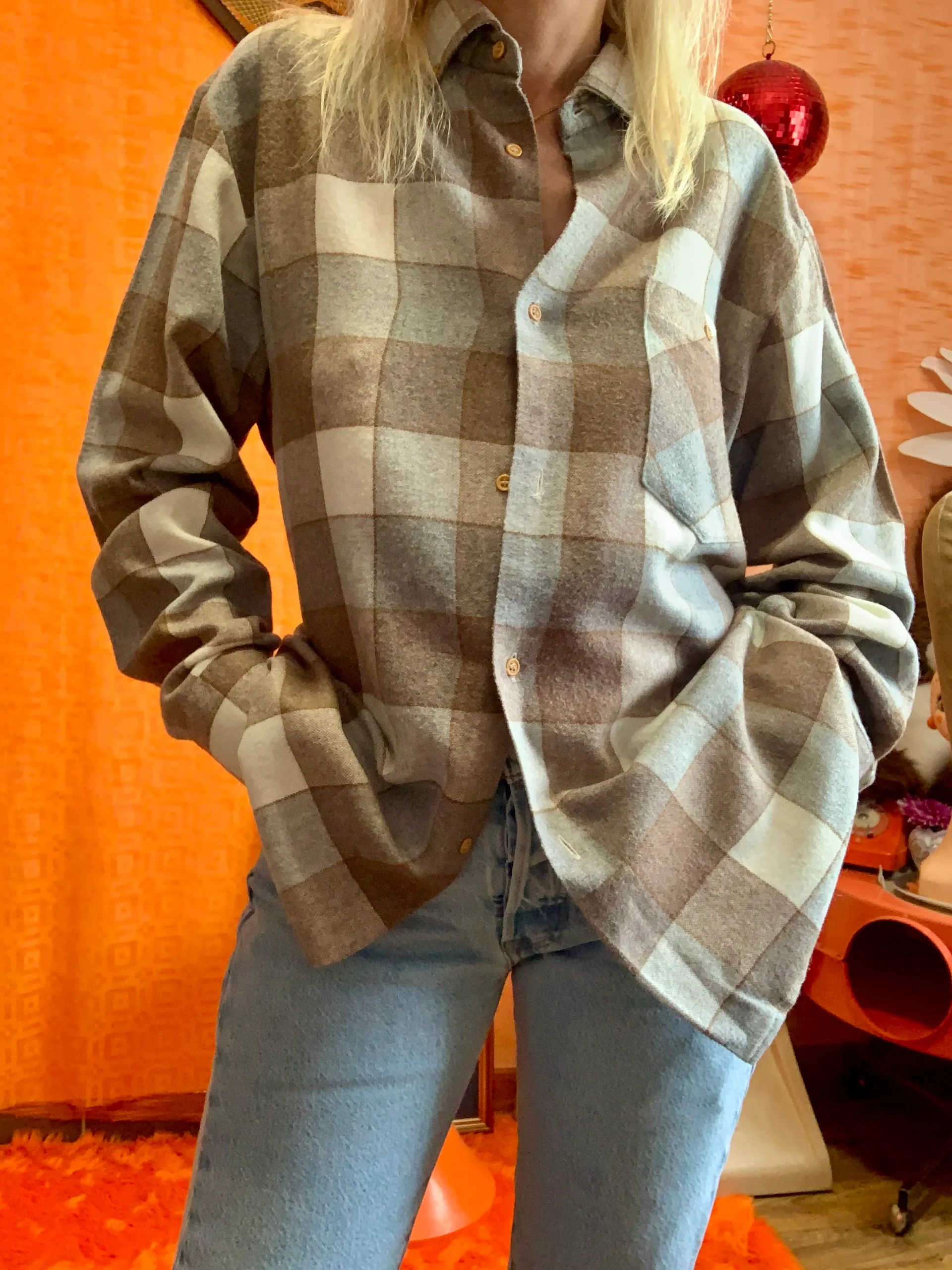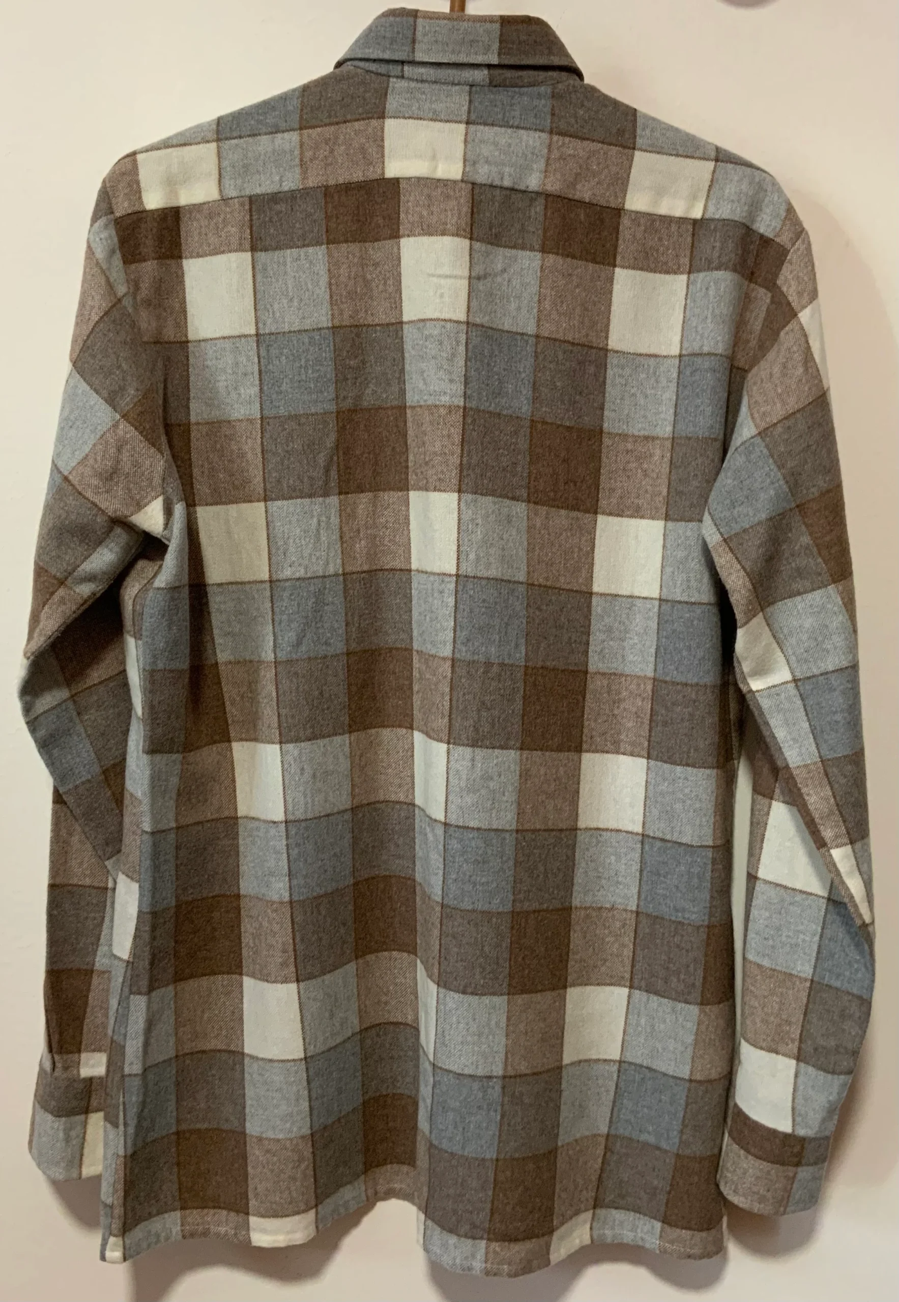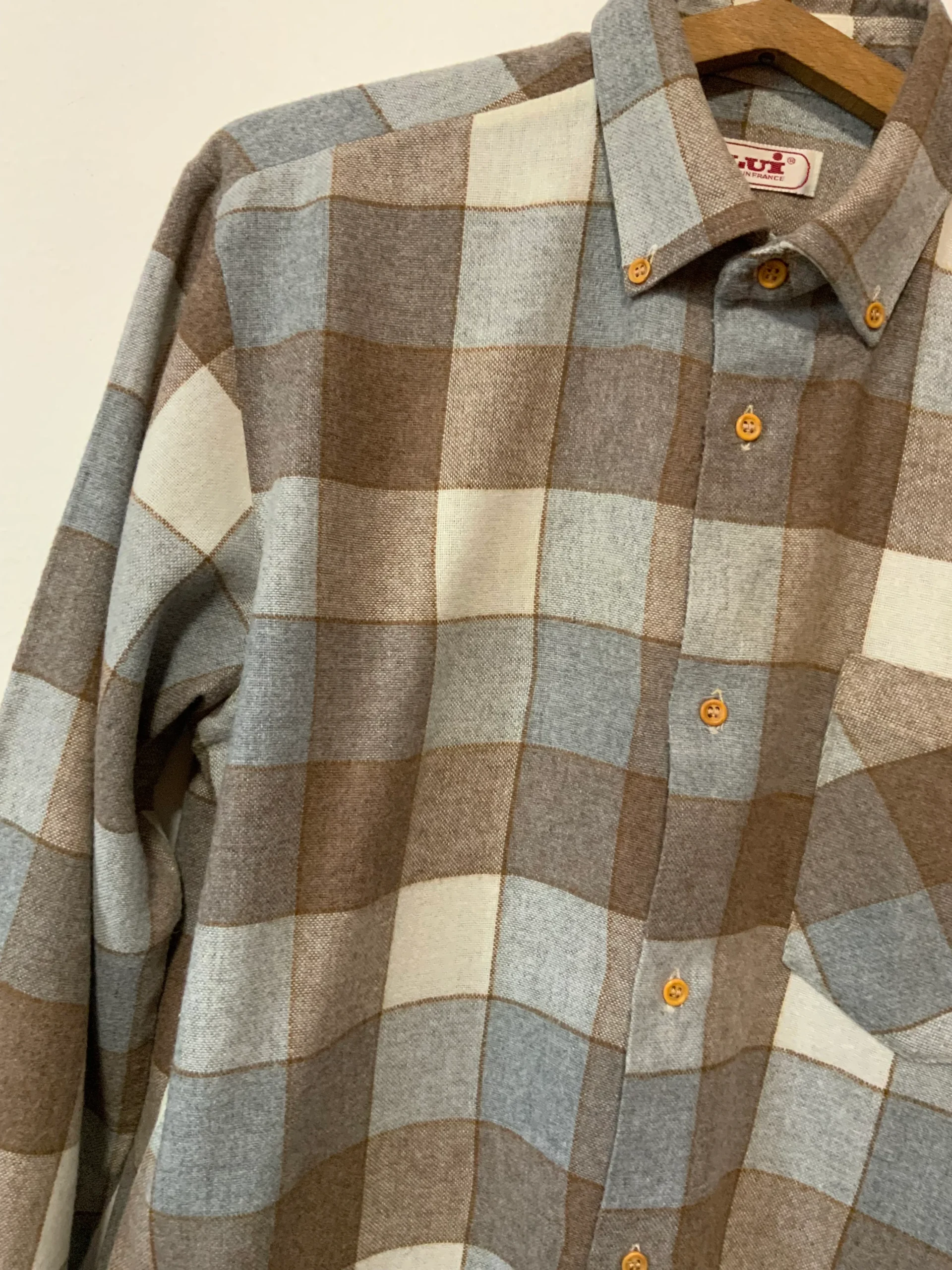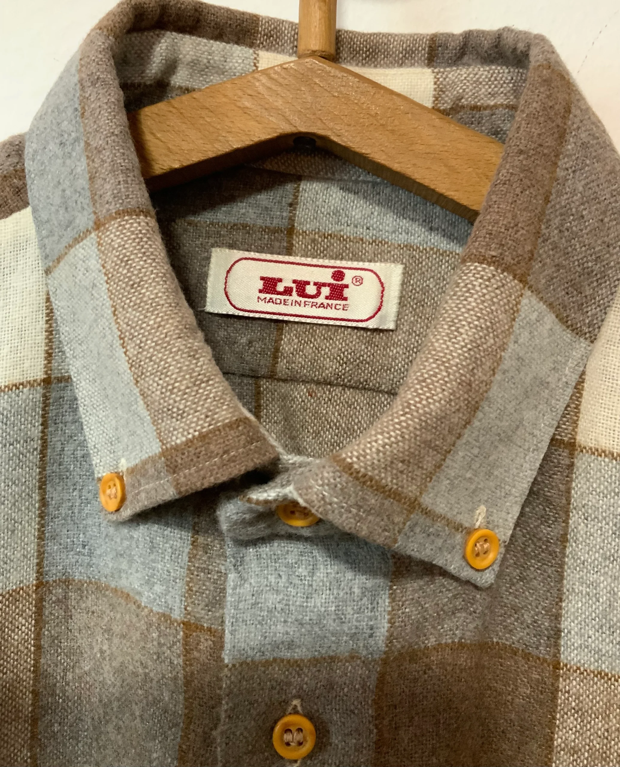 Ravissante chemise chic vintage 1980 Marque Lui Fabriquée en France – Neuve DeadStock 1980 jamais portée – Tons élégants beige marron gris.