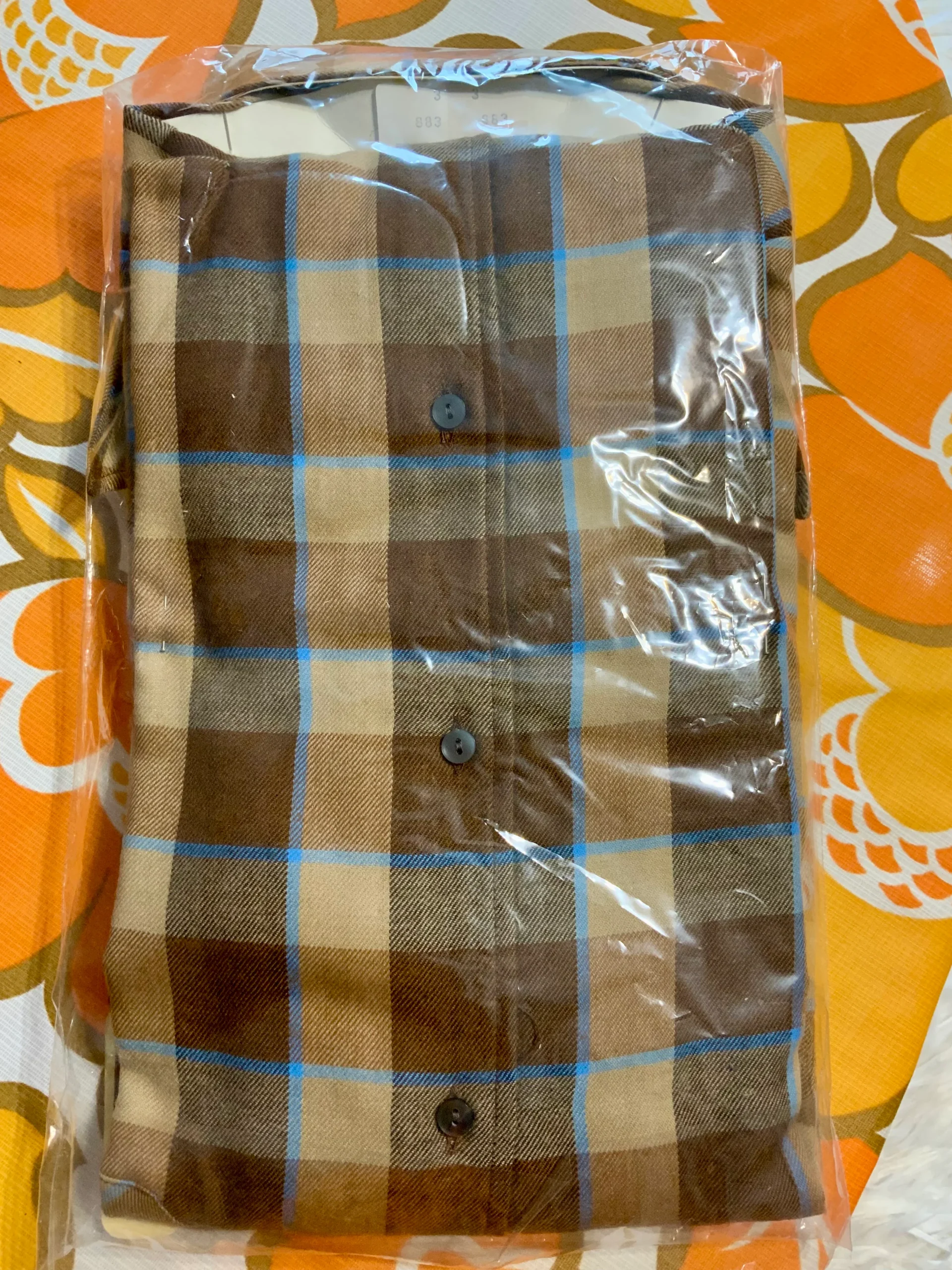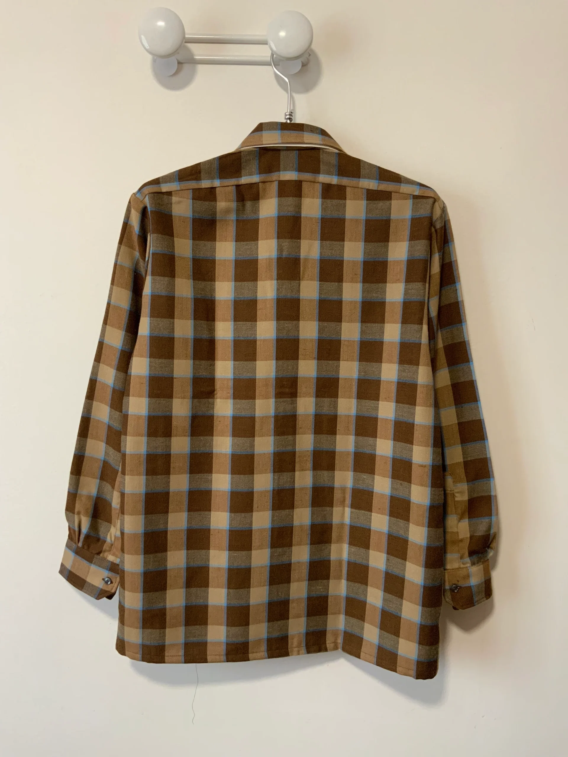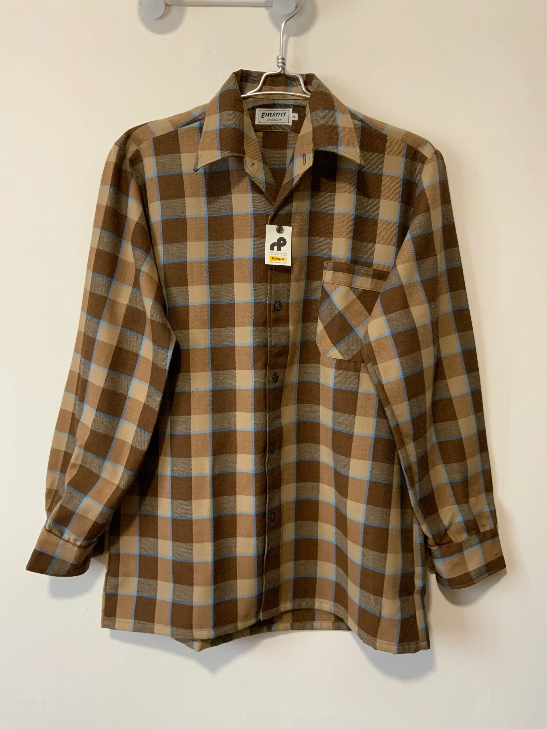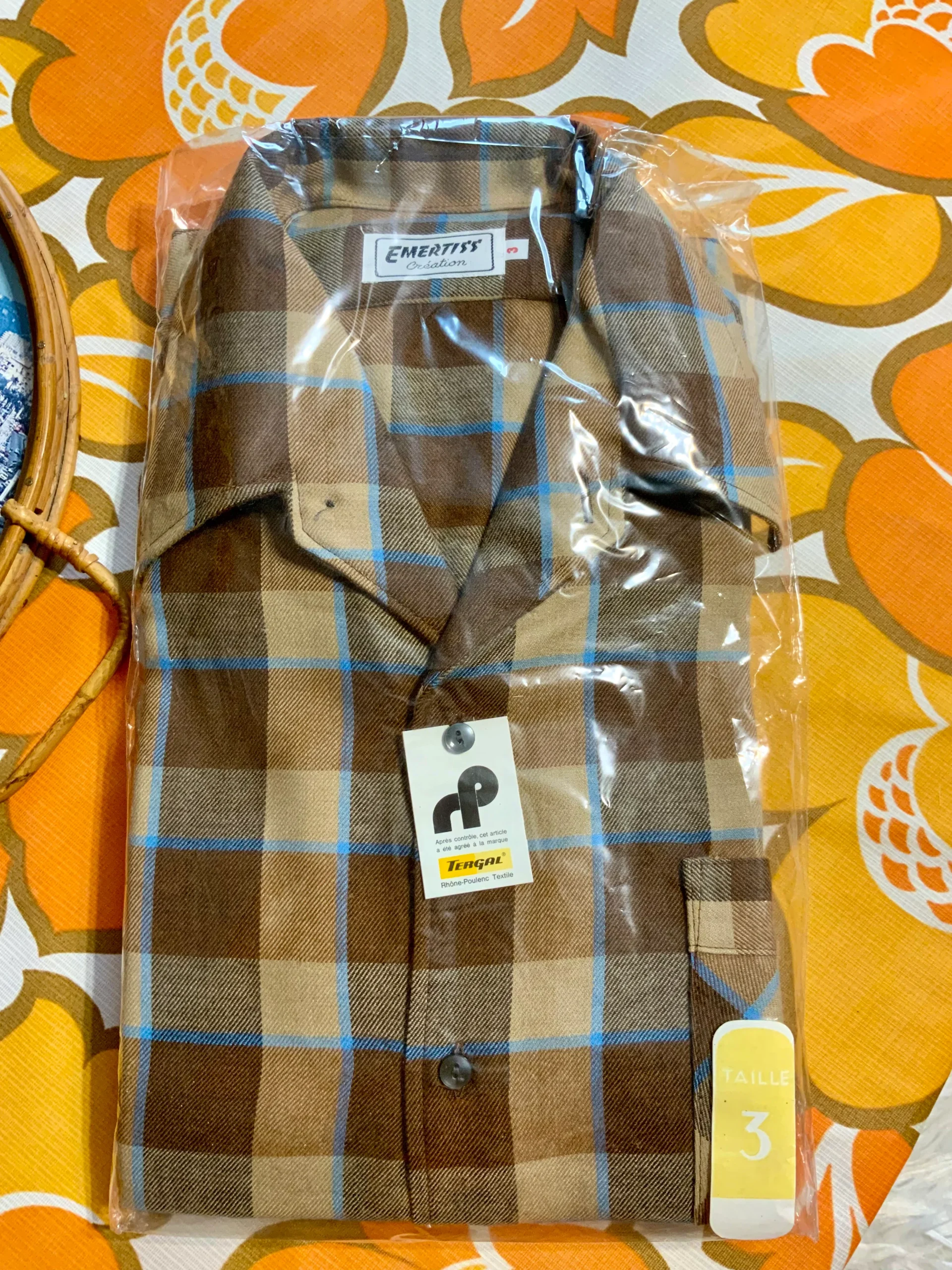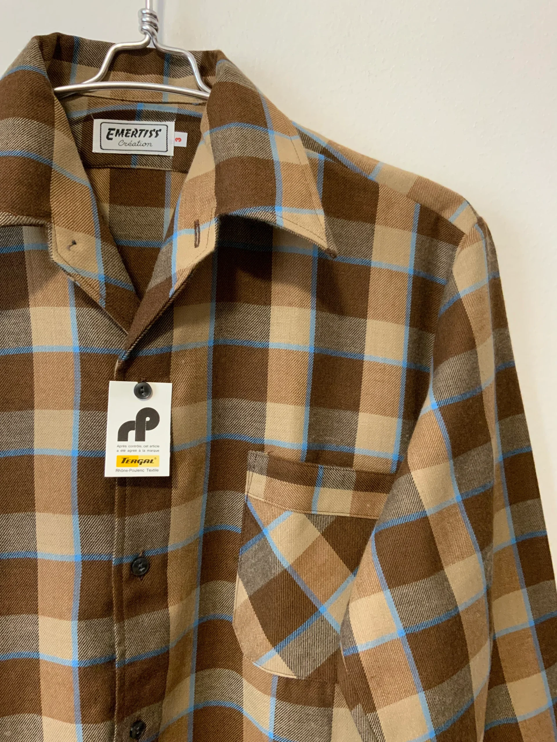 Chemise à carreaux Vintage 1980 Deadstock Tergal Made in France Création Emertiss –