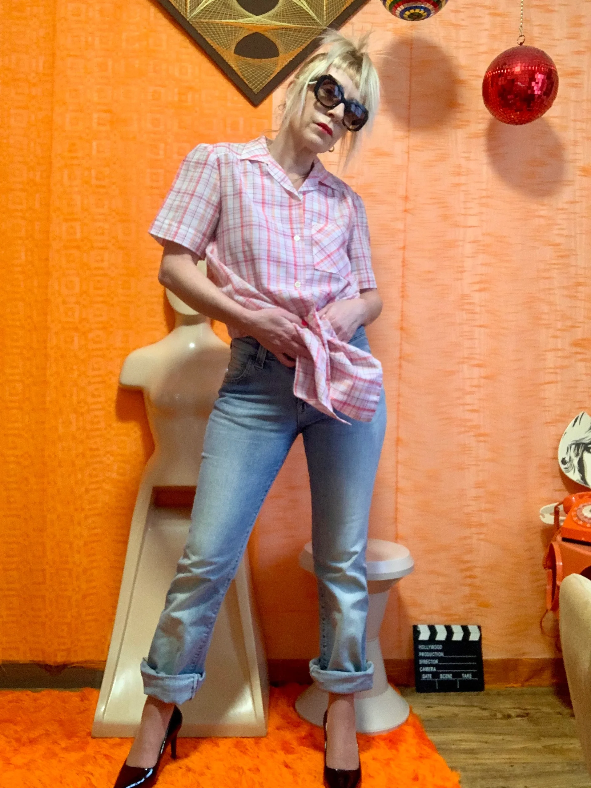 Chemise à Carreaux roses Vintage 1980 Edelweiss France – Epaules plissées – En excellent état.