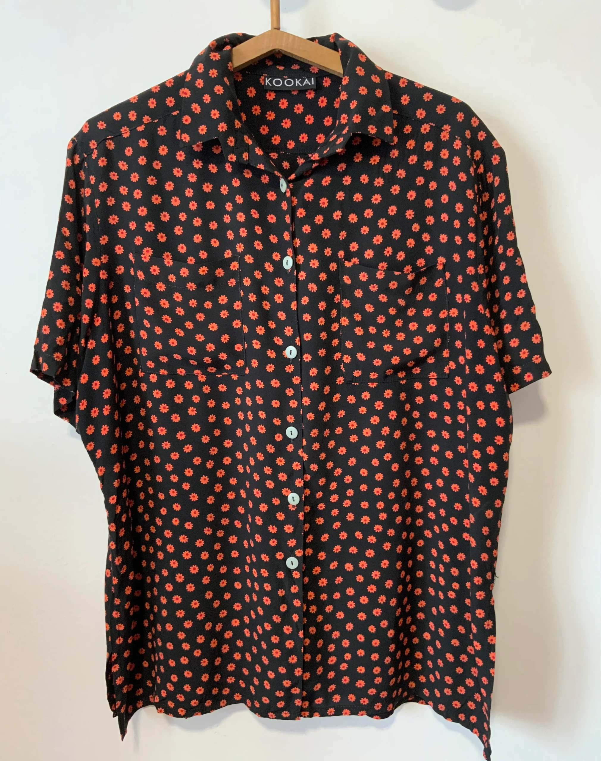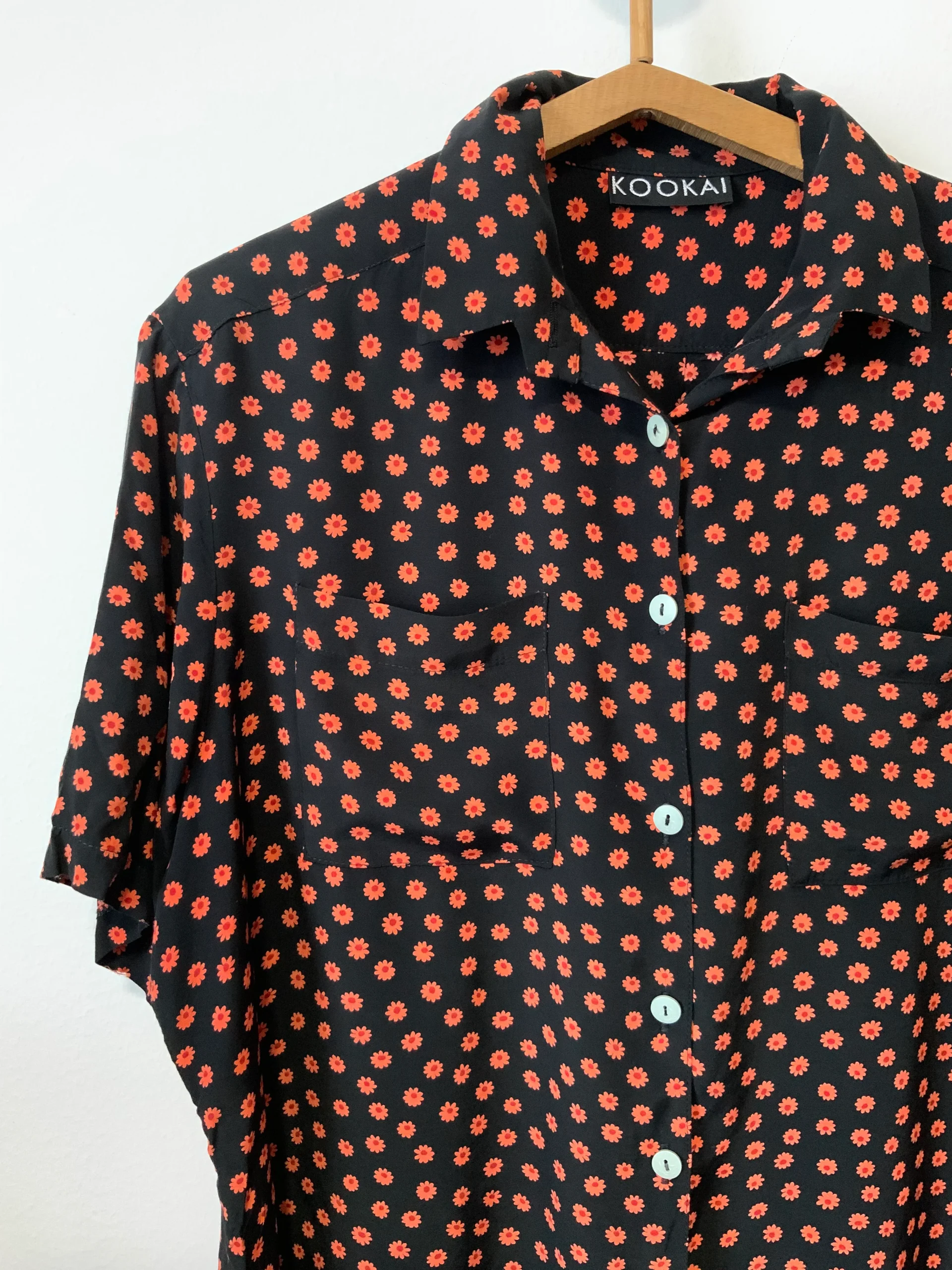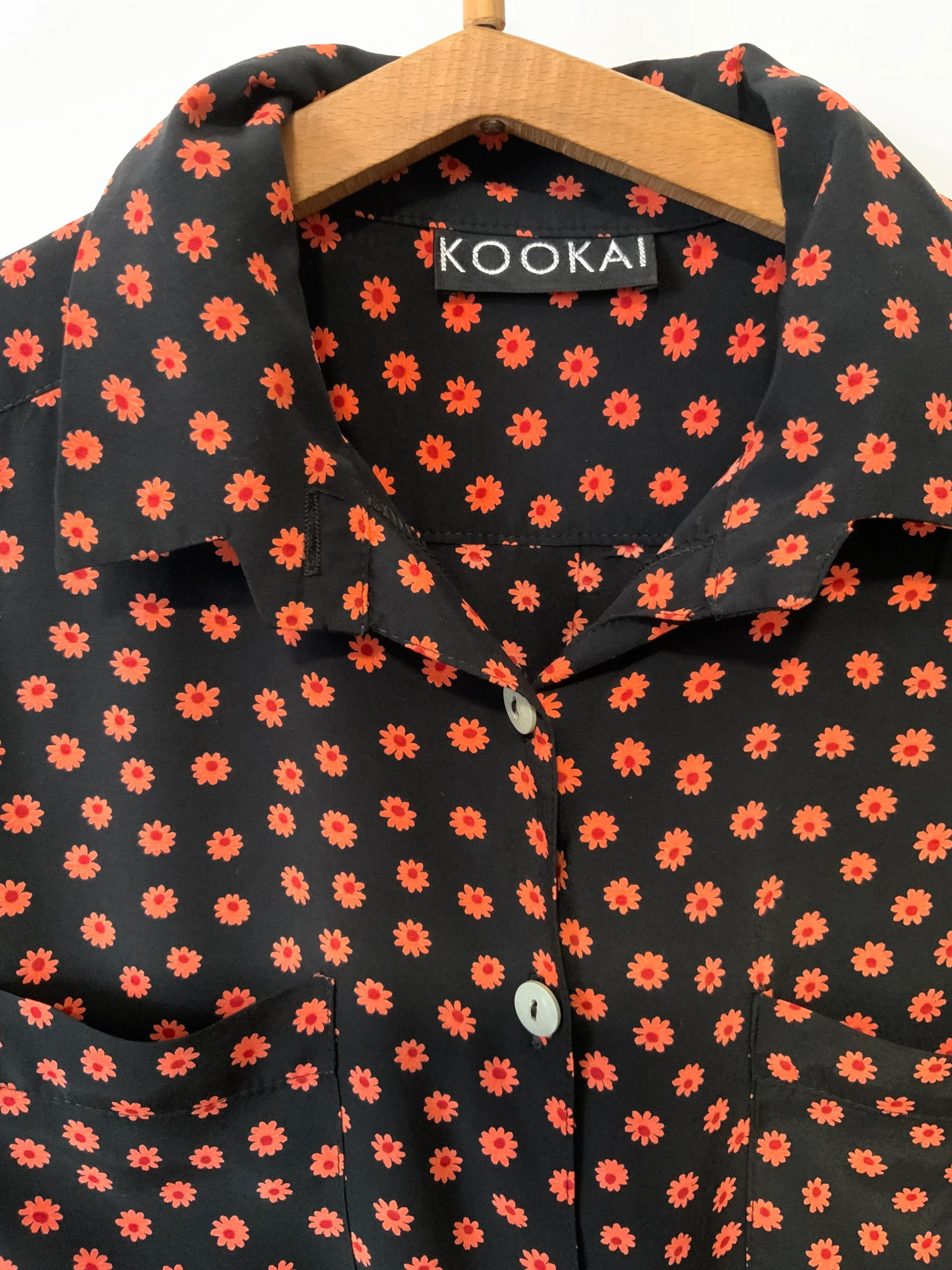 Chemise à fleurs oranges sur fond noir Marqué Kookai 1990 Vintage.