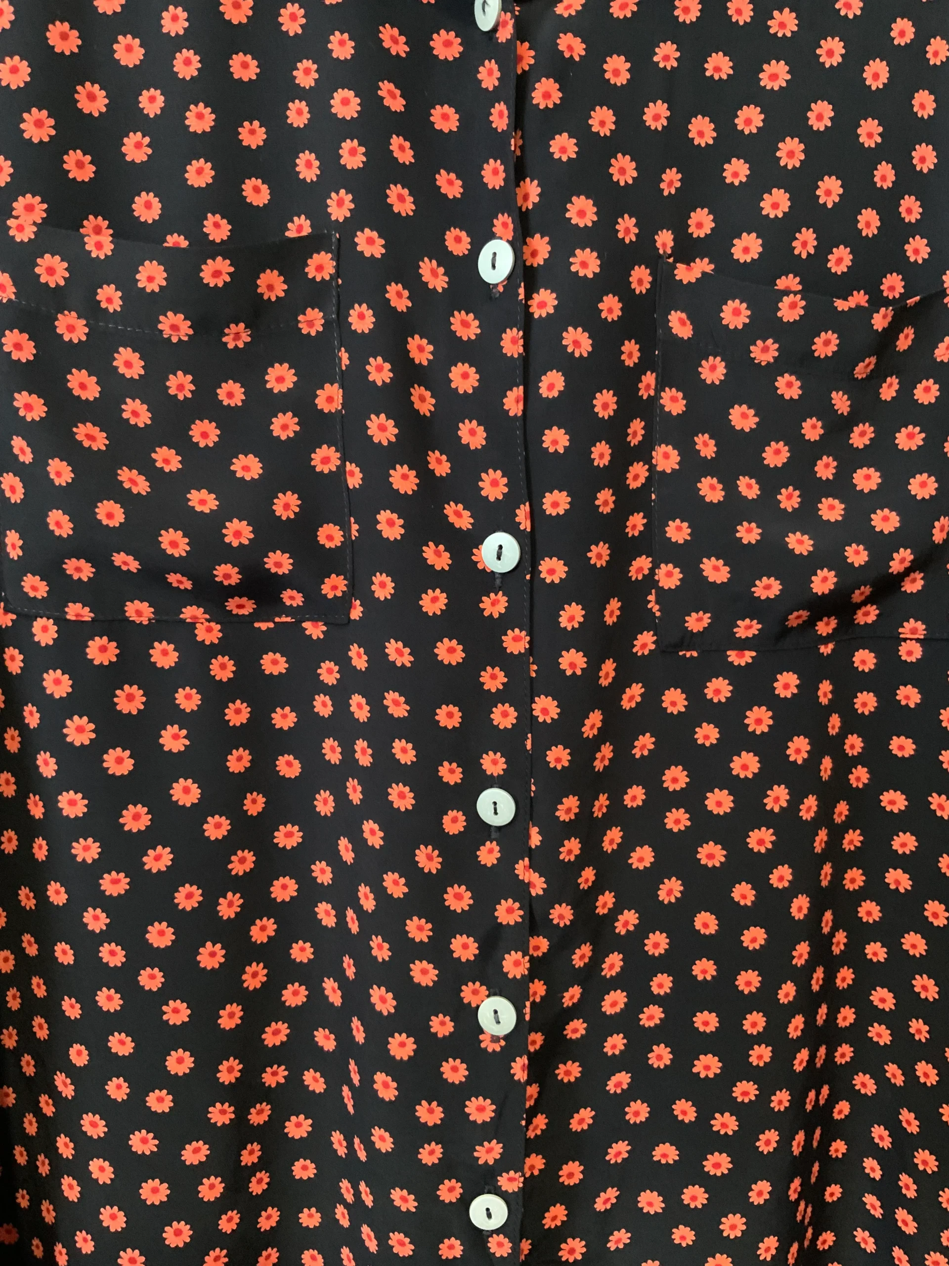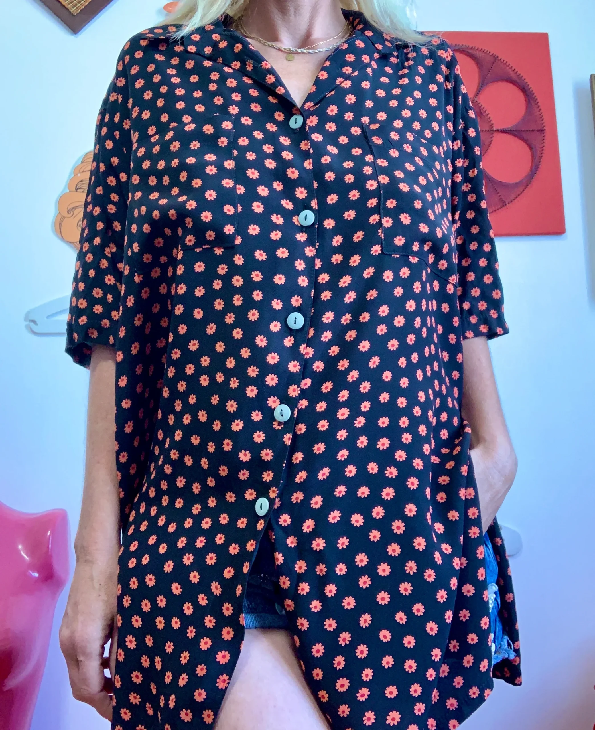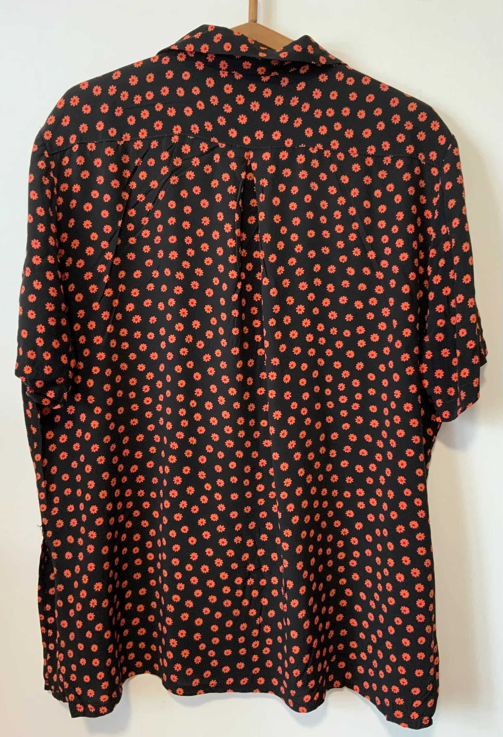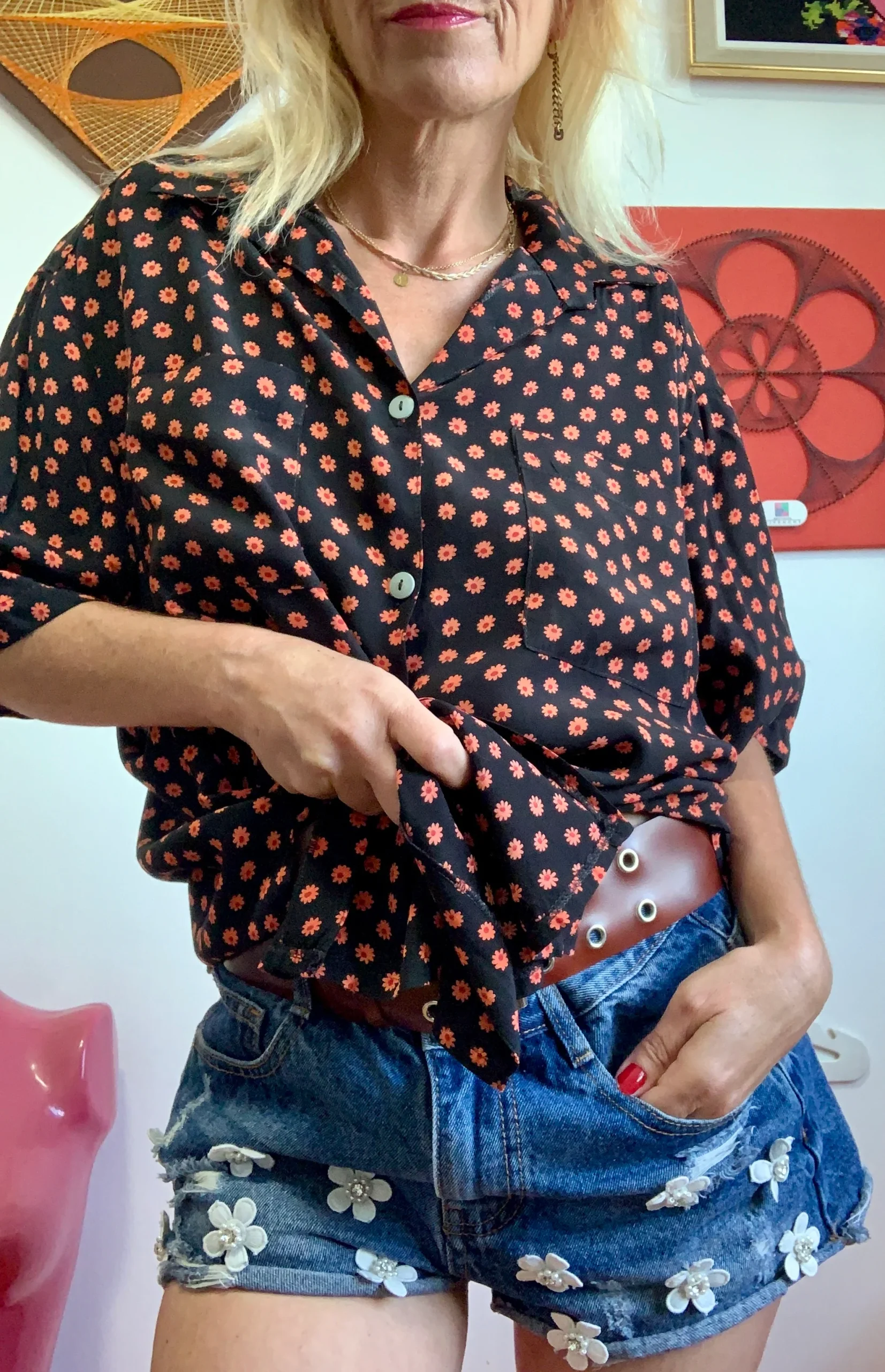 Chemise à fleurs oranges sur fond noir Marqué Kookai 1990 Vintage.