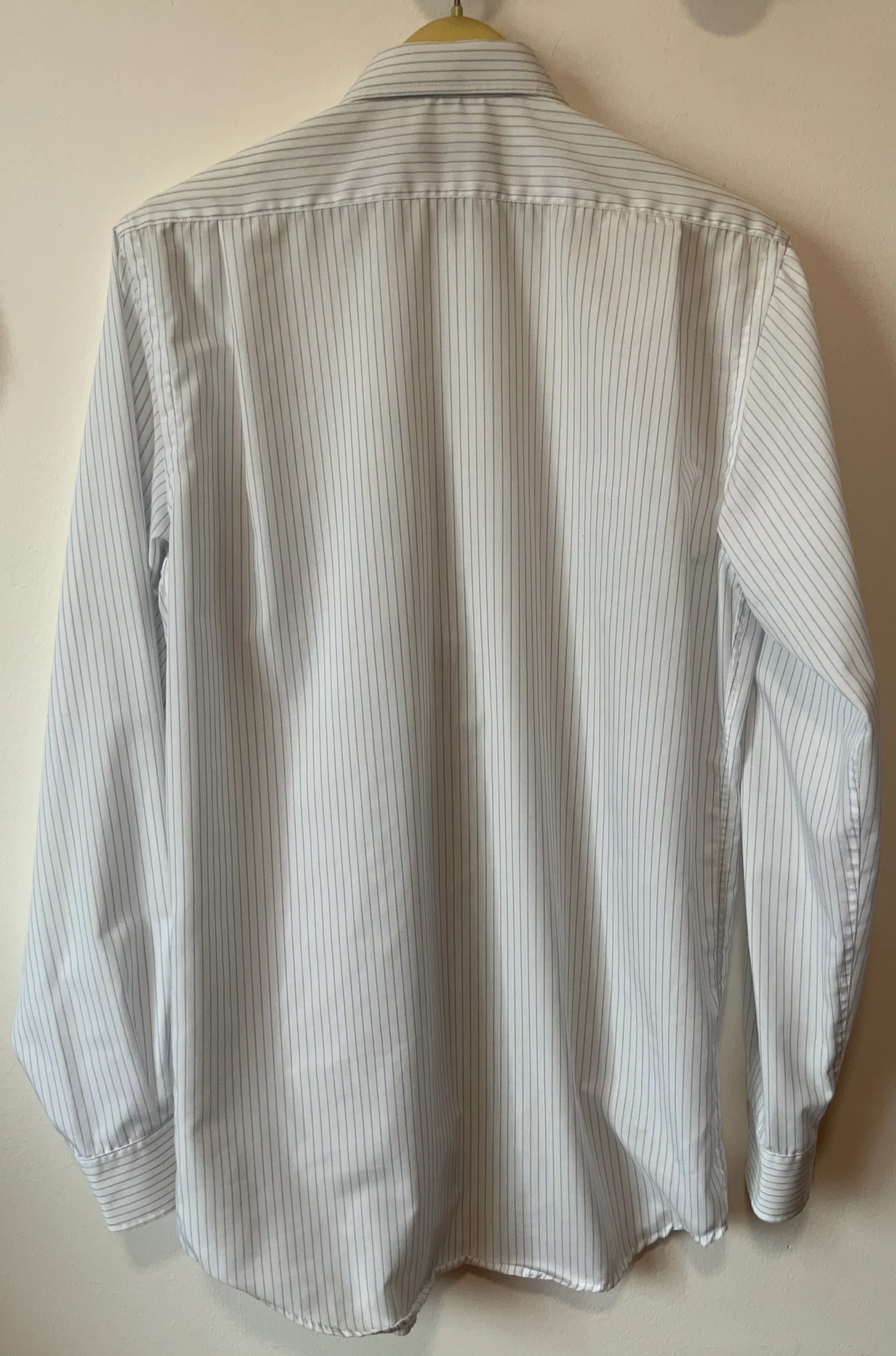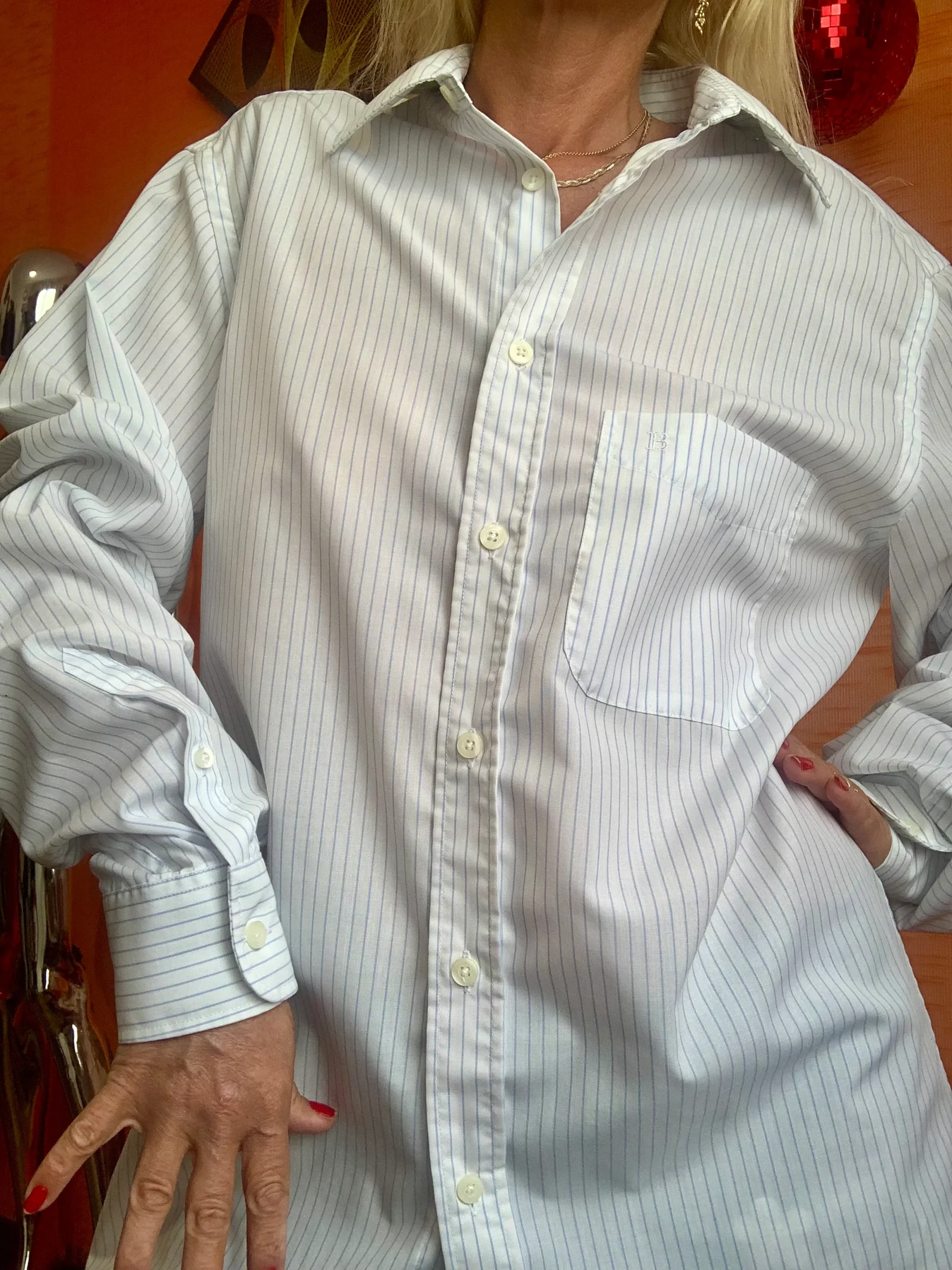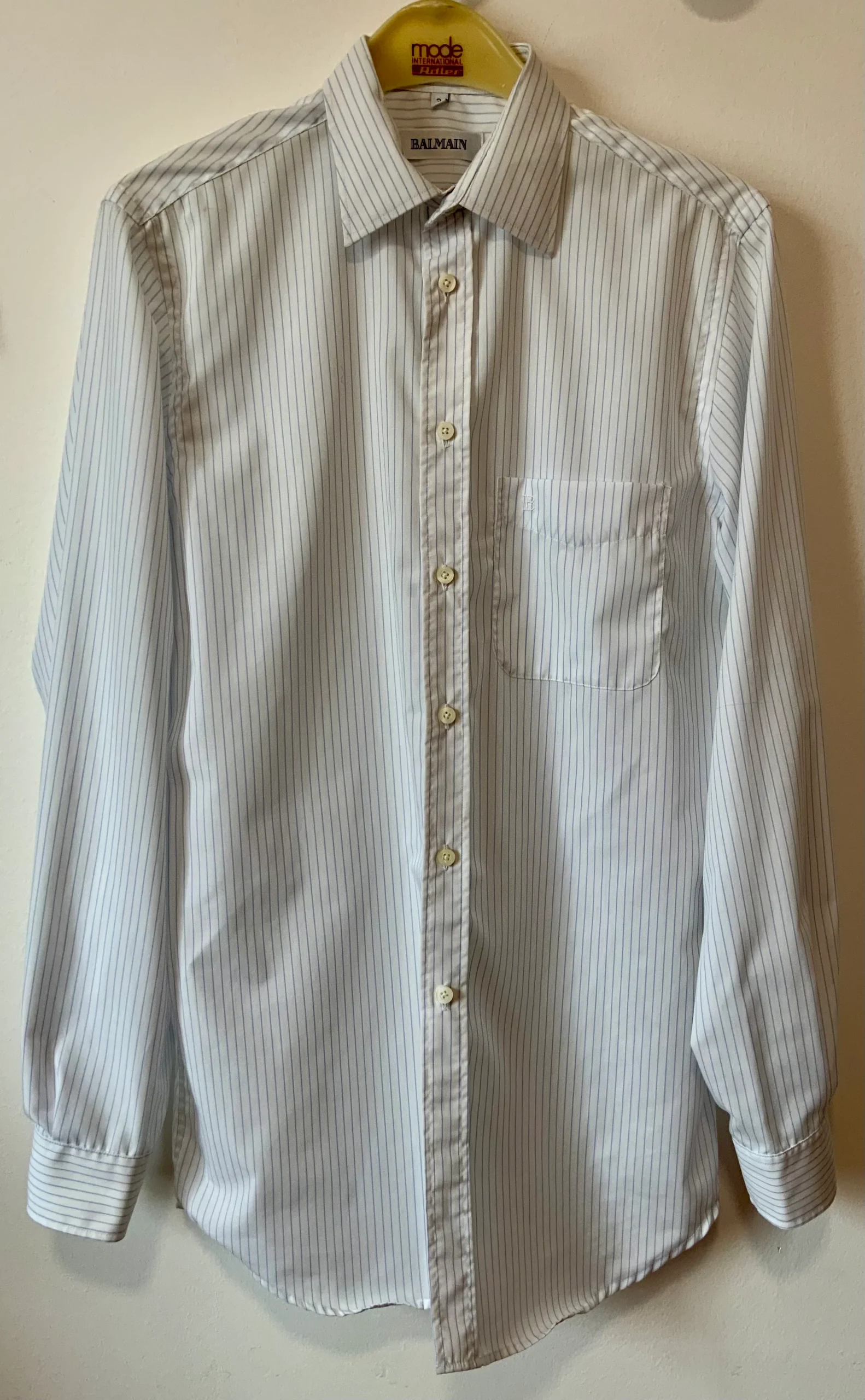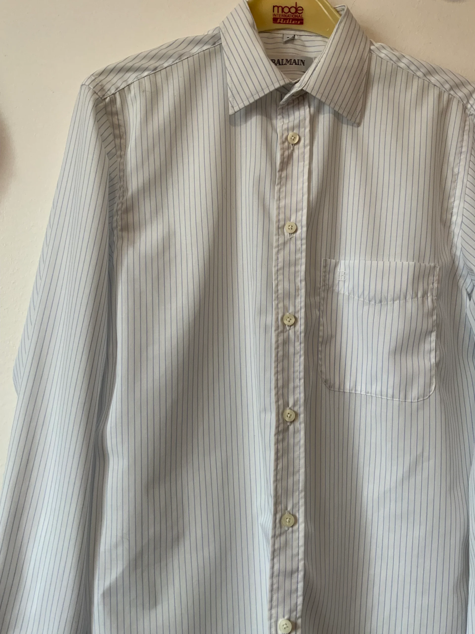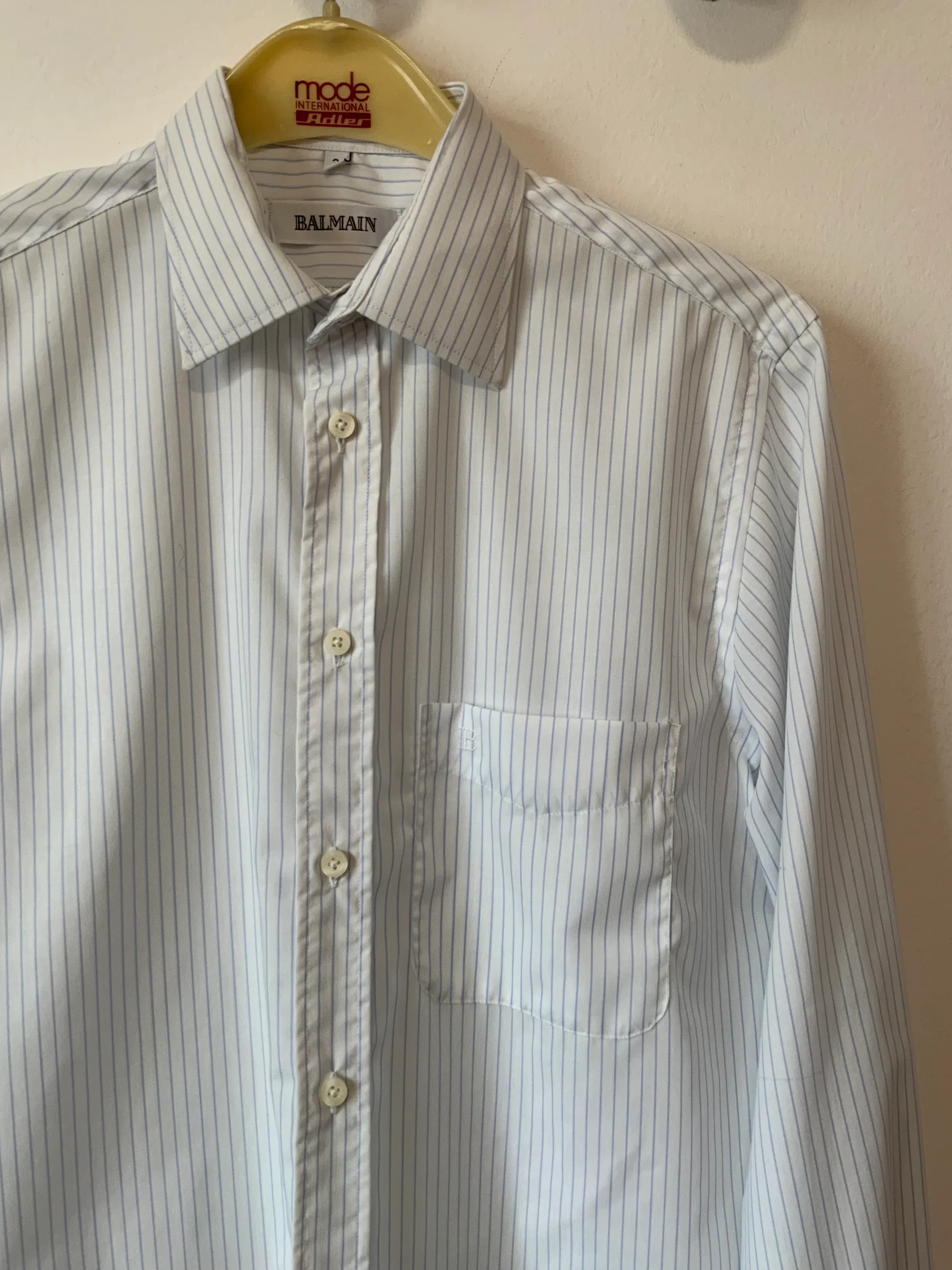 Chemise Mixte Pierre Balmain – A rayures bleues claires sur fond blanc- 2000’s.