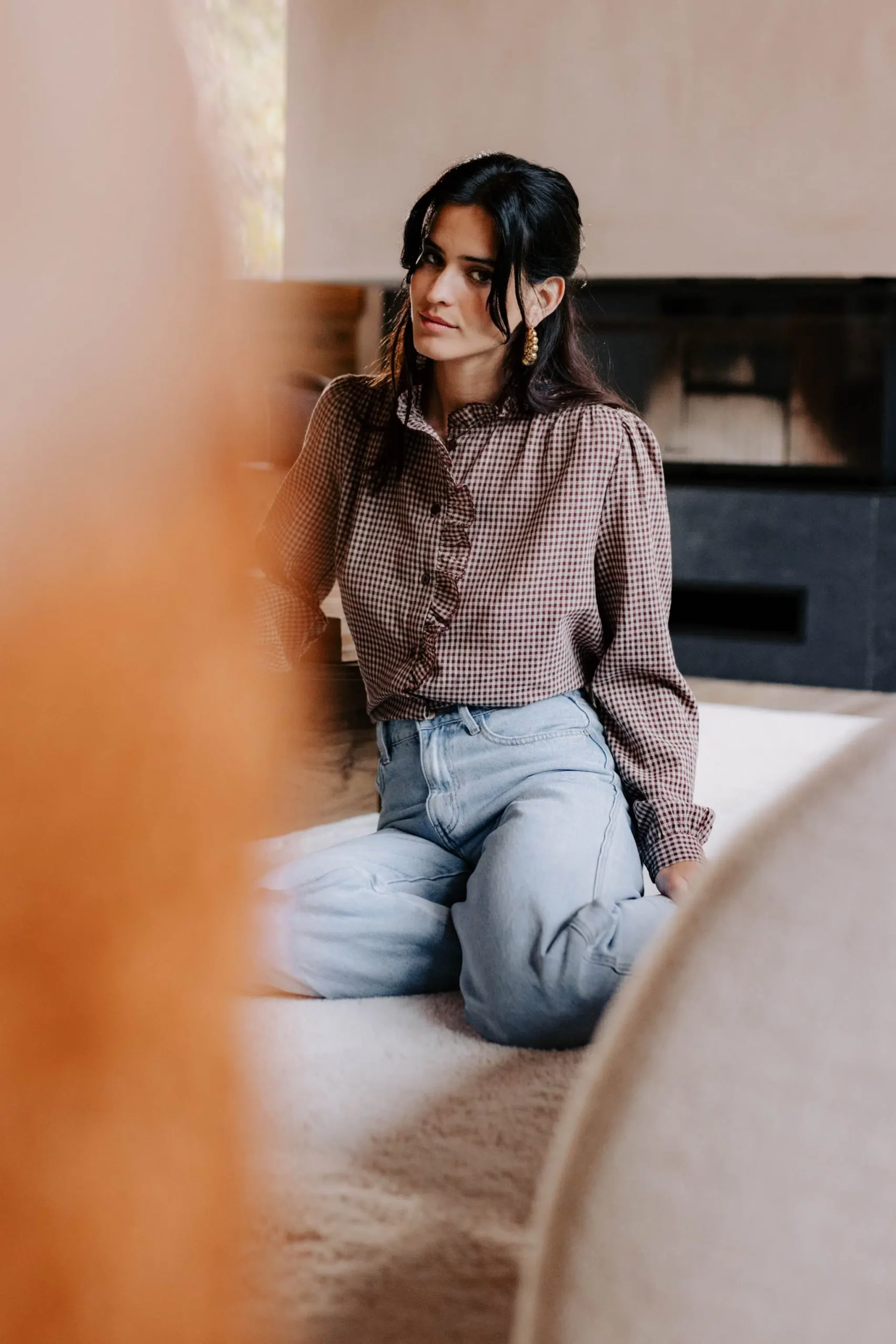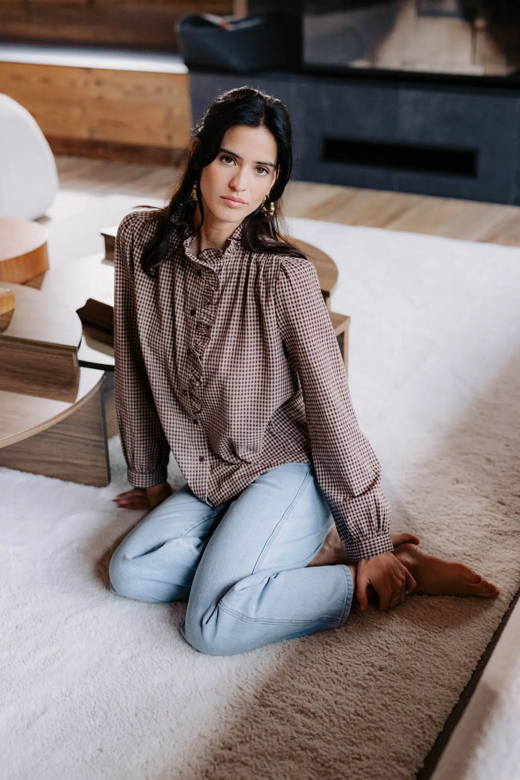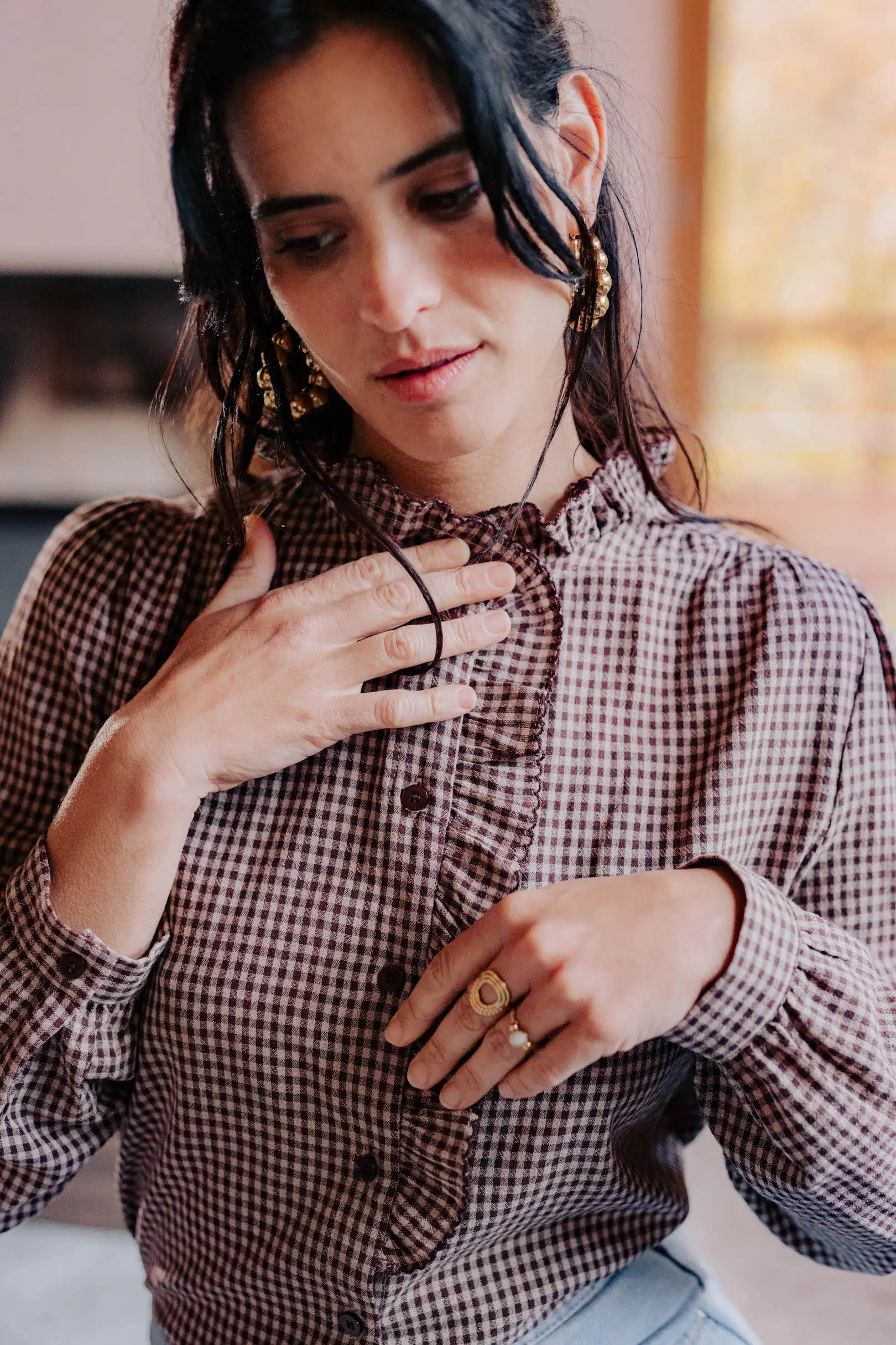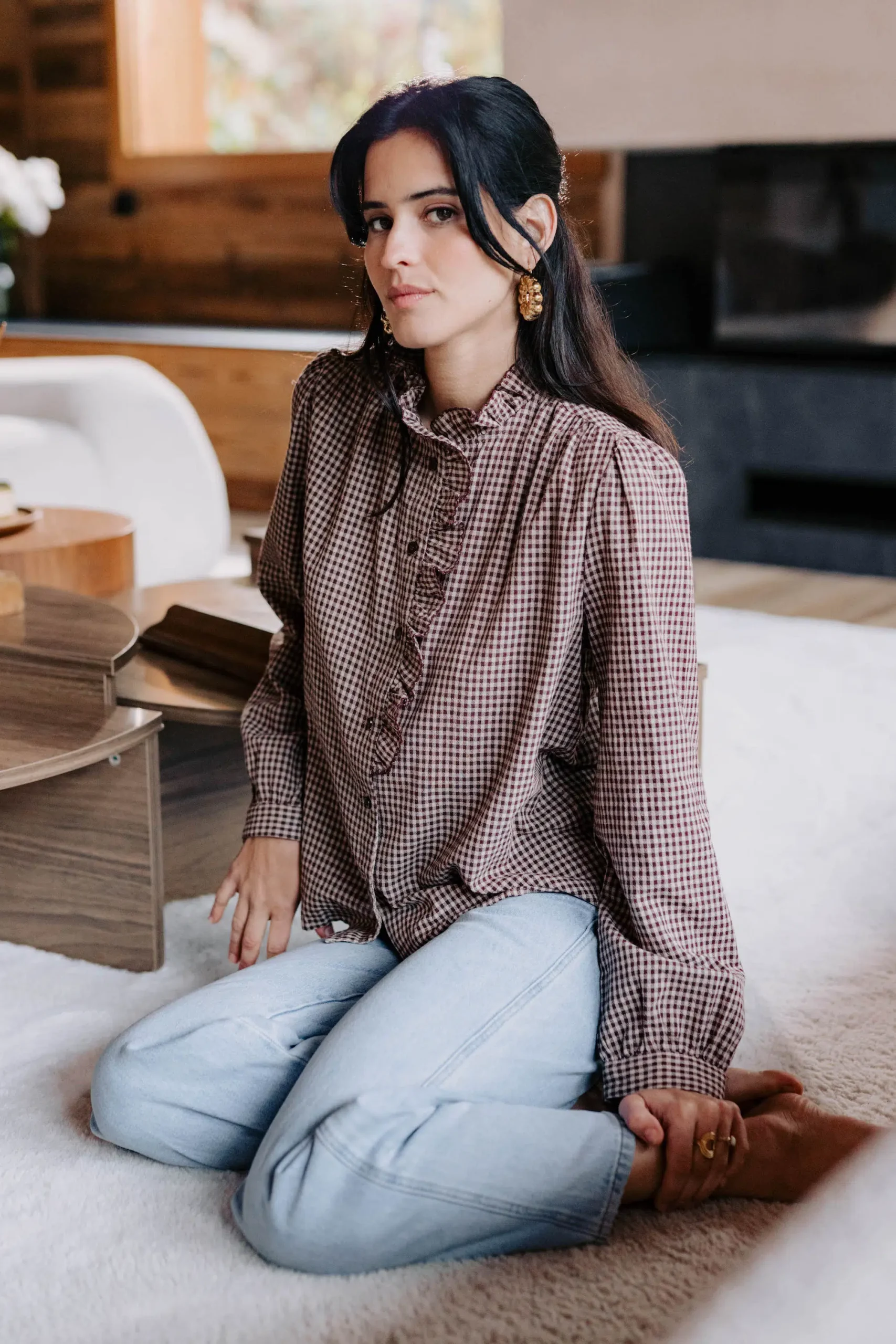– Chemise col montant à volant