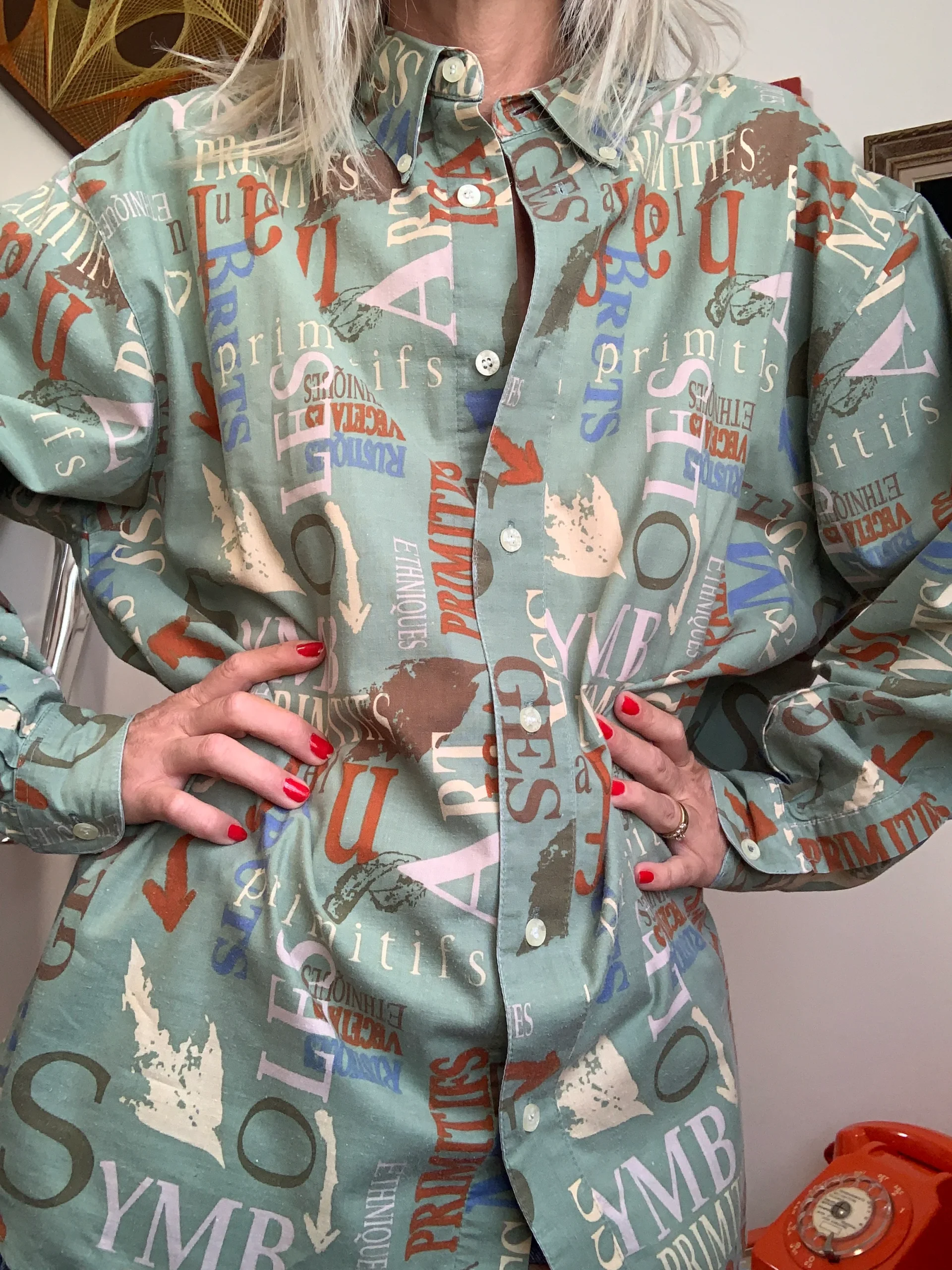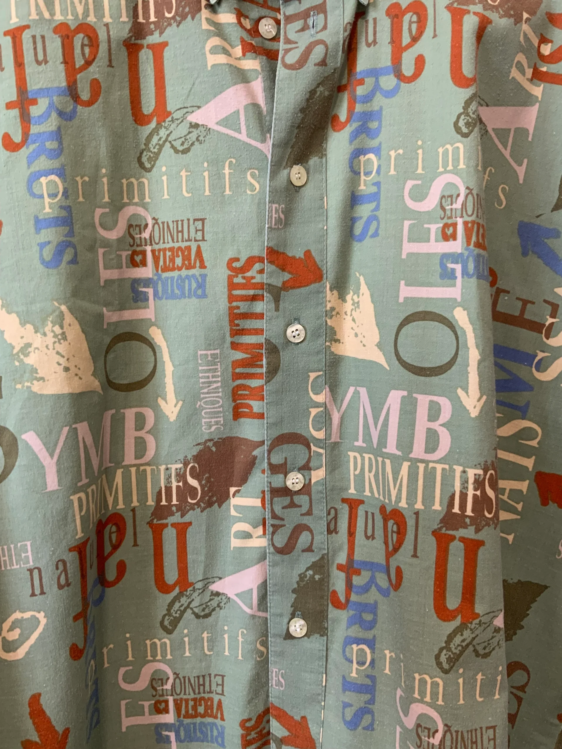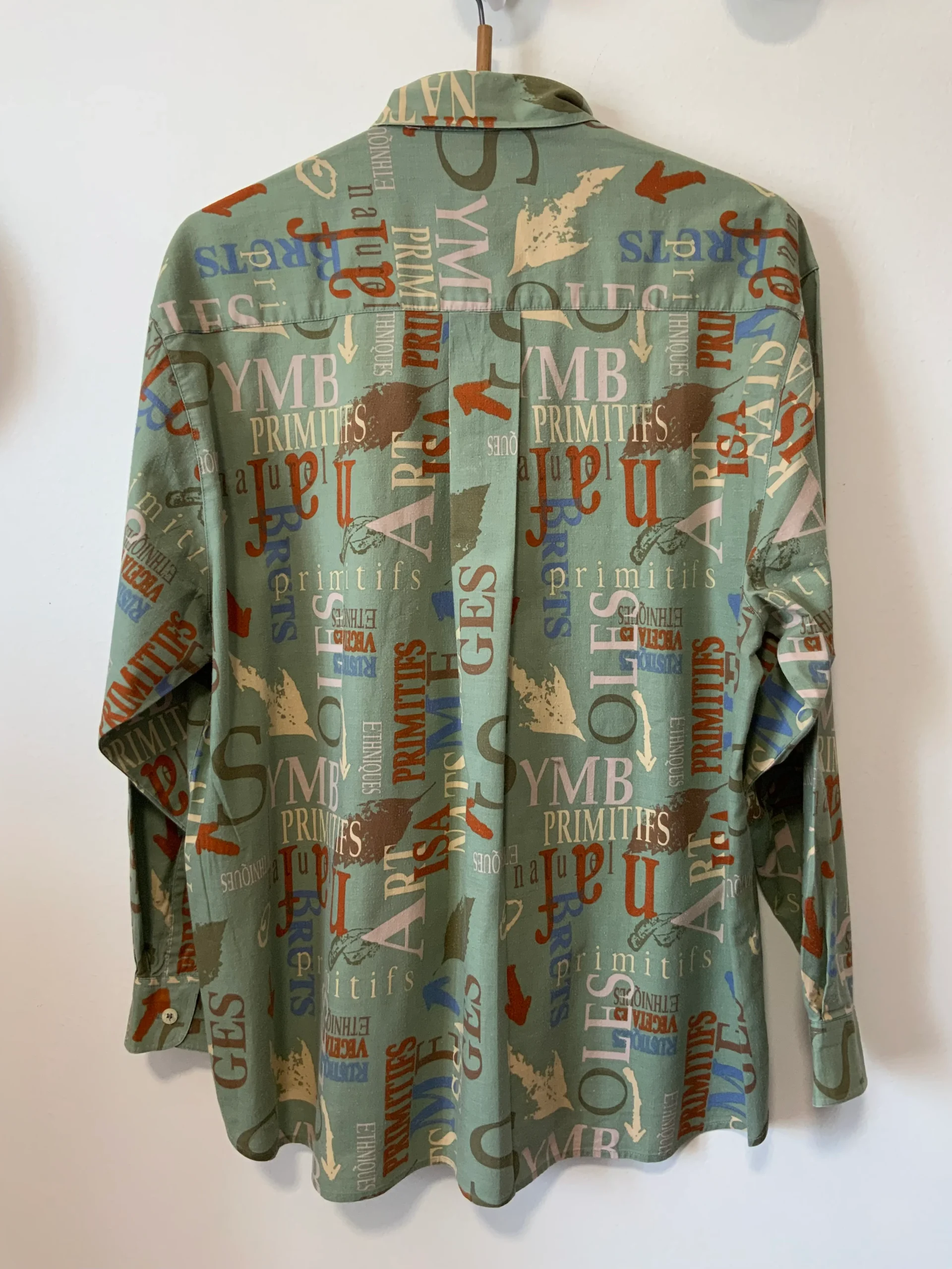 Chemise Naf Naf 1990 Kaki avec écritures Multicouleurs.