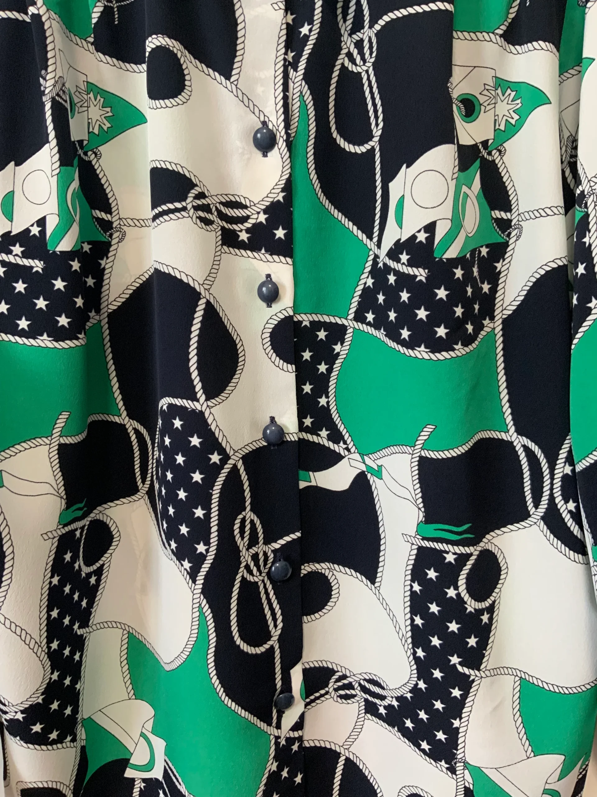Polyester Fluide vert et bleu marine, Excellent état.