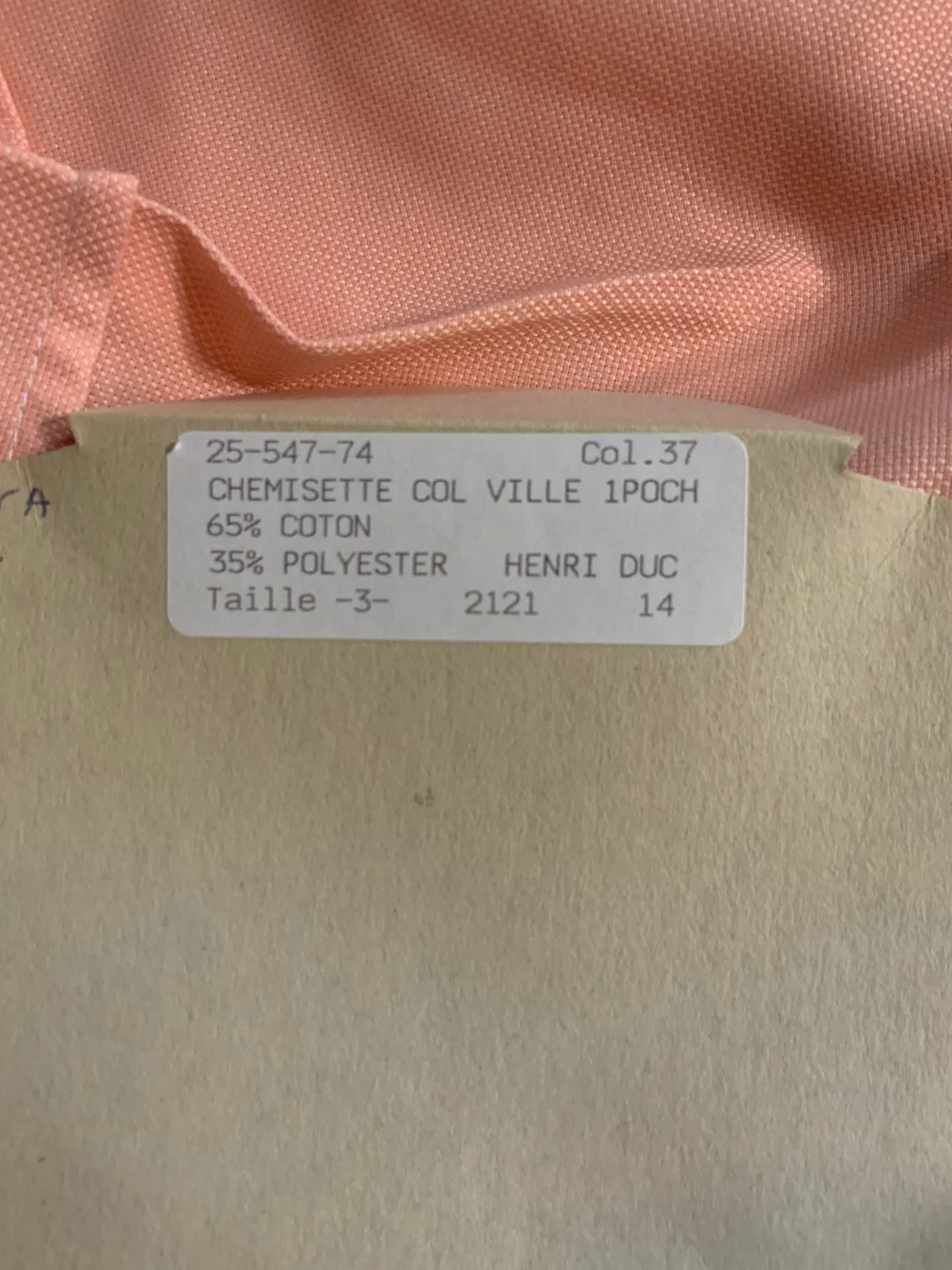 Soyez le premier à laisser votre avis sur “Chemisette couleur abricot Henri Duc Deadstock 1980”
