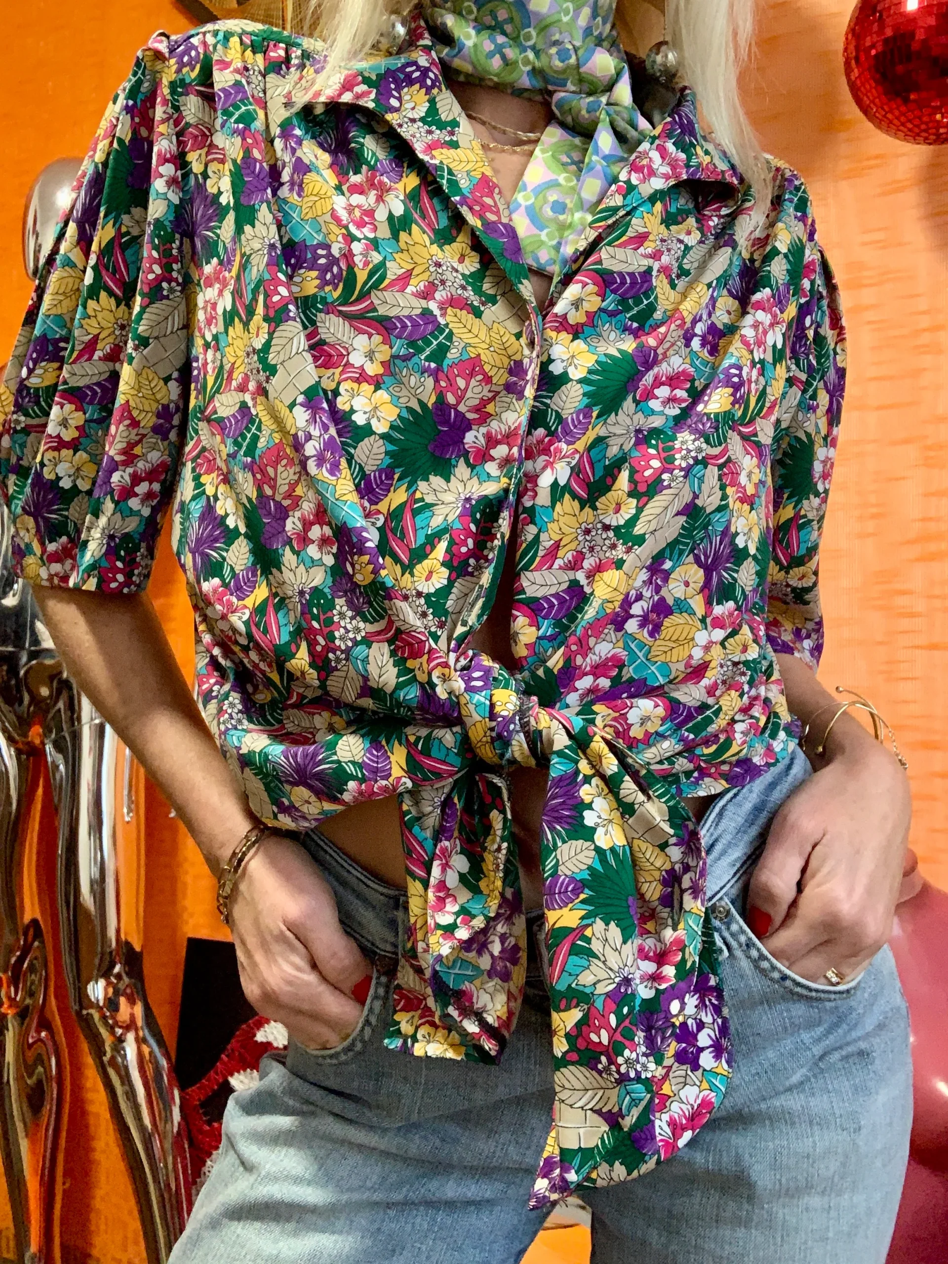 Ravissant chemisier à fleur de la marque Devernois France Vintage 1990-
