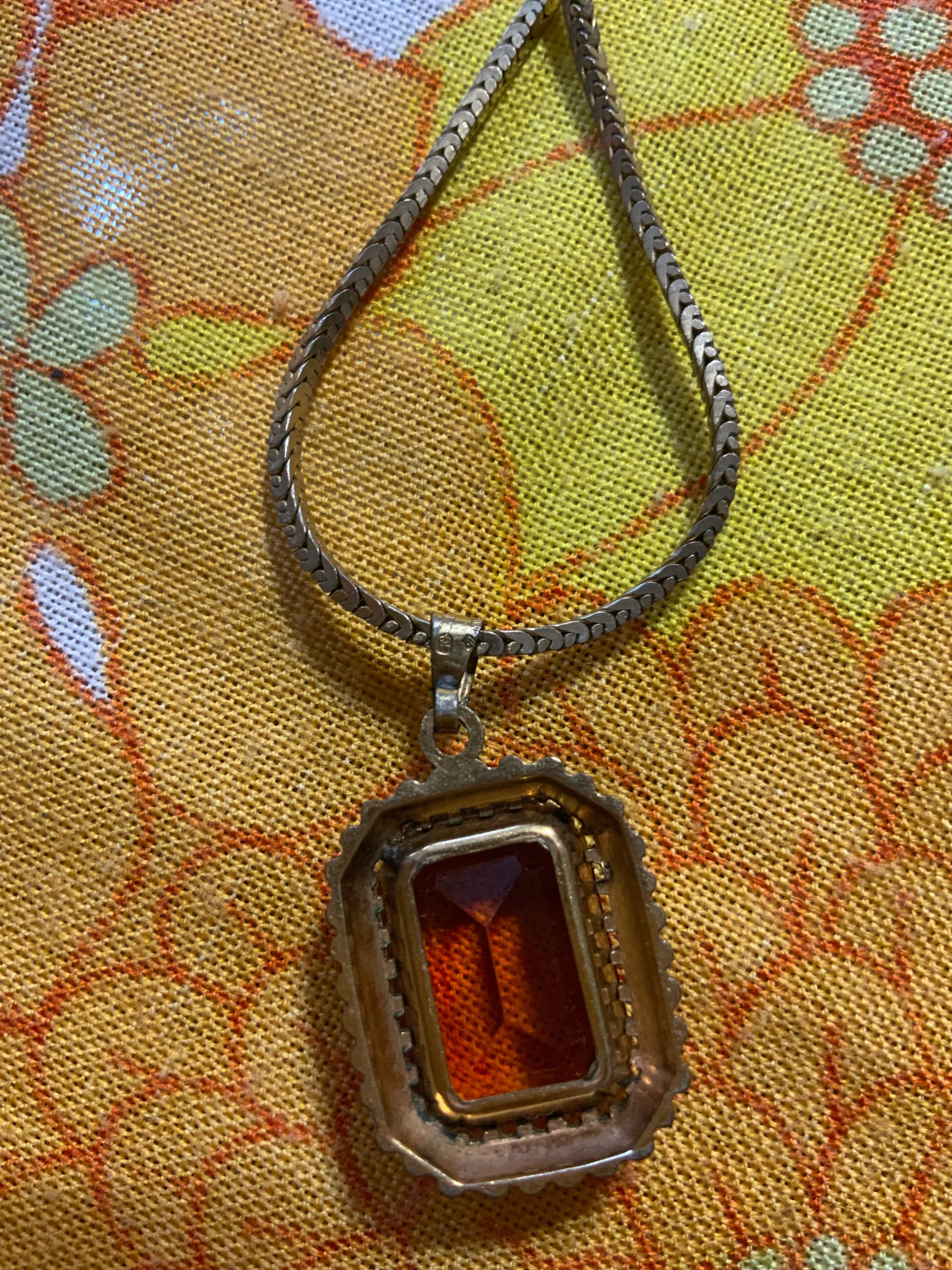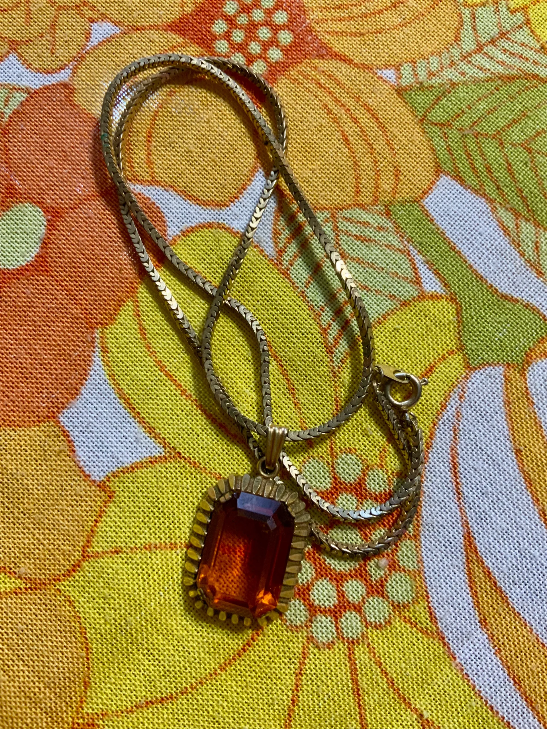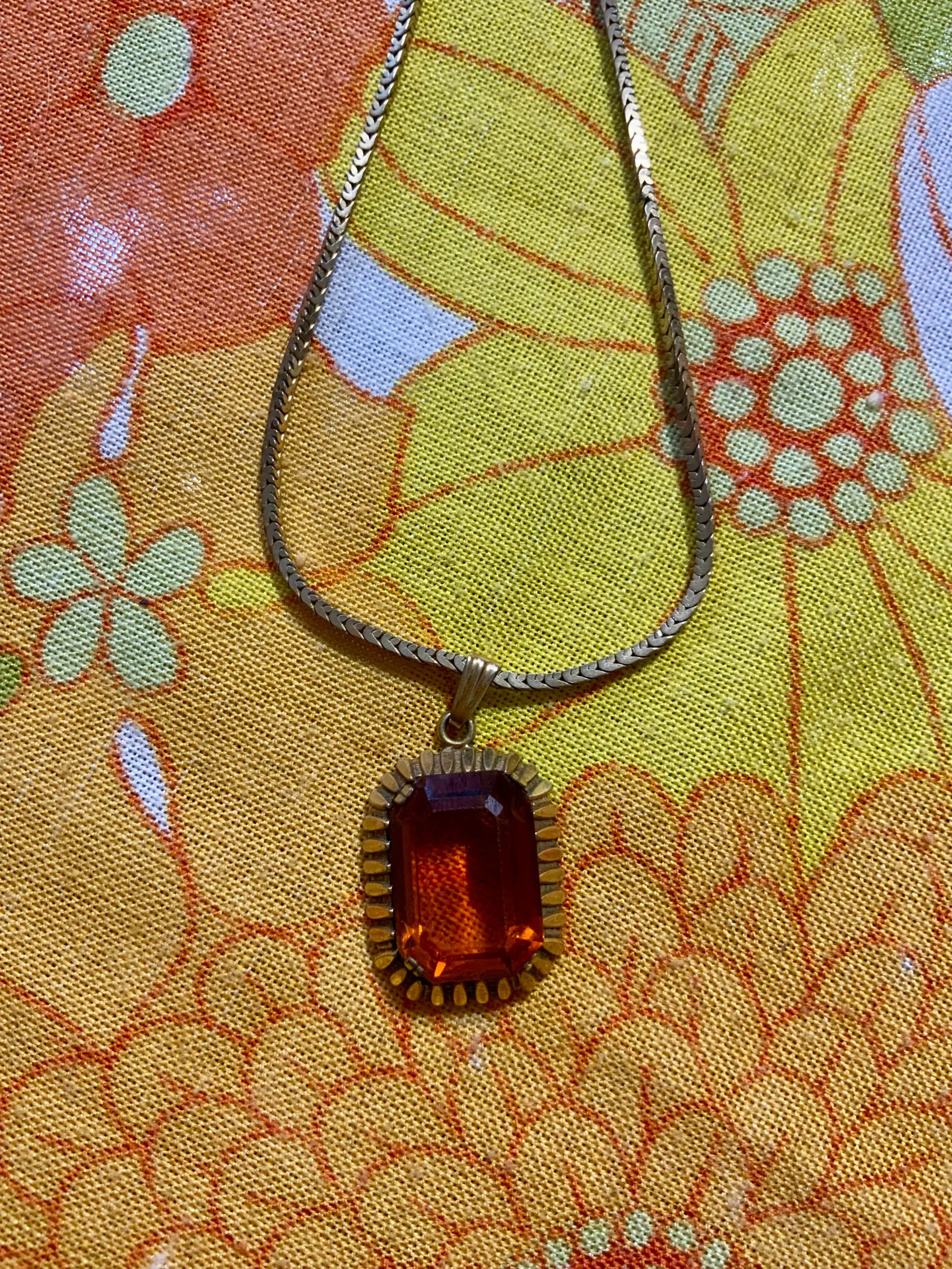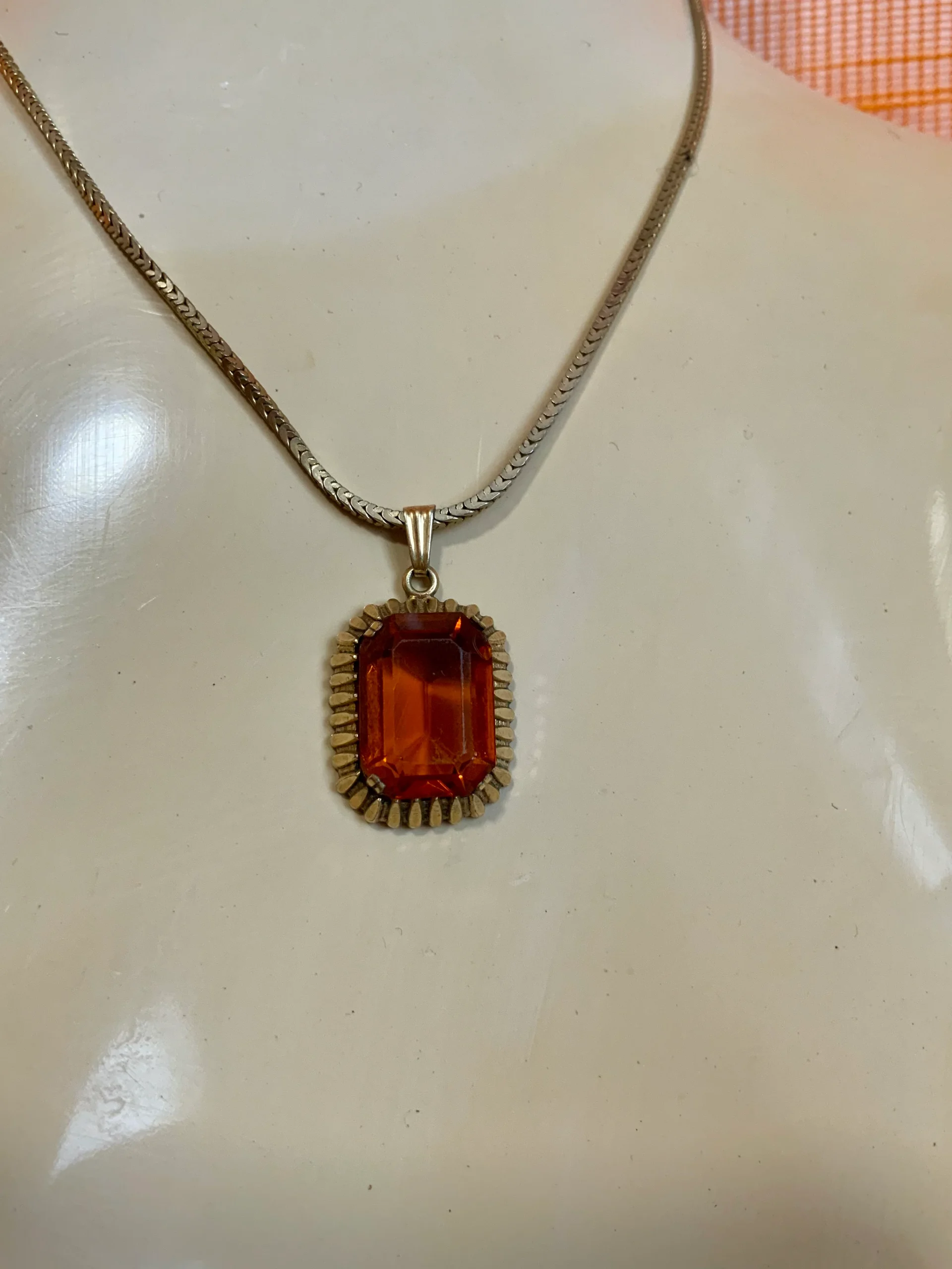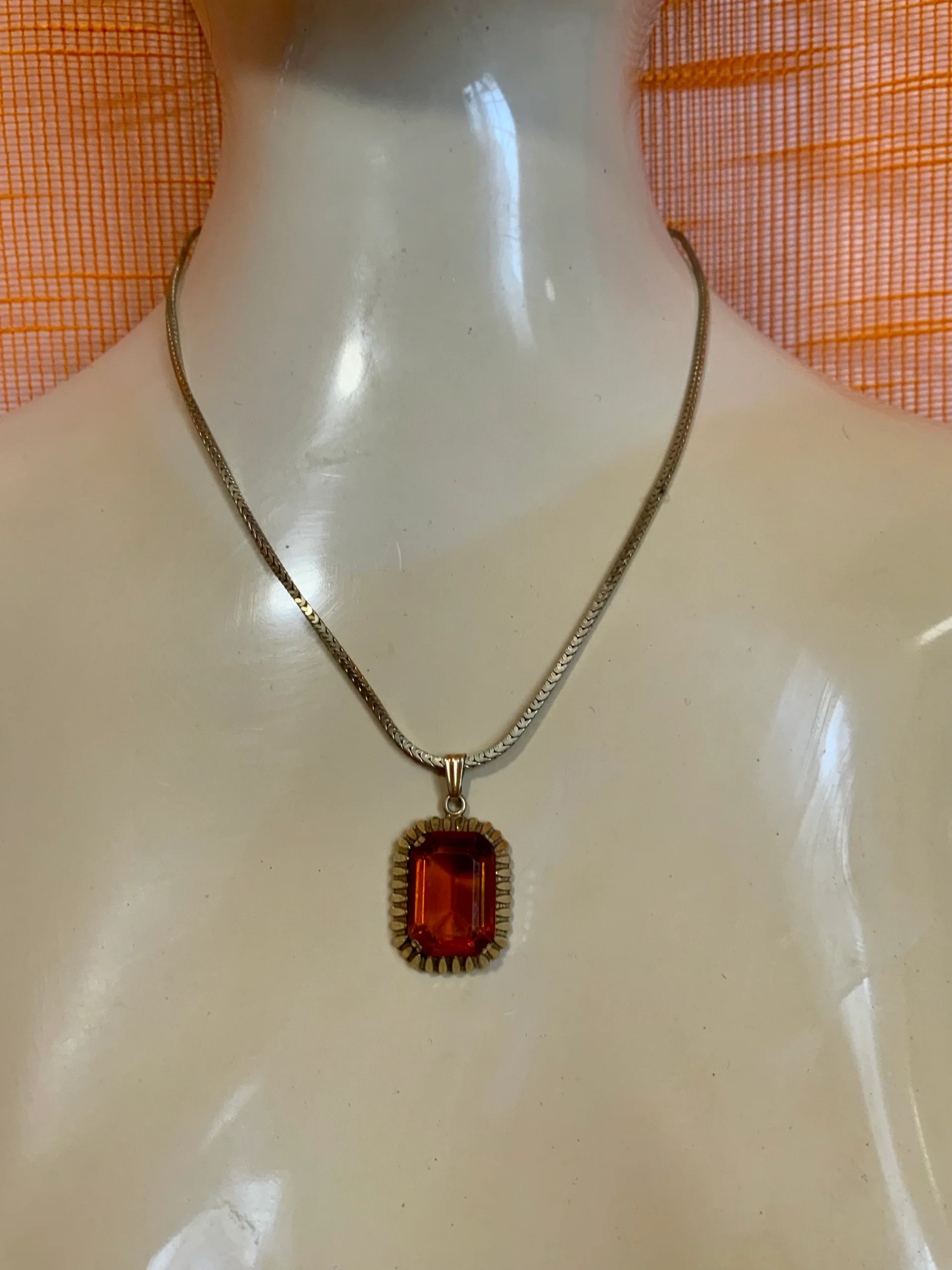 Tres beau collier métal doré et médaillon serti d’une pierre de cornaline.