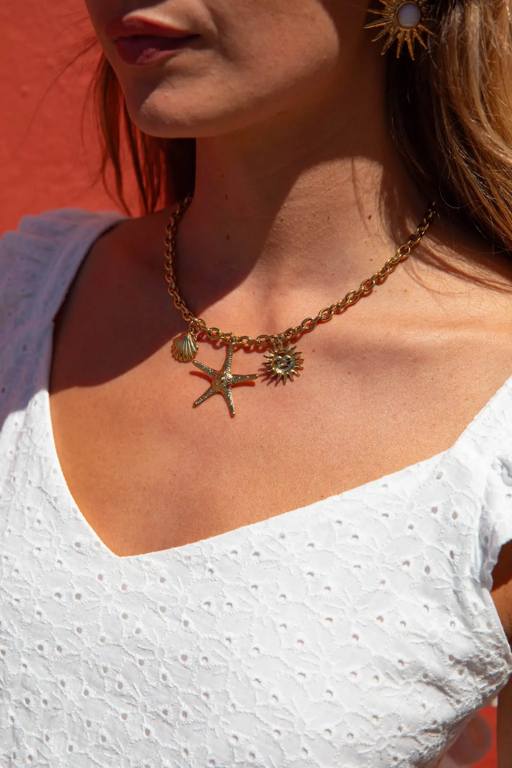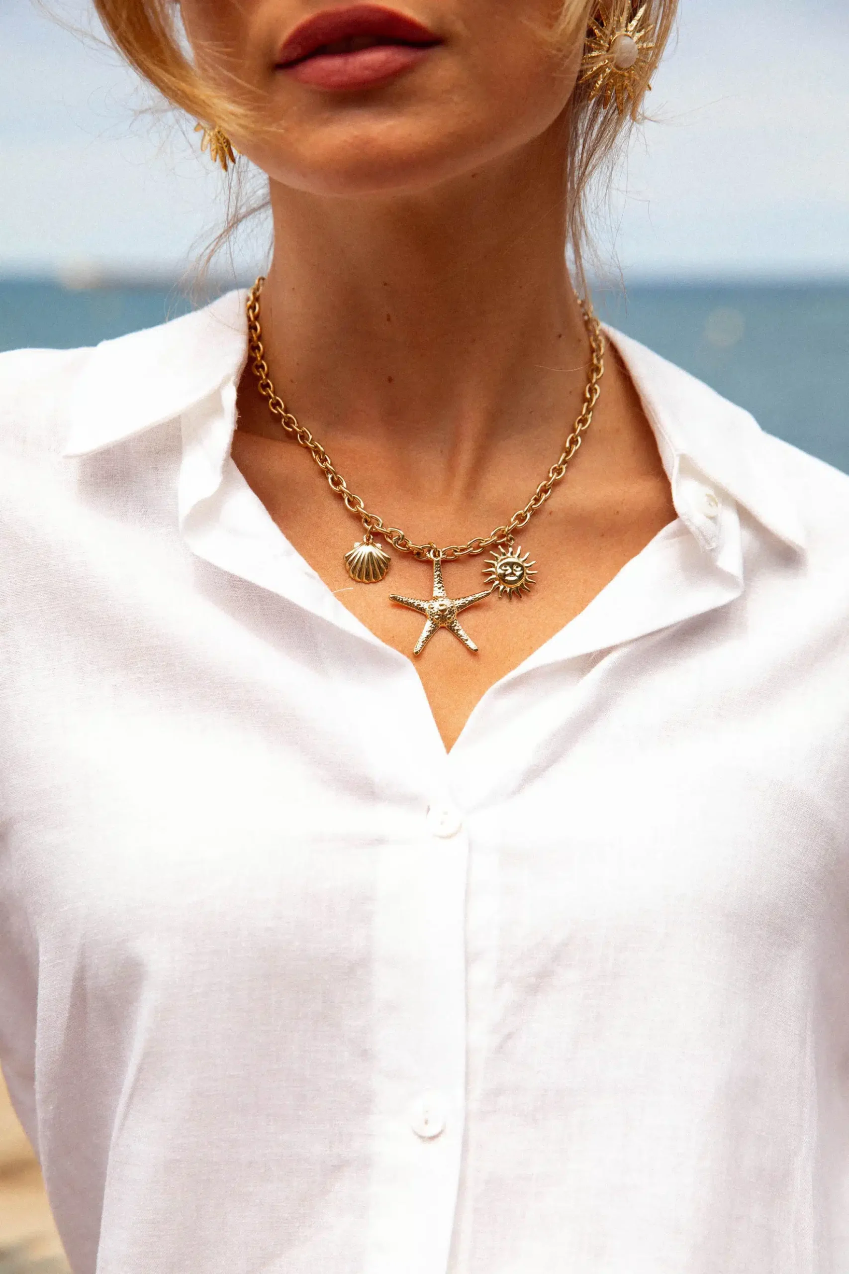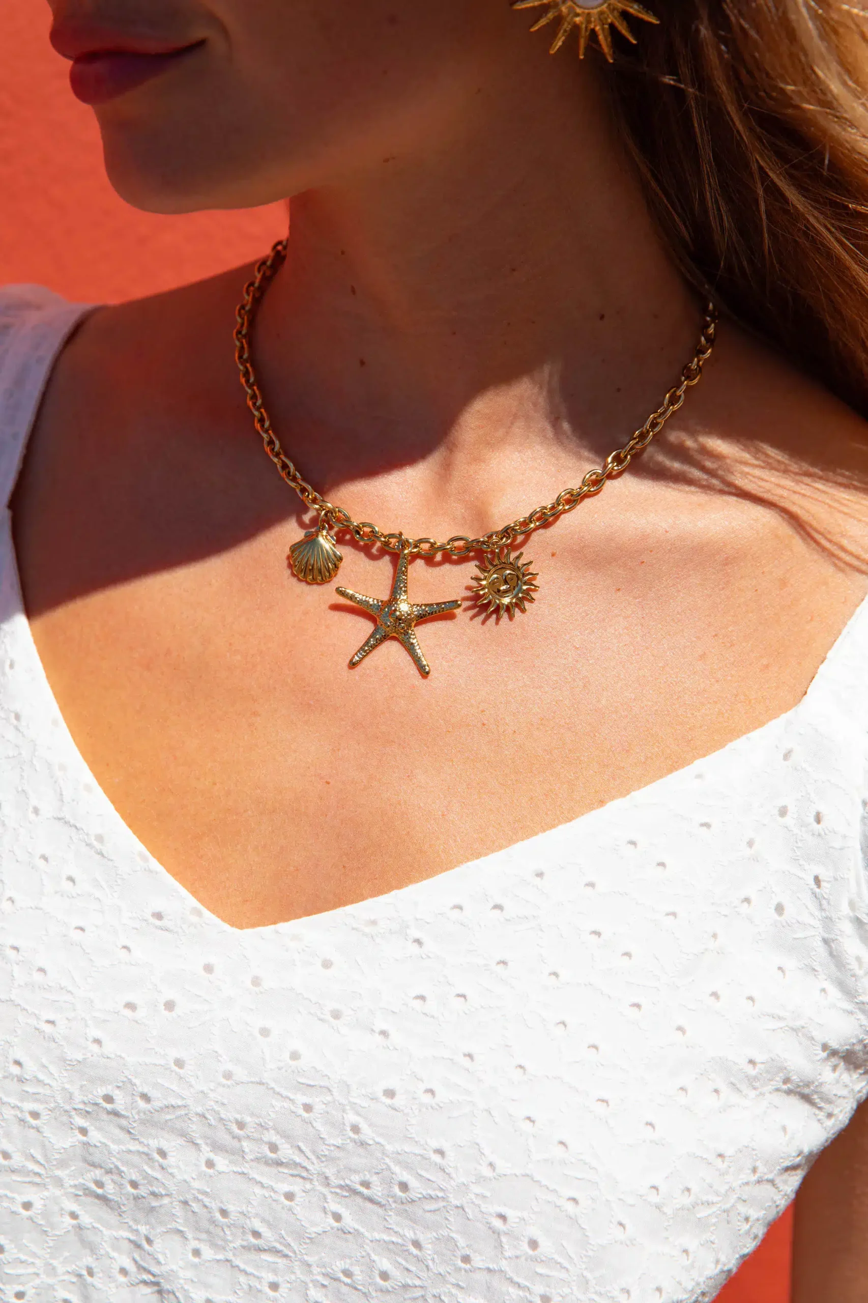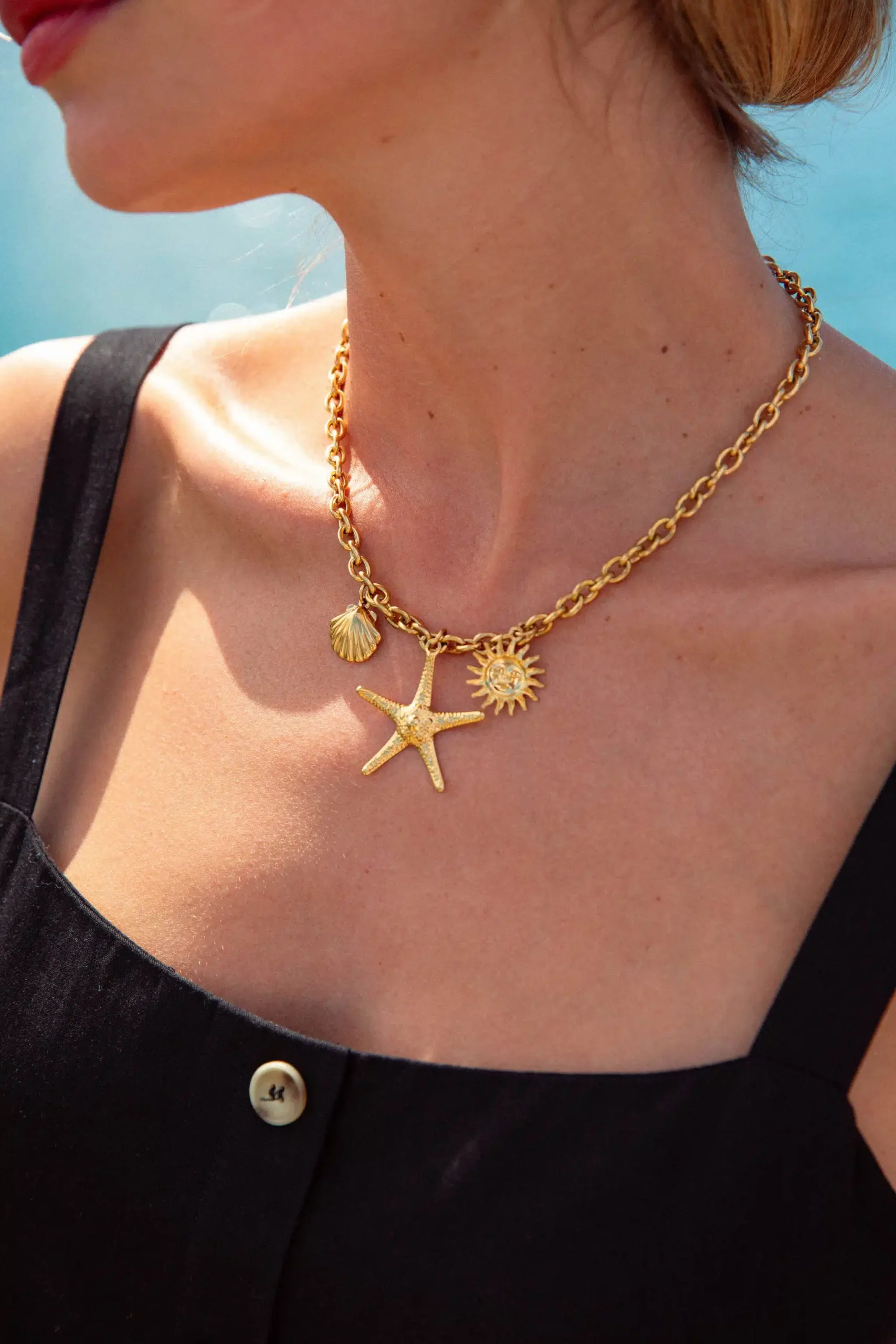 – Collier réglable – Breloques dorées – Acier inoxydable