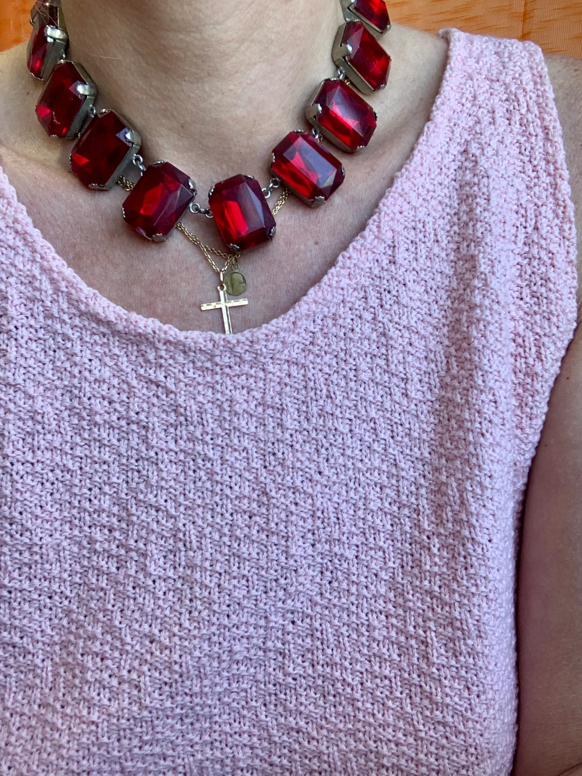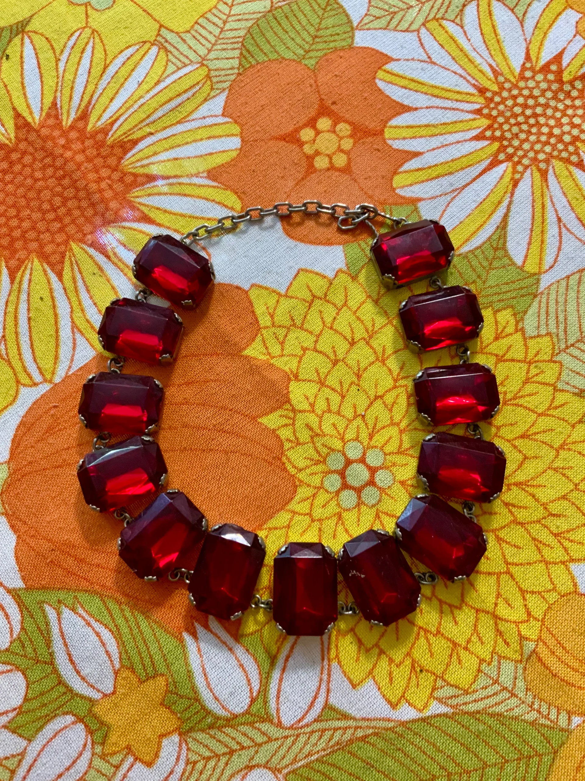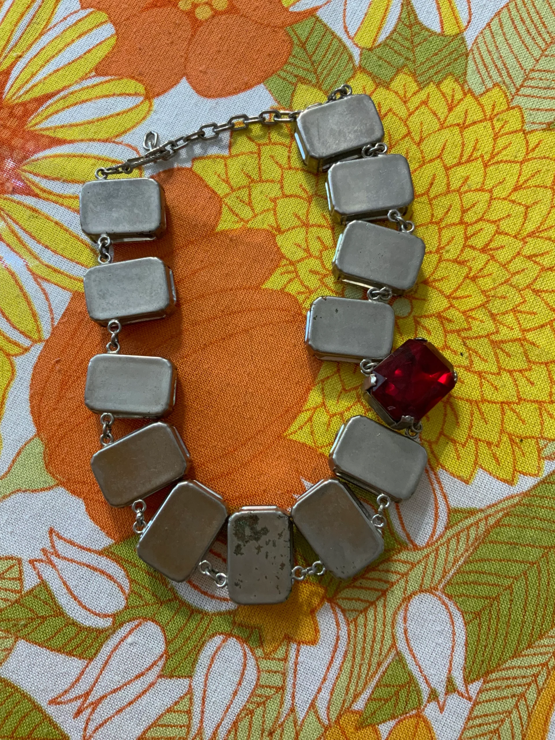 Superbe collier avec grosses pierres plastiques rouges sur métal argenté Vintage 1990/2000.