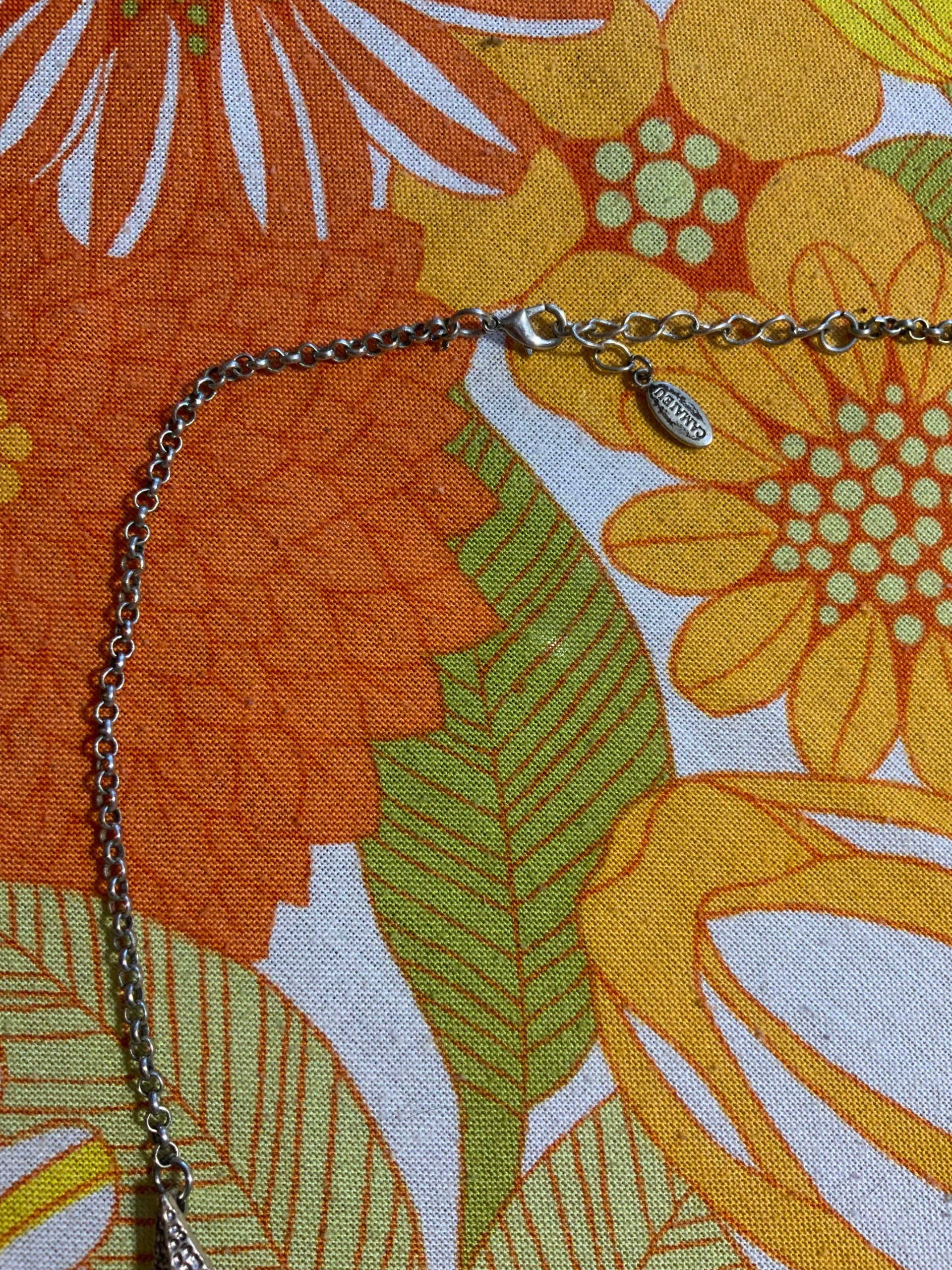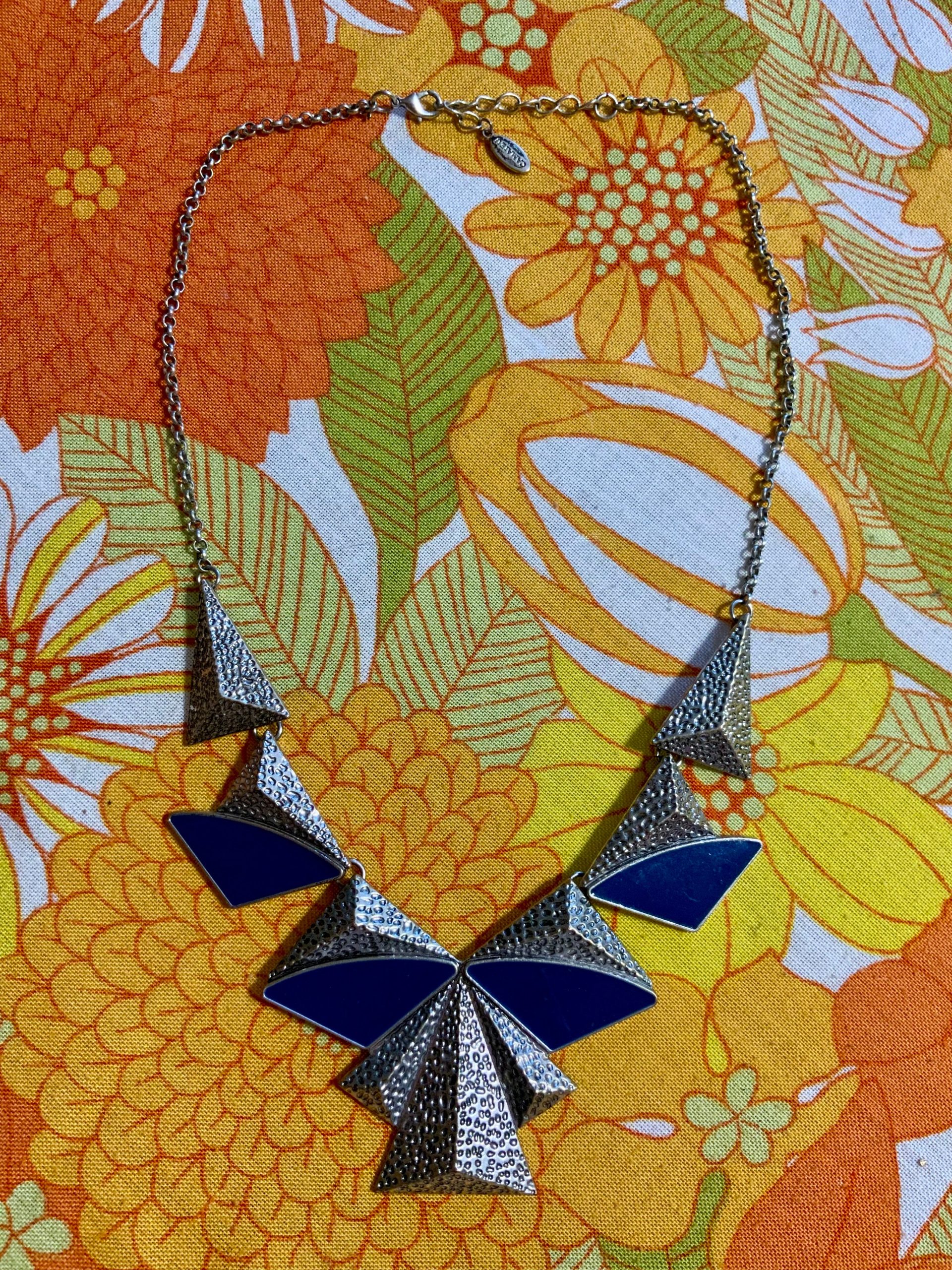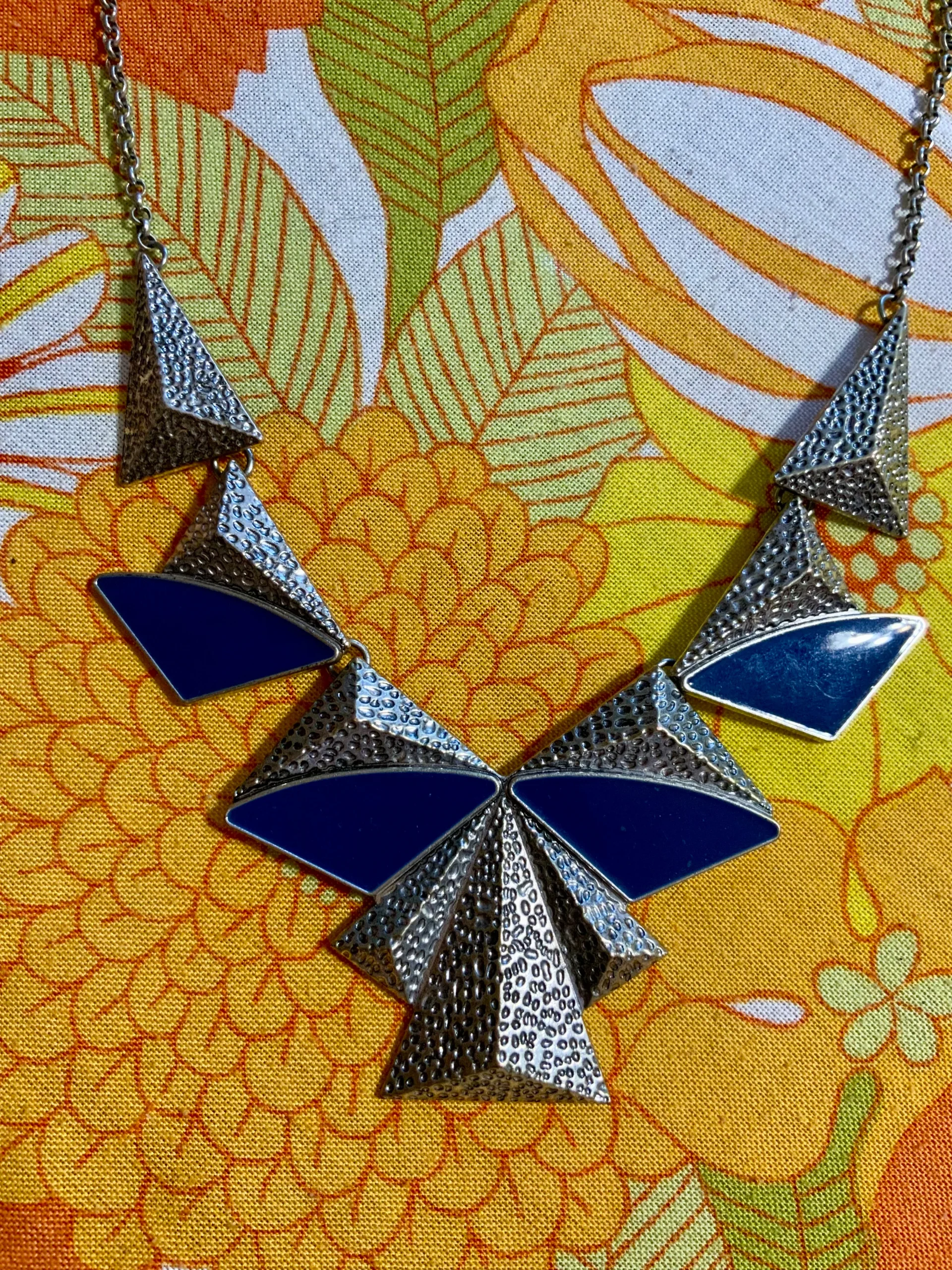 Collier en métal argenté et bleu Vintage 2000 Façon Eighties de Camaïeu.