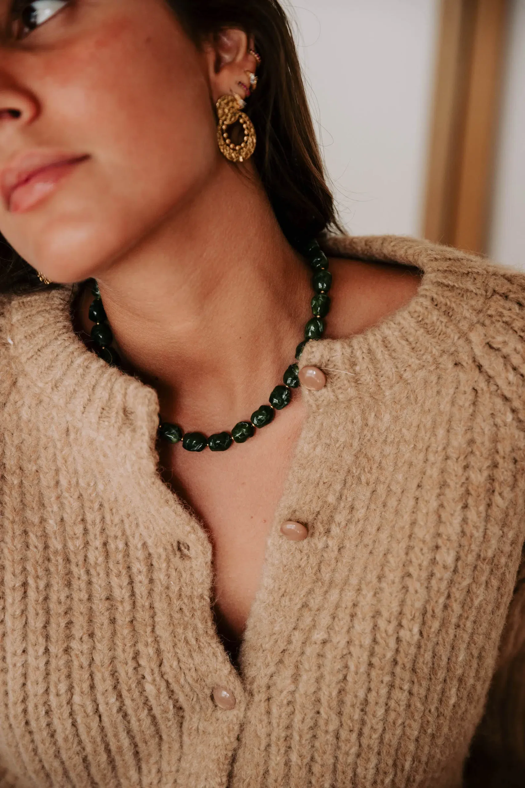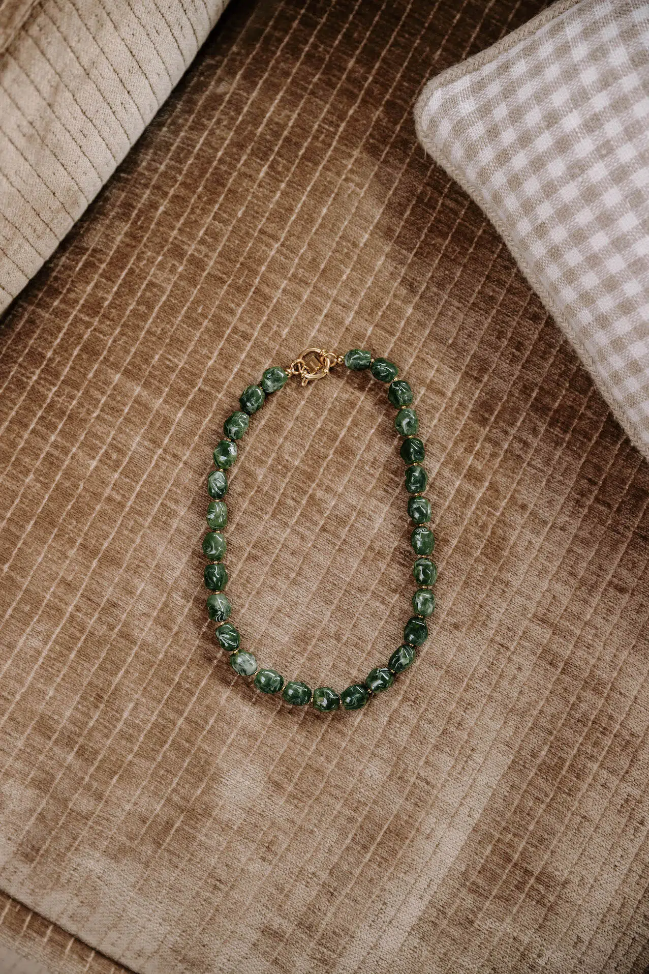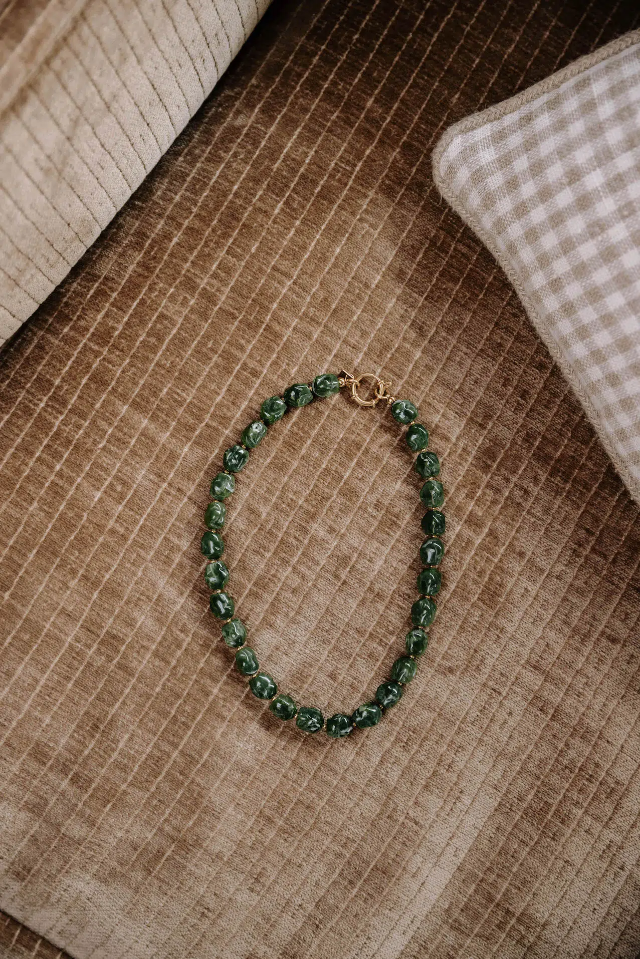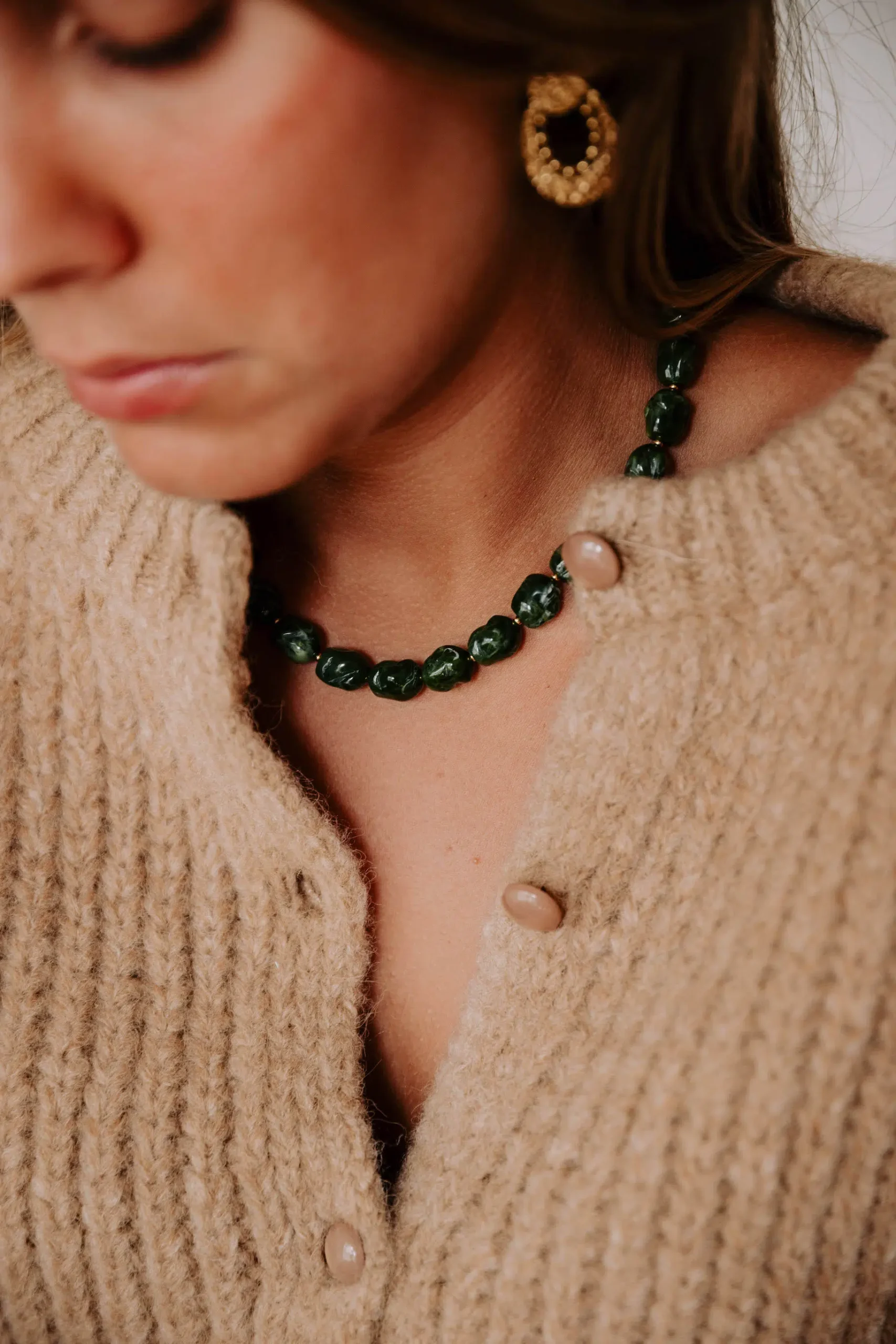 – Collier ras de cou – Pierres rondes martelées – Fermoir mousqueton – Acier inoxydable – Couleur: vert