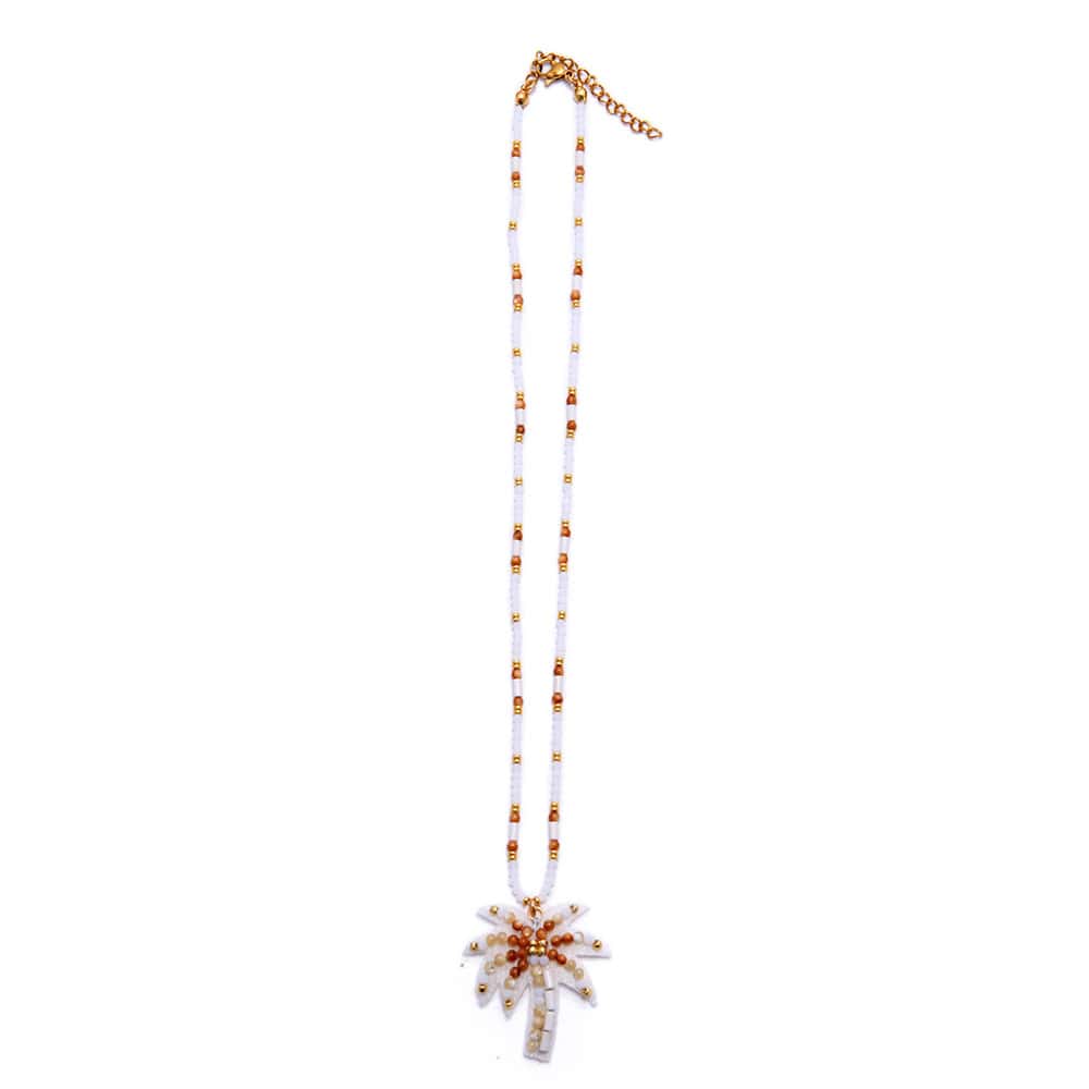 Collier avec lien en perle de Miyuki et pendentif en feutre serti de perles40 cm + Chaine de rallonge