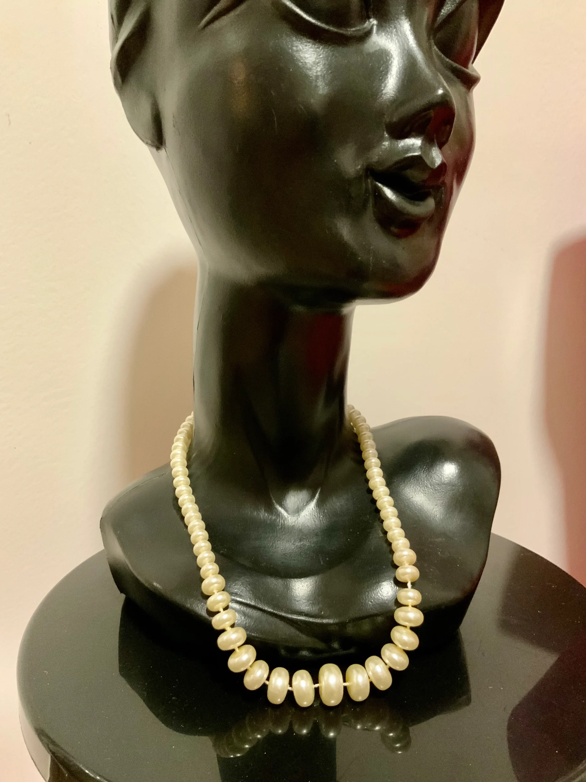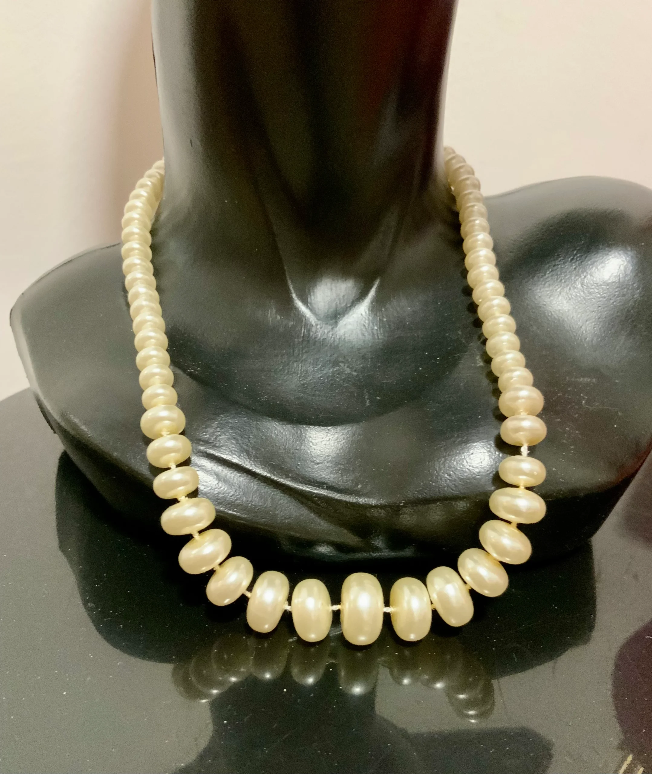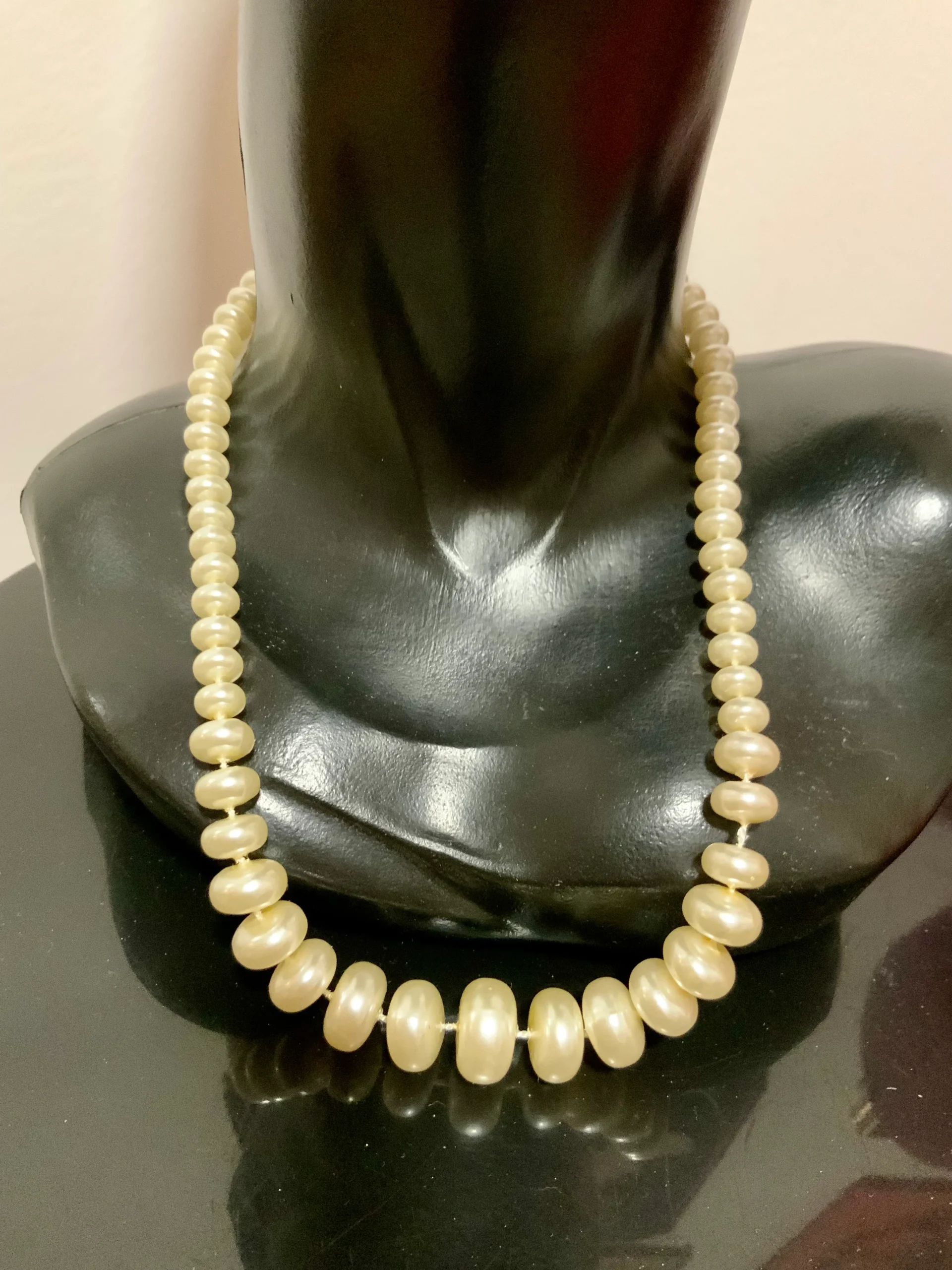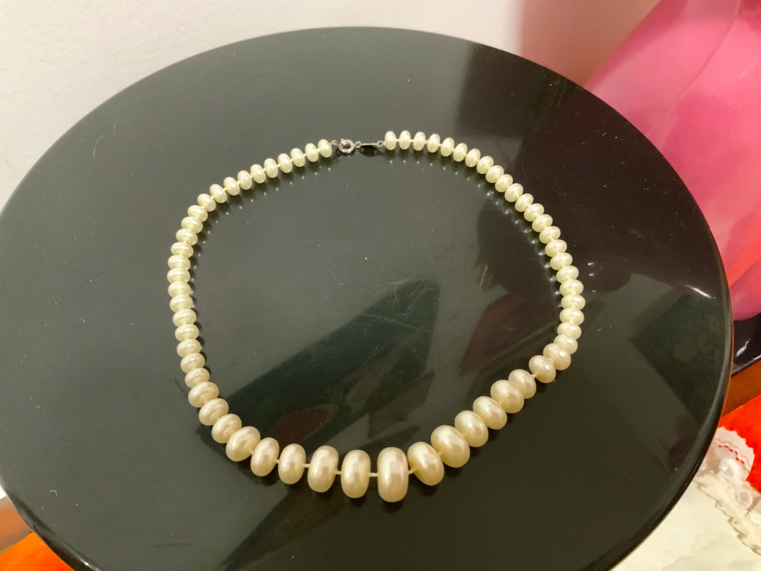 Collier perles fantaisies rondes et plates Vintage 1980 Ancien fermoir
