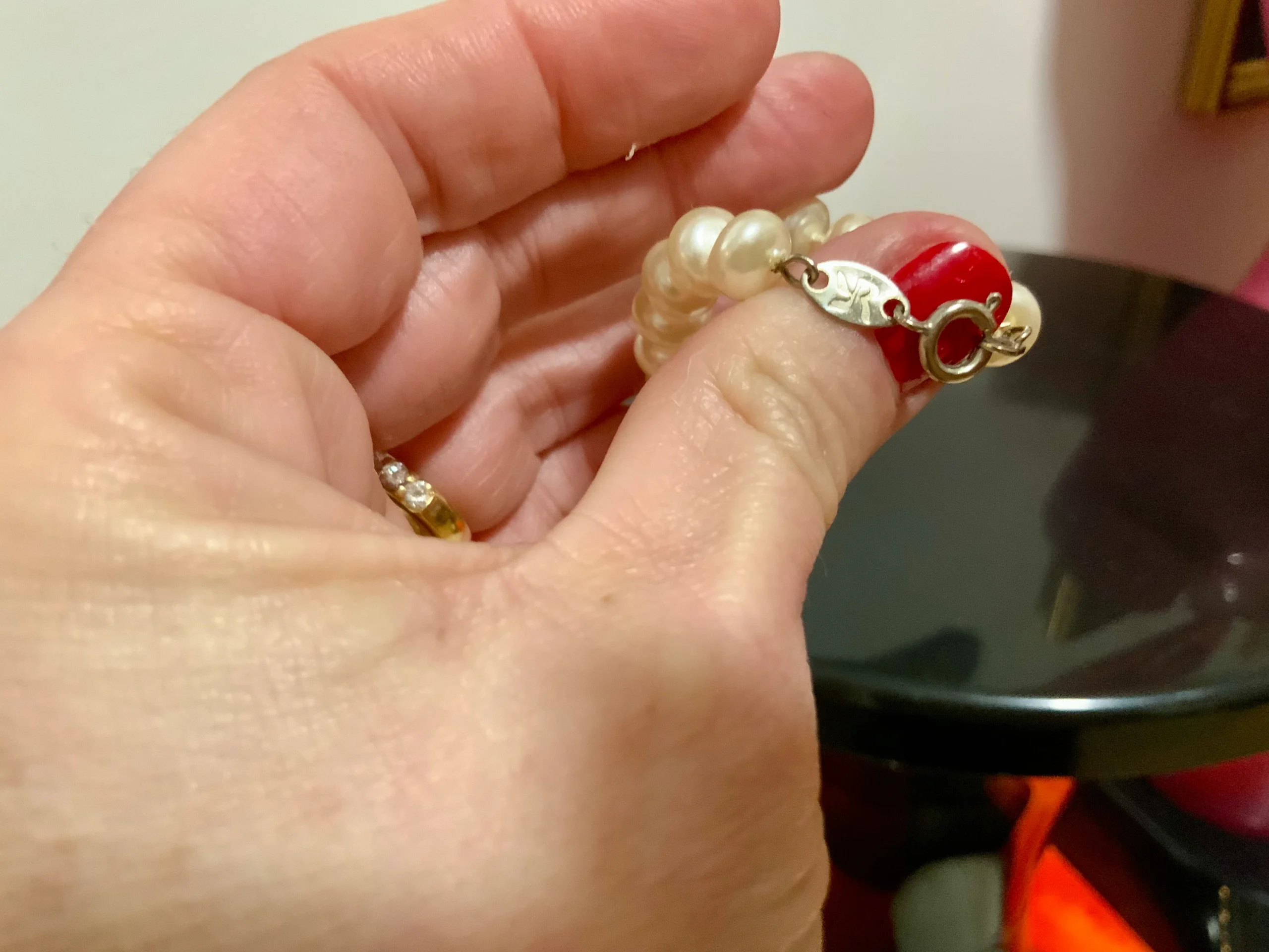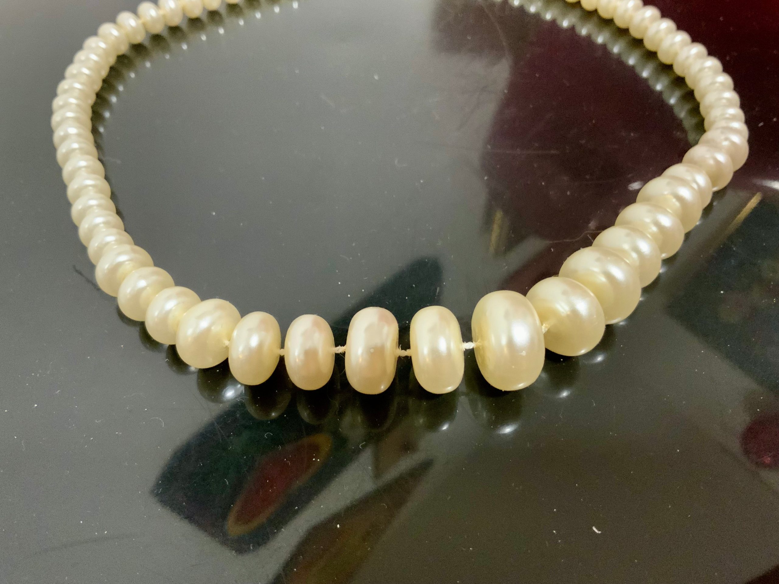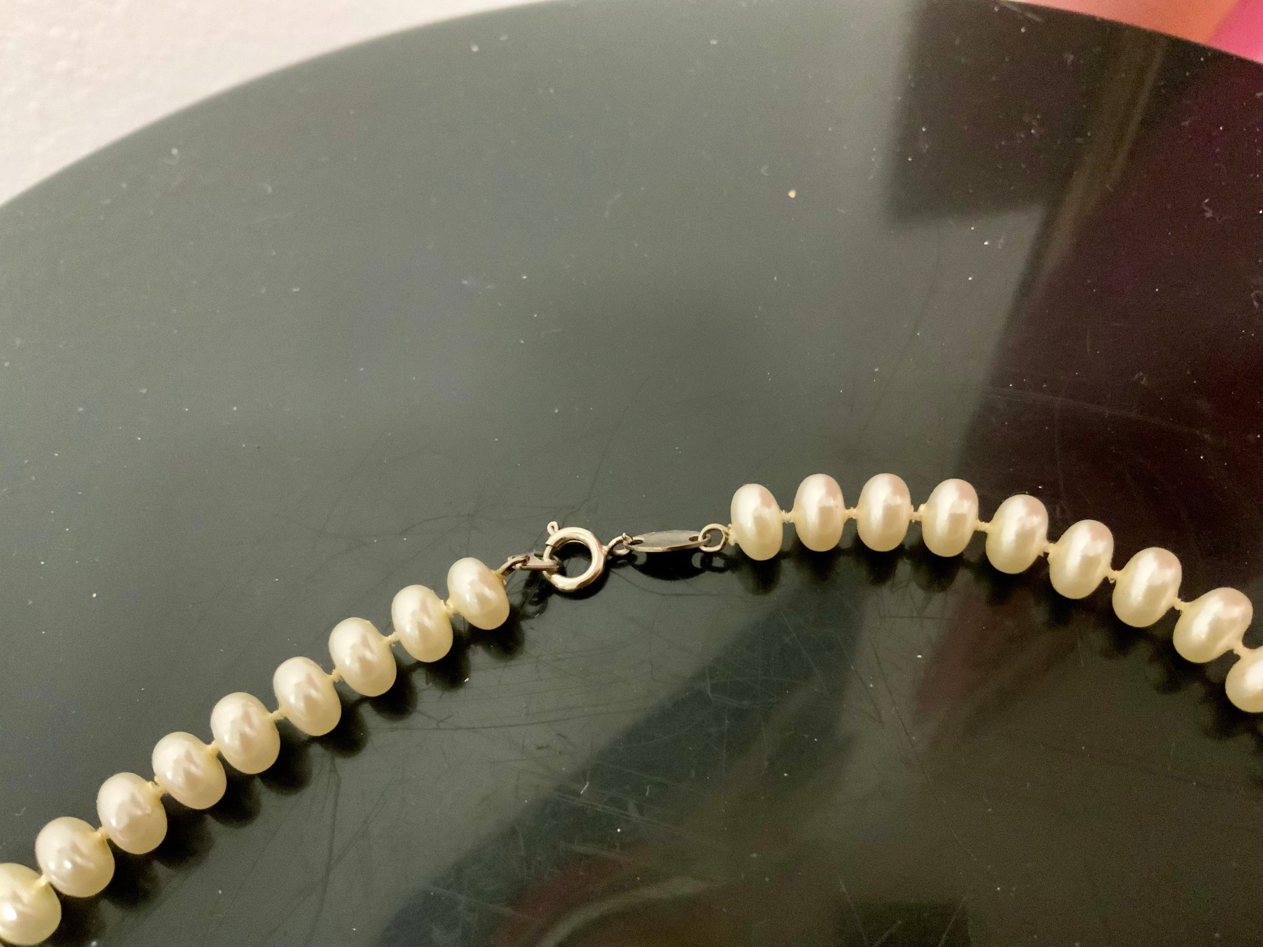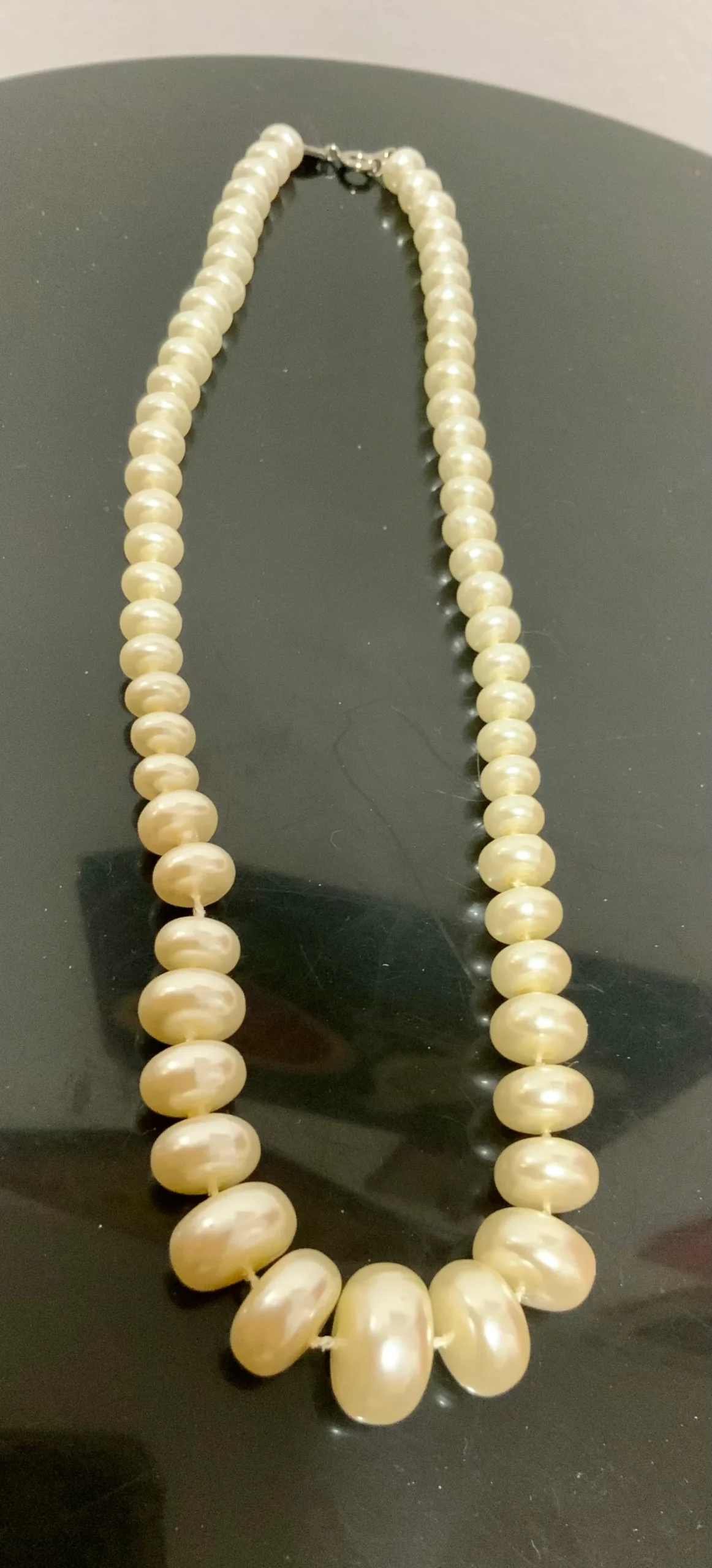Collier perles fantaisies rondes et plates Vintage 1980 Ancien fermoir