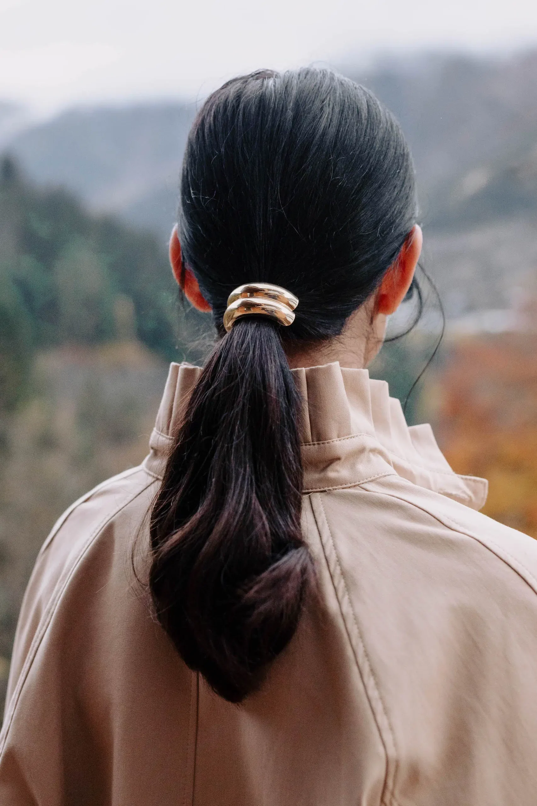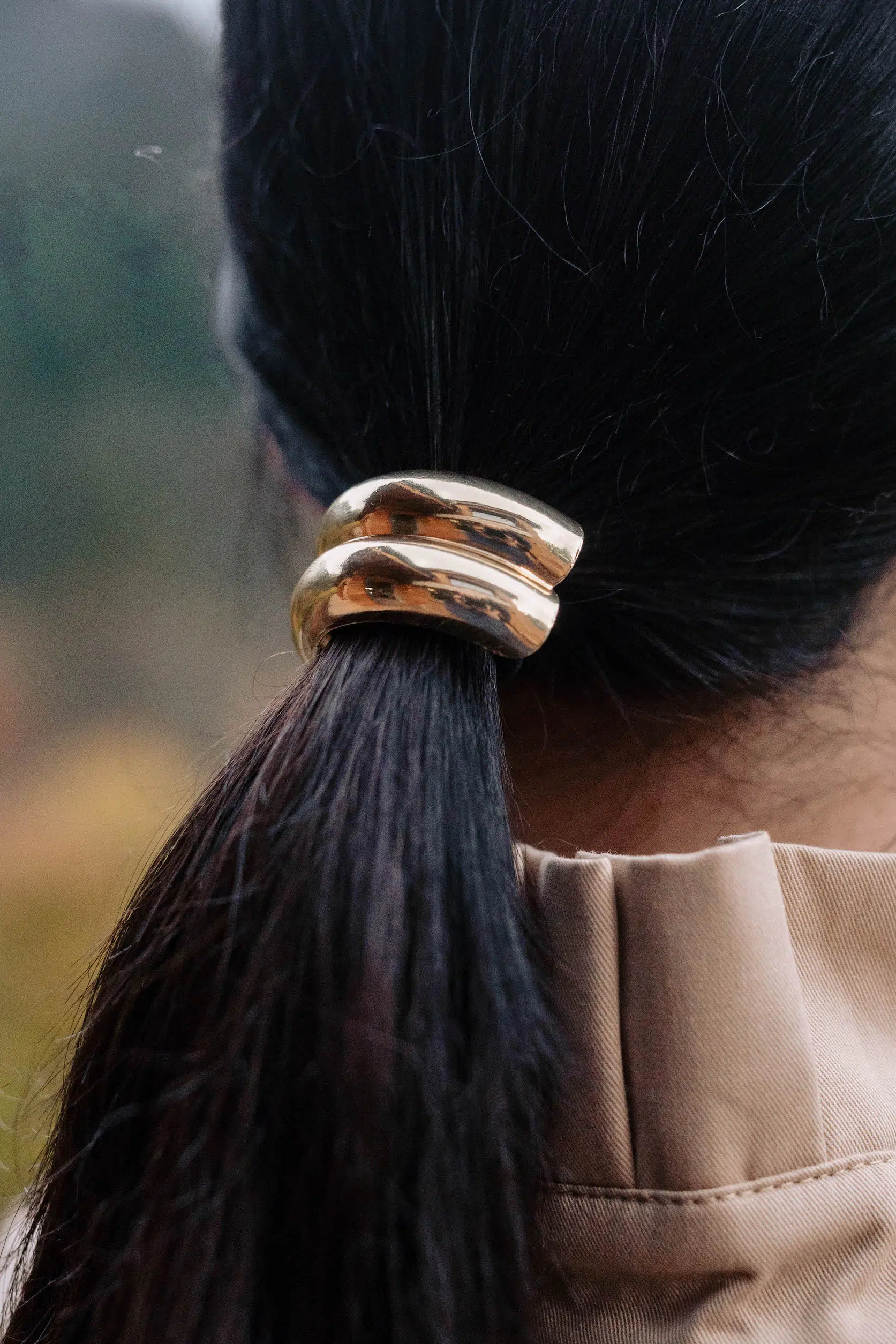 – Elastique bijoux à cheveux – Double anneau bombé – Couleur : élastique noir, bijoux doré