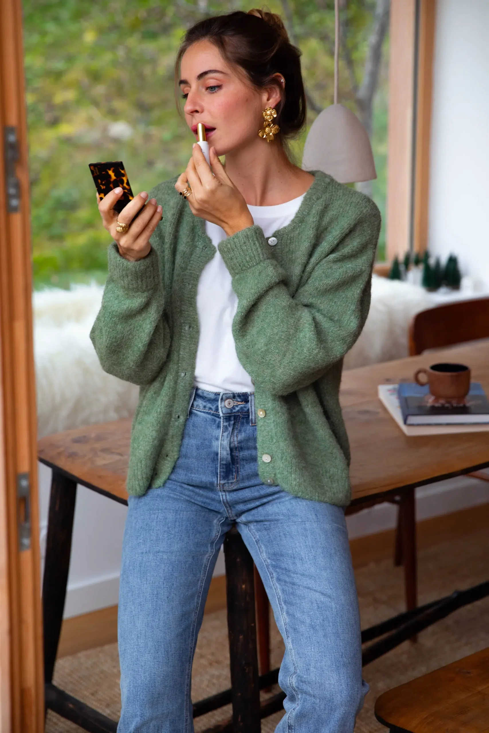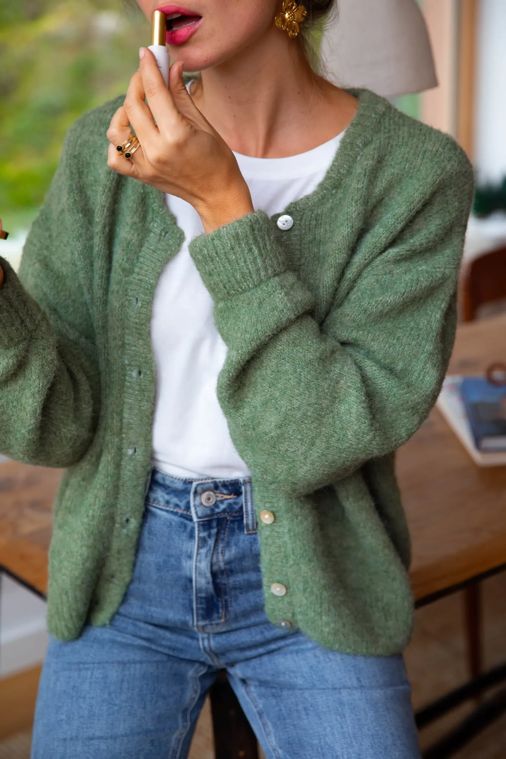 – Gilet loose – Taille unique convient pour un S/M/L – Fermeture par boutons nacrés sur le devant – Couleur : vert olive