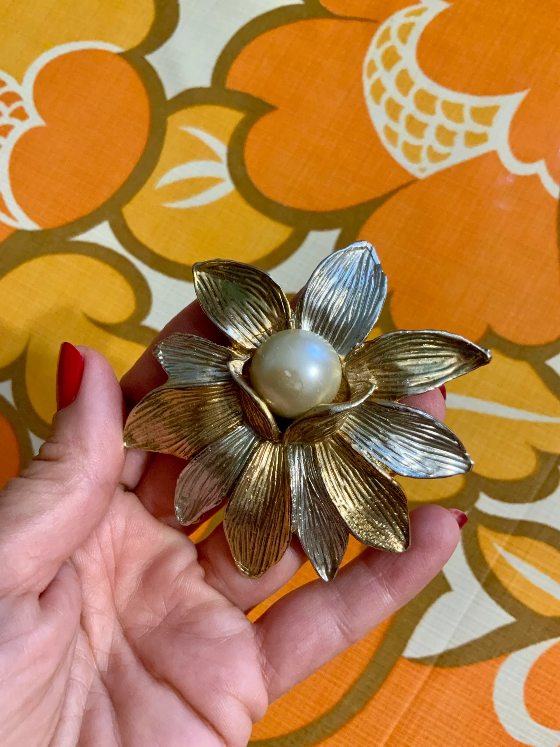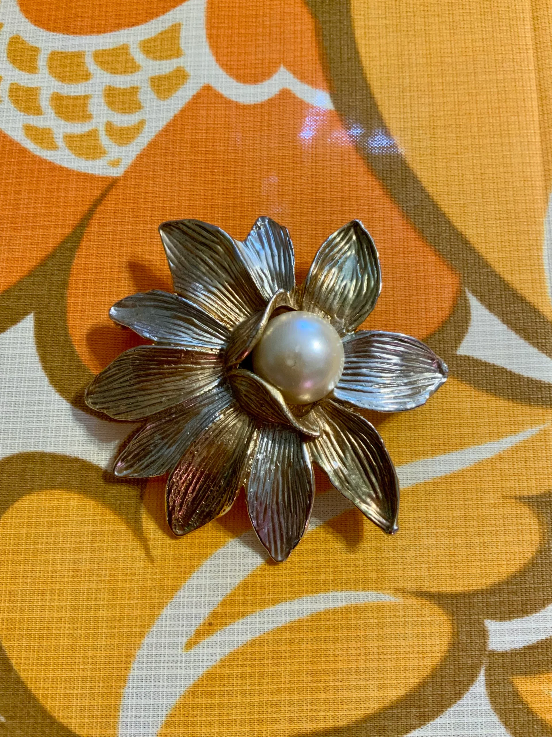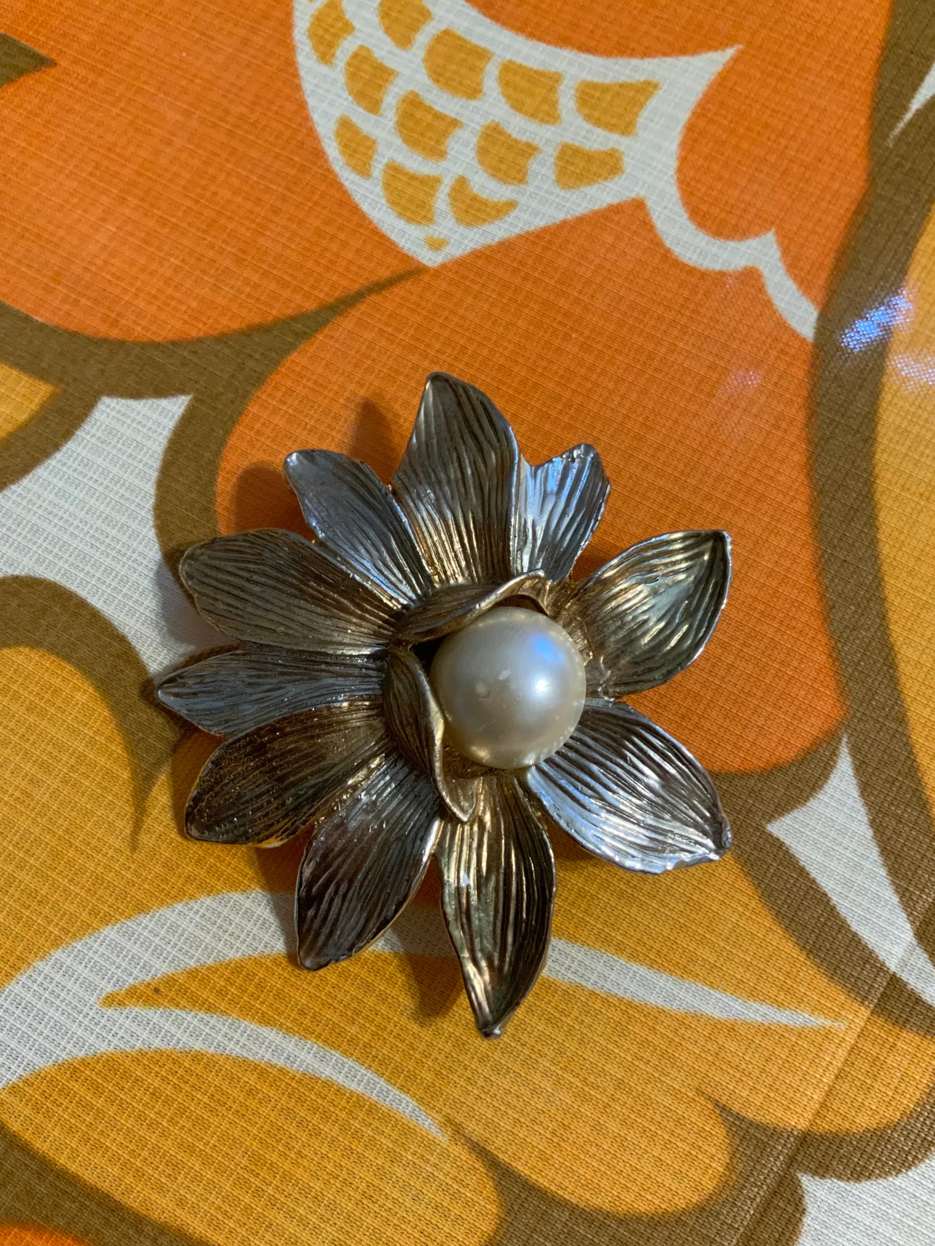 Très grande broche Fleur et perle – Vintage Excellent état.