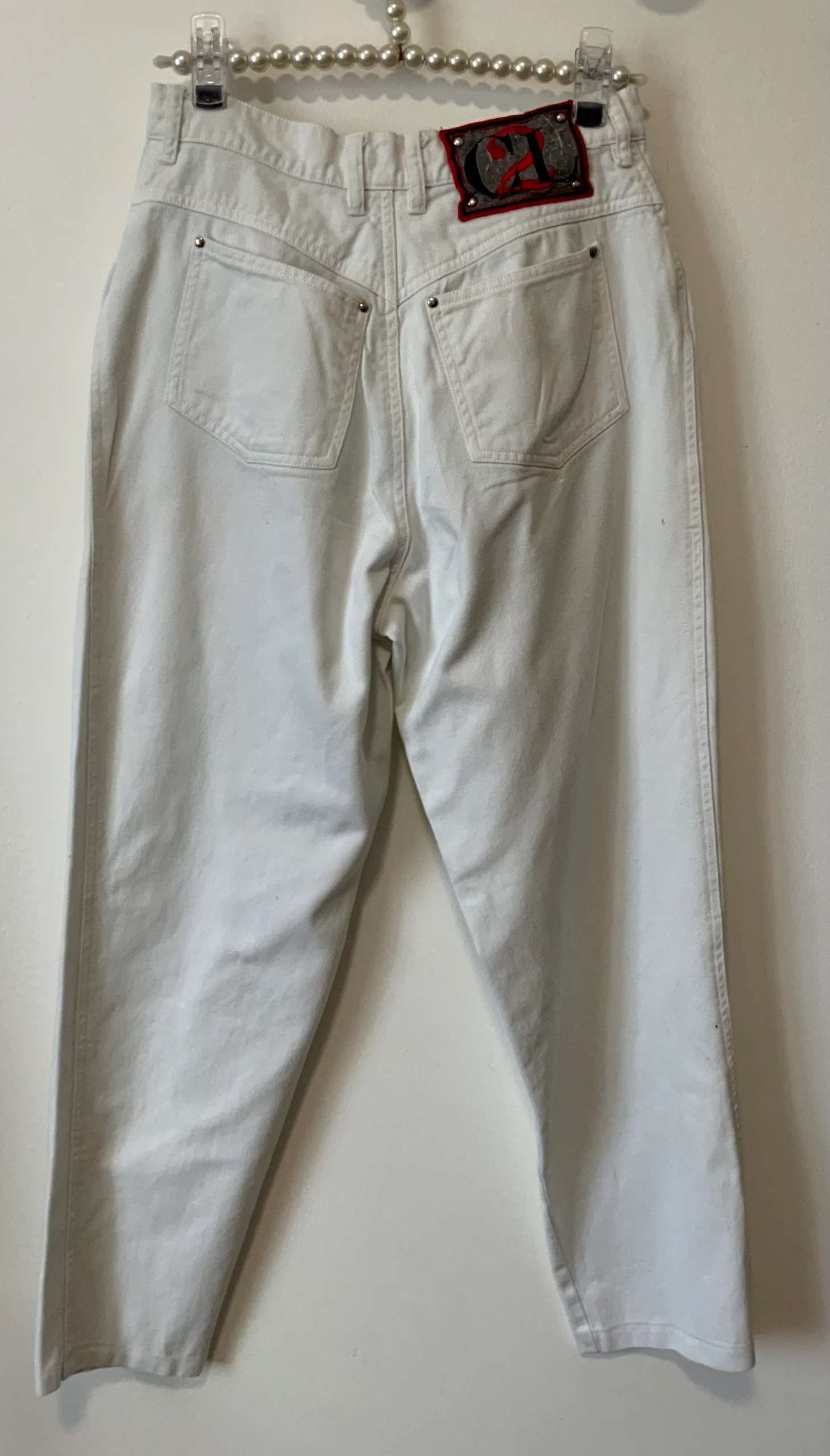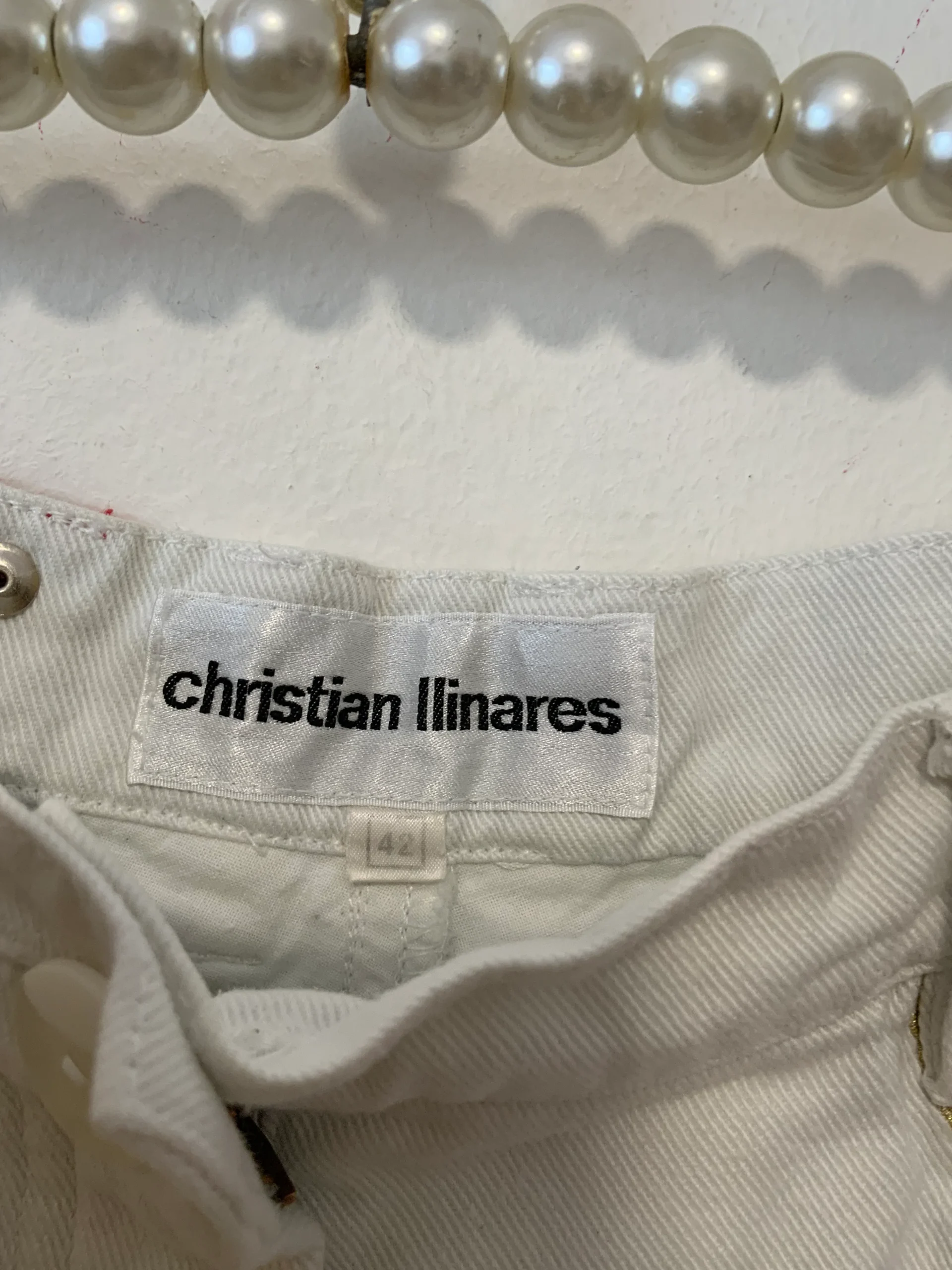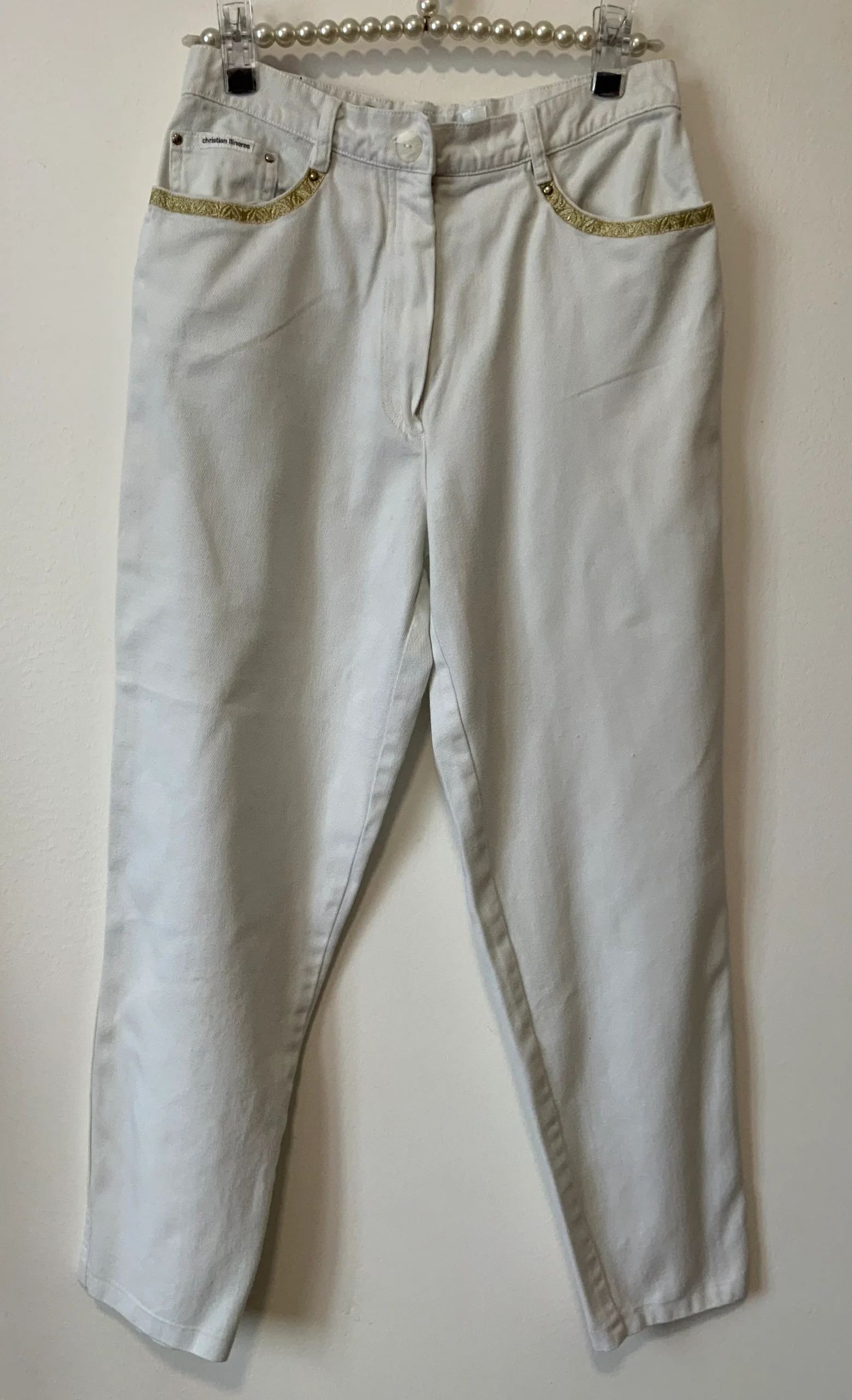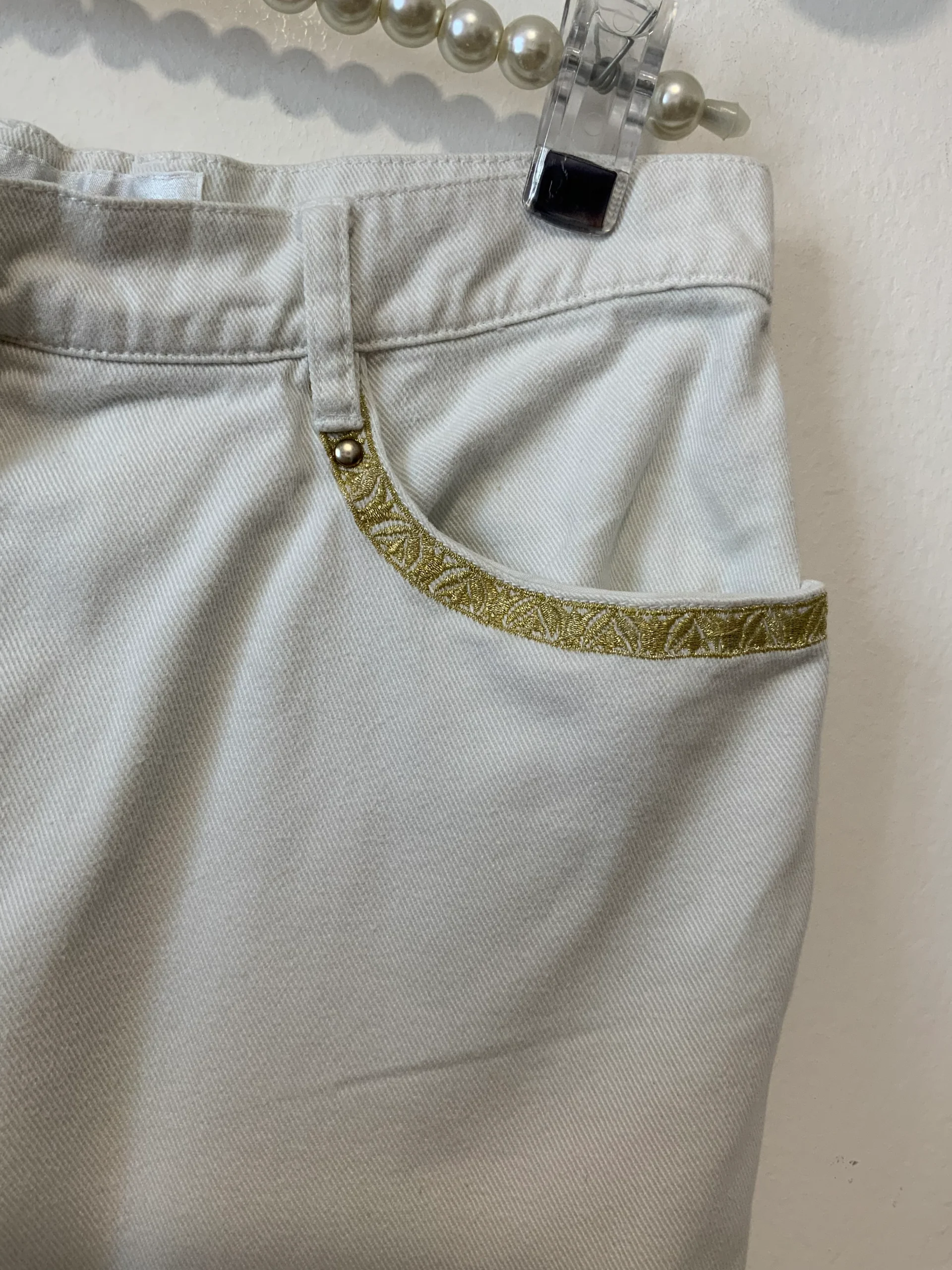 Pantalon Denim Jean Blanc et broderies dorées Vintage 1990 de Christian Llinares –