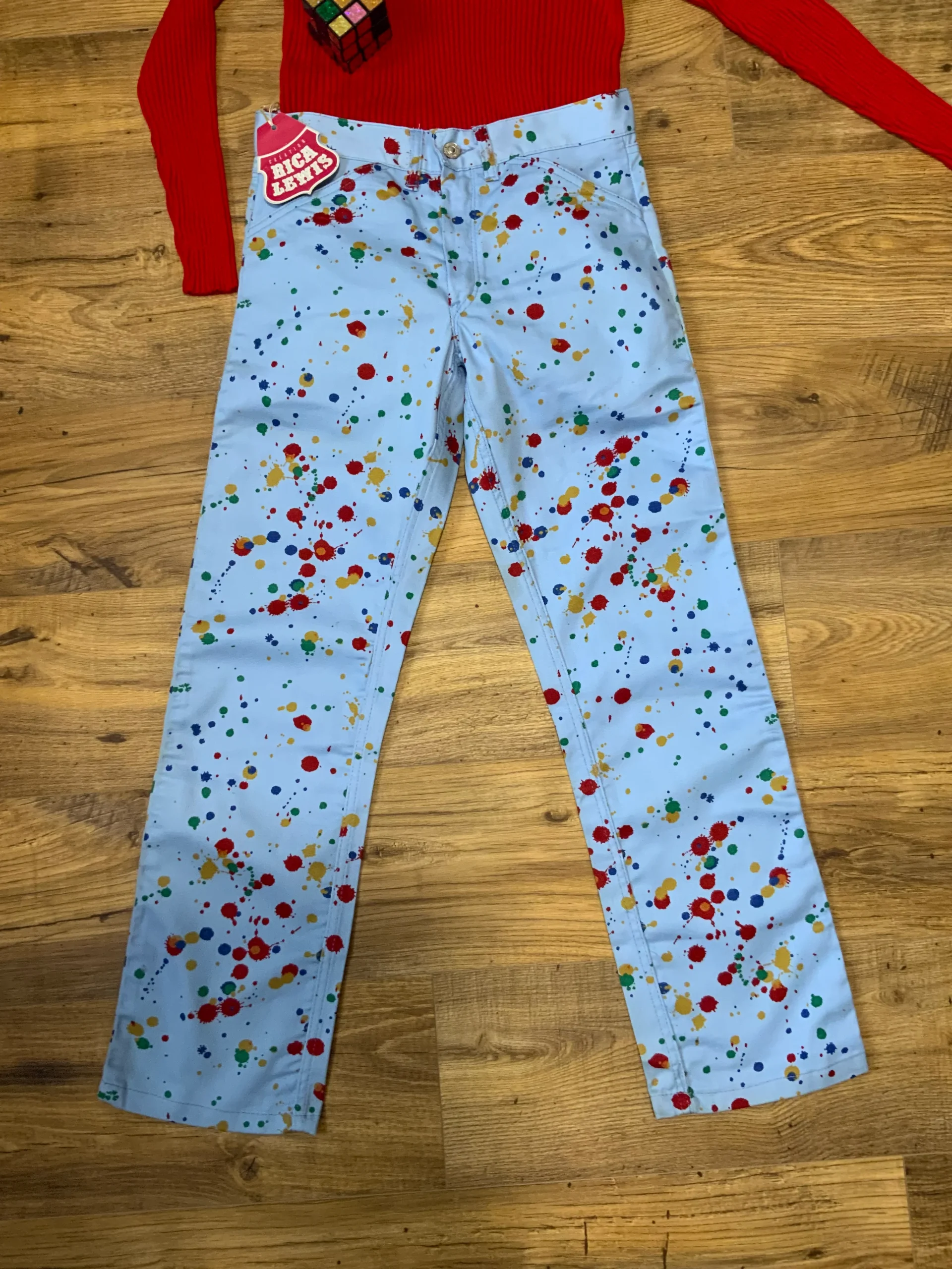Jean droit Deadstock Rica Lewis 1980 Tâches effet peinture de toutes les couleurs sur fond bleu clair-