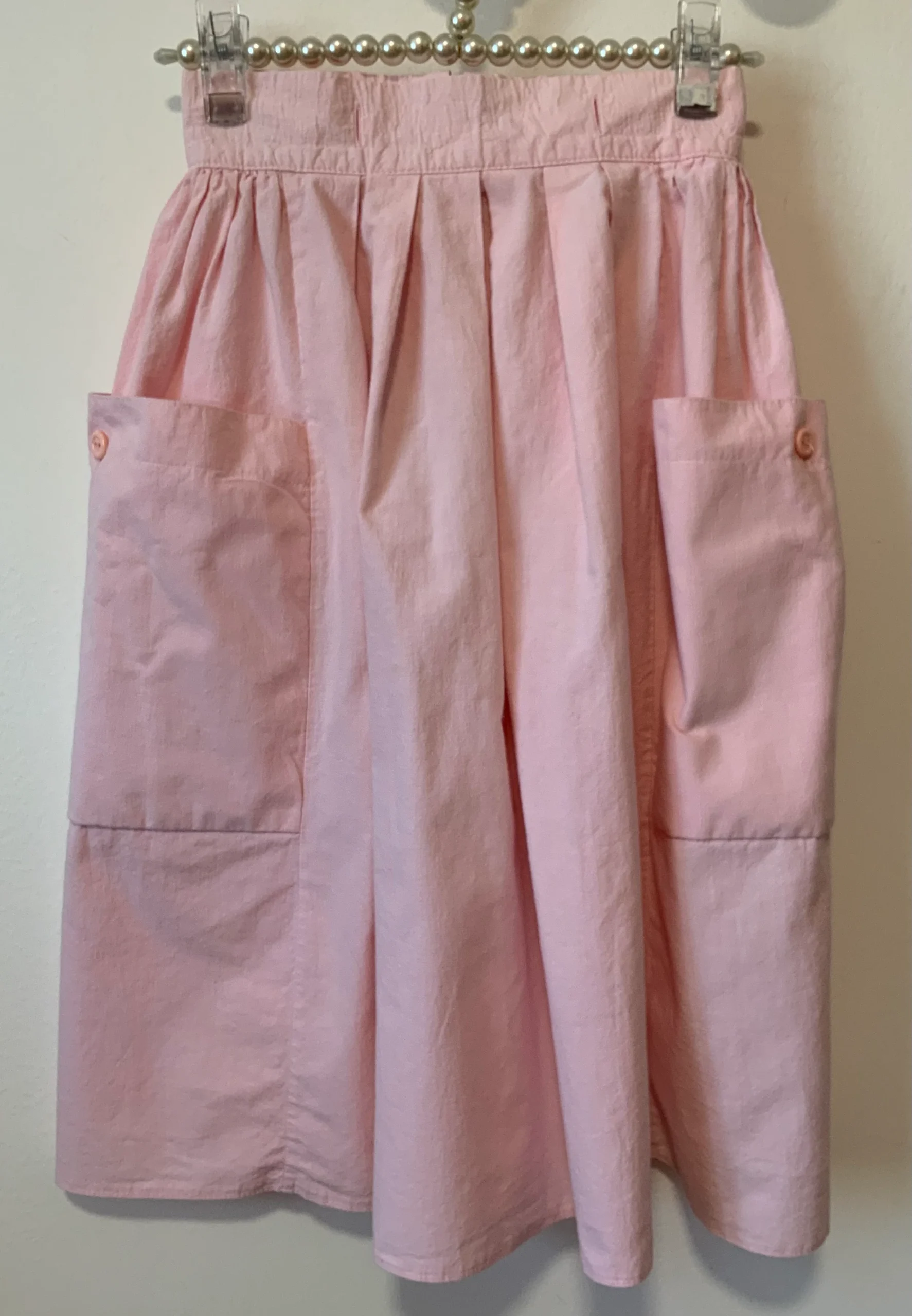 Jupe A plis Rose Pastel grandes poches Vintage 1980