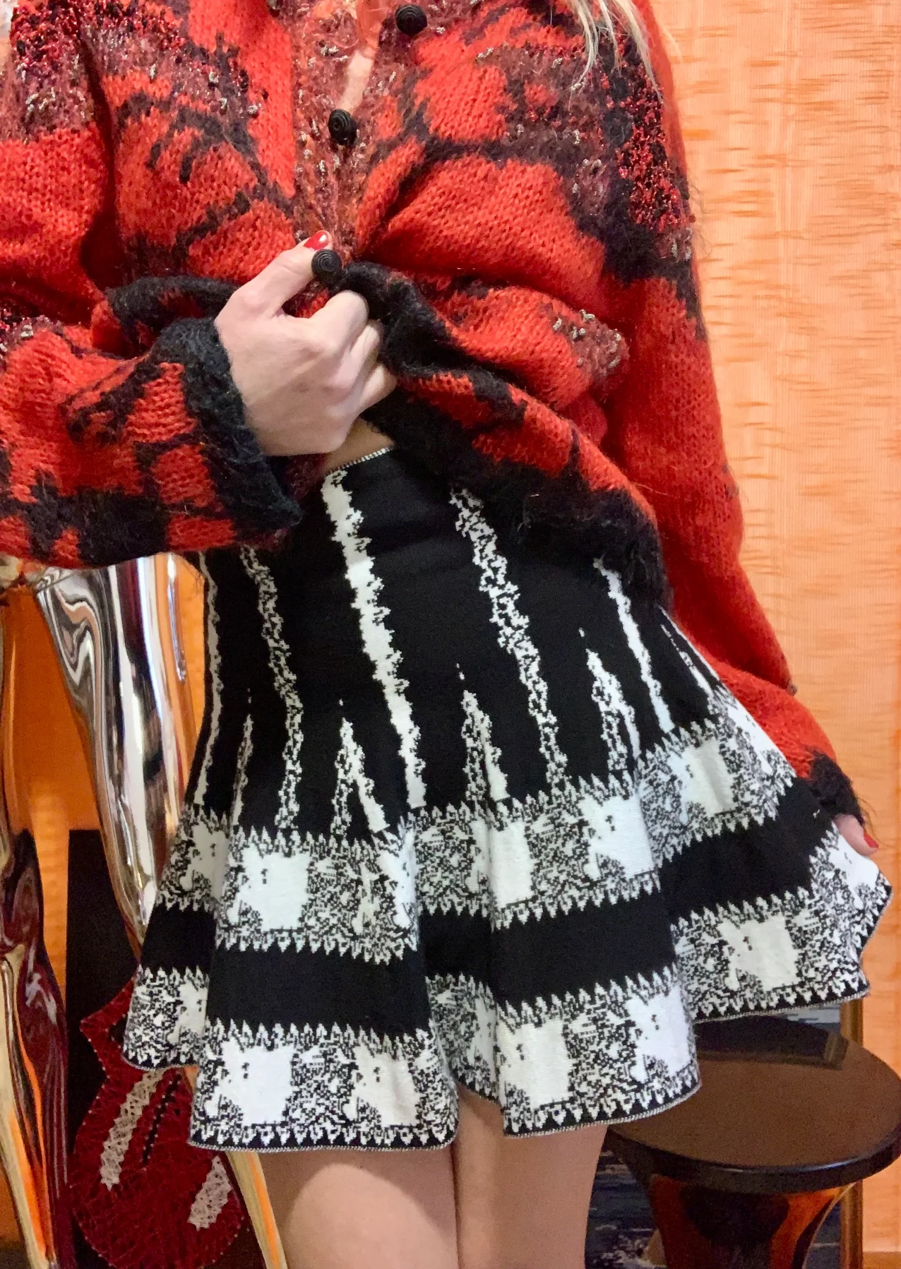Mini Jupe à motifs forme patineuse Vintage Paris 1990-
