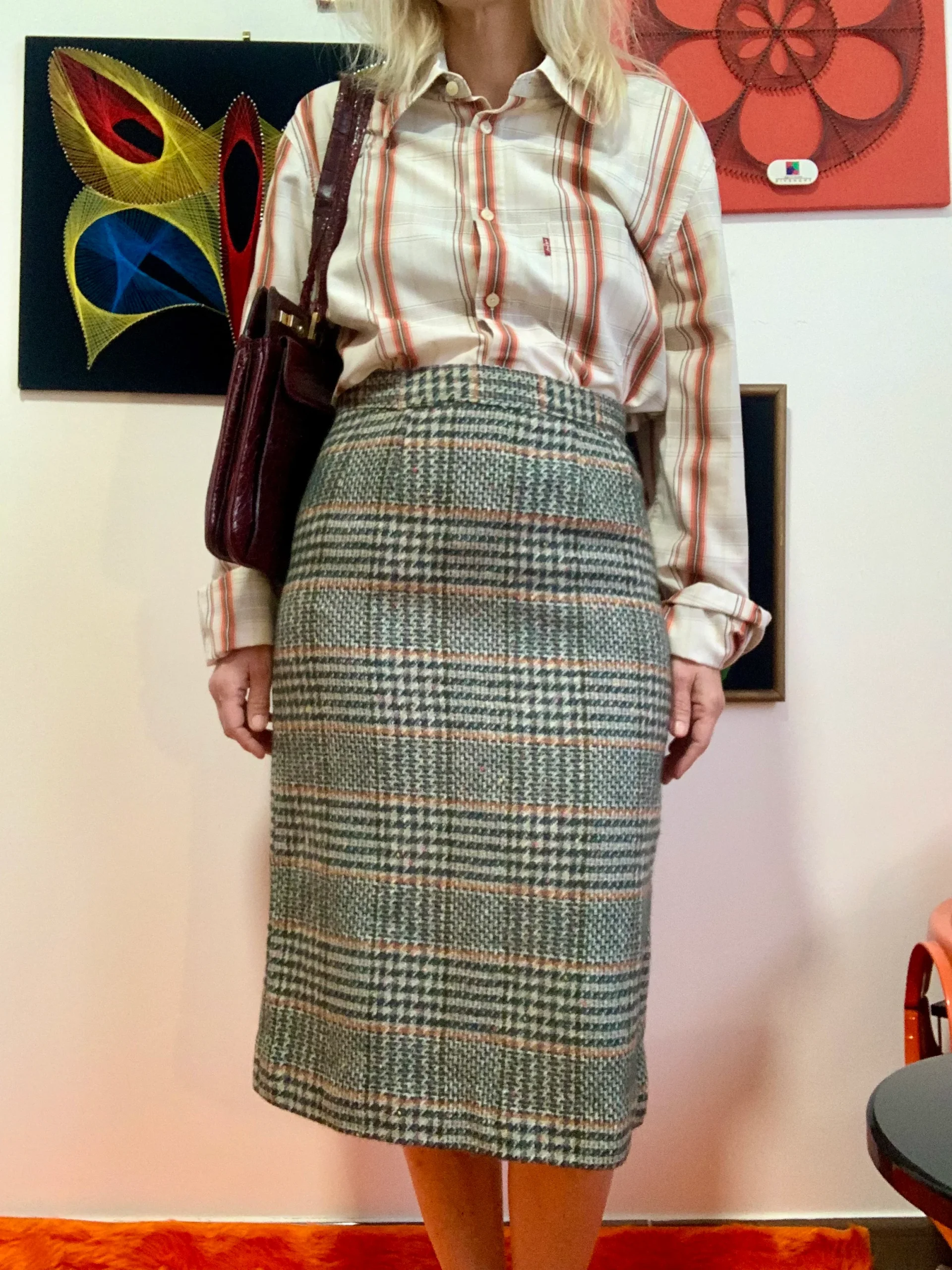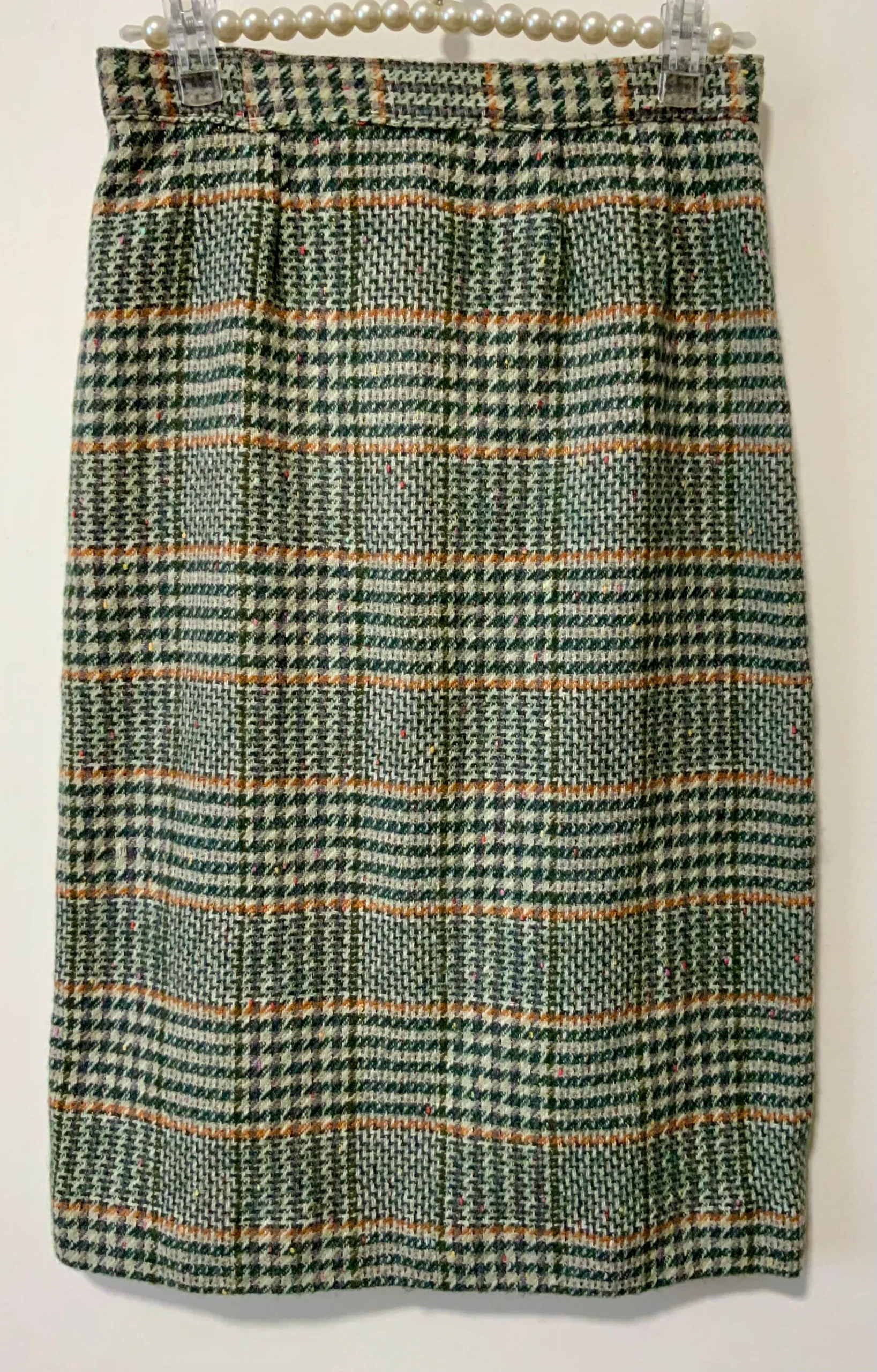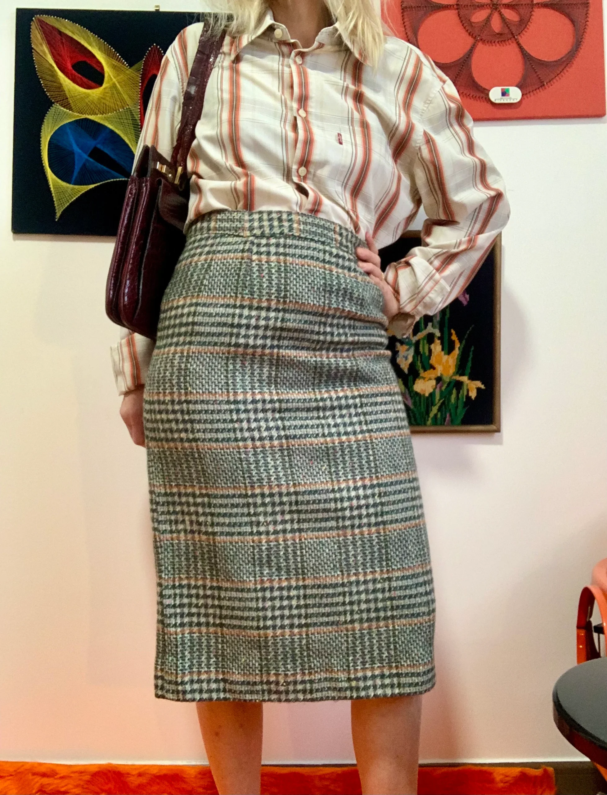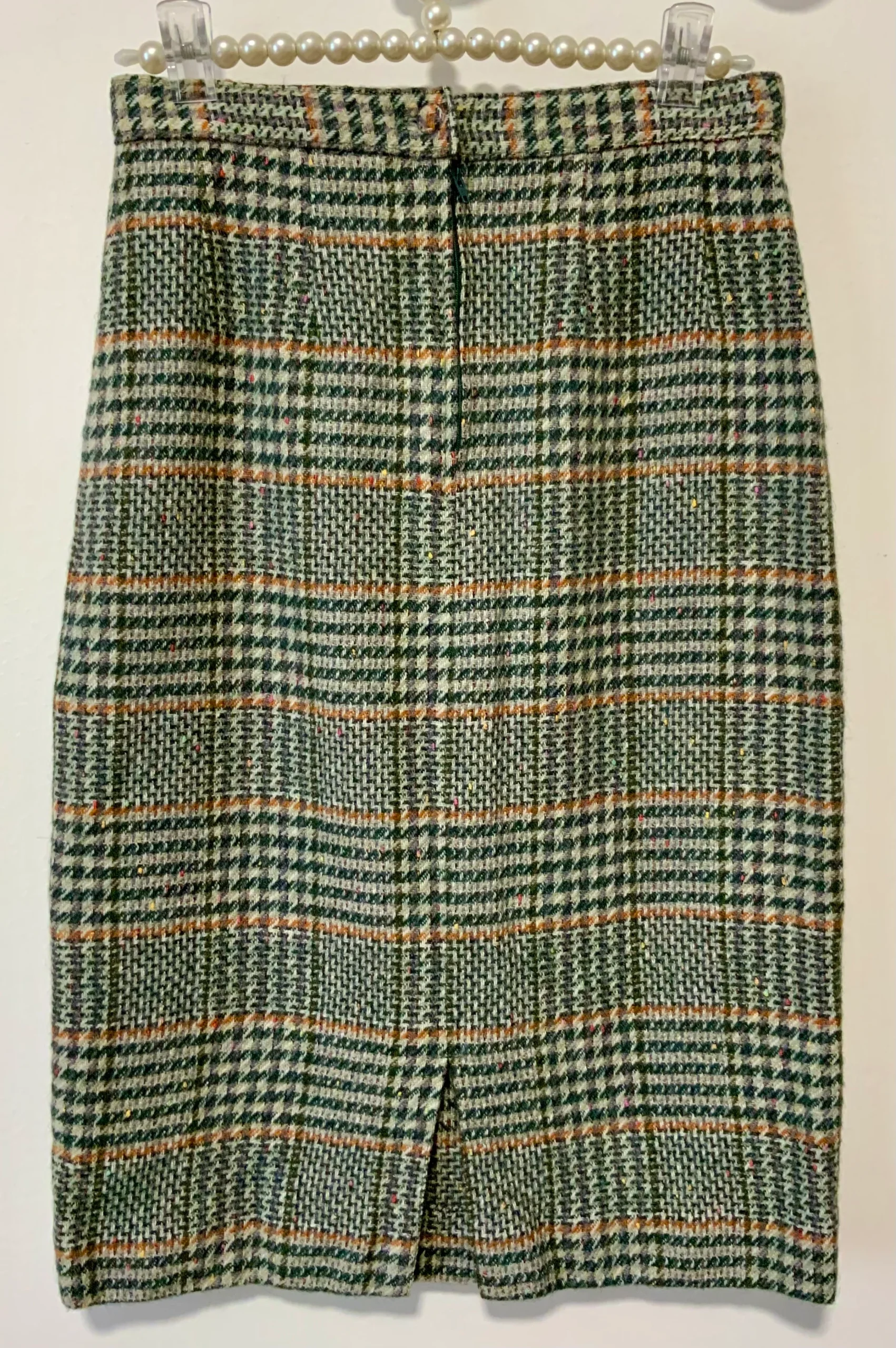 Jupe droite intemporelle à carreaux en Laine Authentique Vintage 1960/70-